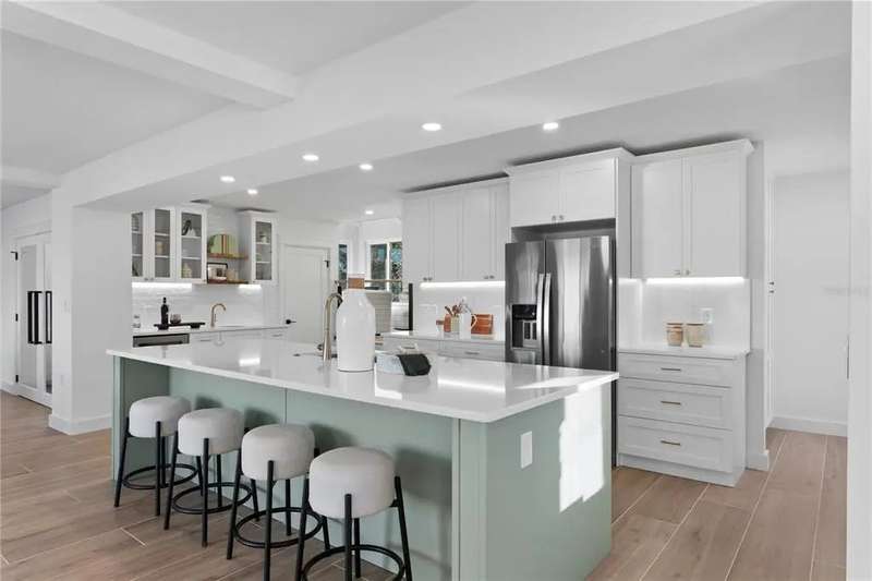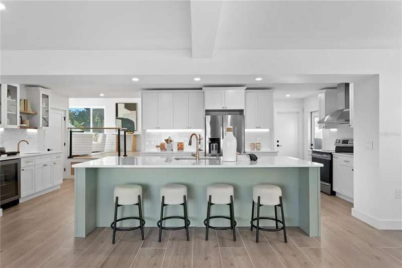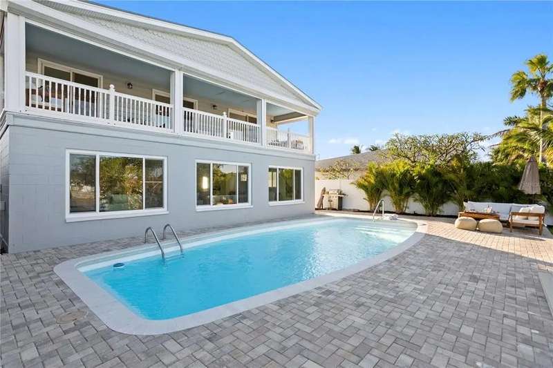 Location, Location, Elevation—Welcome to the Street of Dreams on Vina Del Mar Island! Situated on picturesque Hermosita Drive, which fittingly translates to “Little Beauty,” this stunning 2248 sq ft waterfront home truly lives up to its name. Lovingly owned by the same family for over 25 years, it has been thoughtfully and beautifully renovated to provide a move-in-ready retreat where you can immediately start living the coastal dream. Inside, you’ll find a fabulous new kitchen, updated bathrooms, and gorgeous flooring throughout. The open, functional floorplan flows seamlessly from one living space to the next, creating a perfect balance of style and comfort. Each of the three spacious bedrooms opens to a private covered waterfront deck—ideal for morning coffee, a good spot to read a book or to enjoy an evening glass of wine. Step outside to your tropical oasis featuring a resurfaced pool (with a 25-year warranty), surrounded by pavers that lead to a brand-new seawall, dock with new water and electric, and a new 9,000-lb boat lift—ready for your waterfront adventures. Vina Del Mar Island offers the perfect blend of community and convenience with its beautiful neighborhood park featuring tennis, pickleball, and basketball courts, a covered pavilion, playground, adult fitness area, and dog park. Just minutes away, explore Historic Pass-A-Grille where you’ll find charming shops, locally owned restaurants, the Yacht Club, and the award-winning beaches. With easy access to Downtown St. Petersburg’s trendy restaurants and world-class museums, and just a quick 35-minute drive to Tampa International Airport, this location truly has it all. Live the dream life—right here on Vina Del Mar Island.