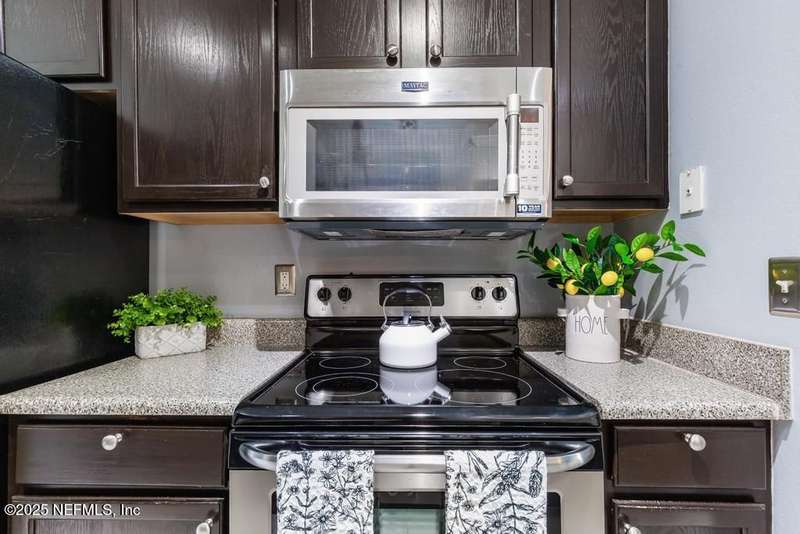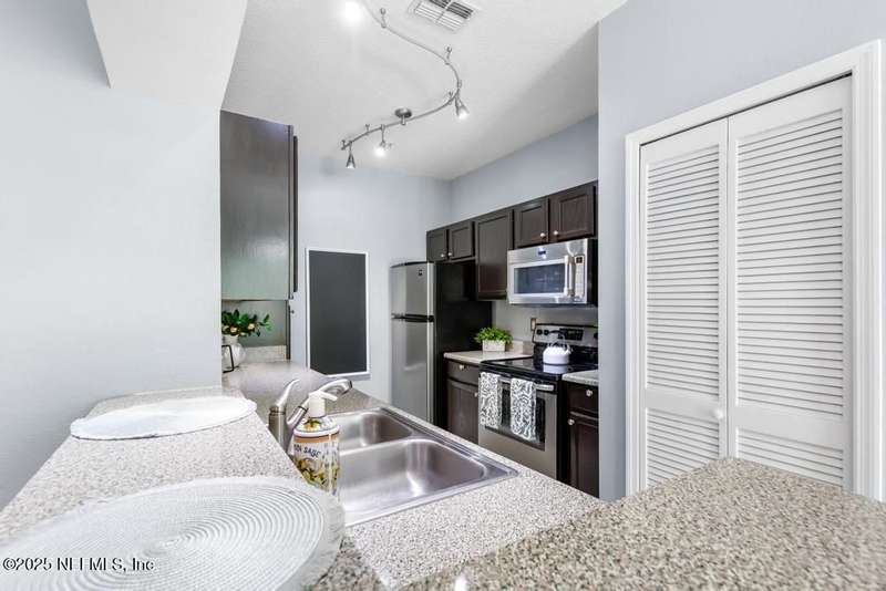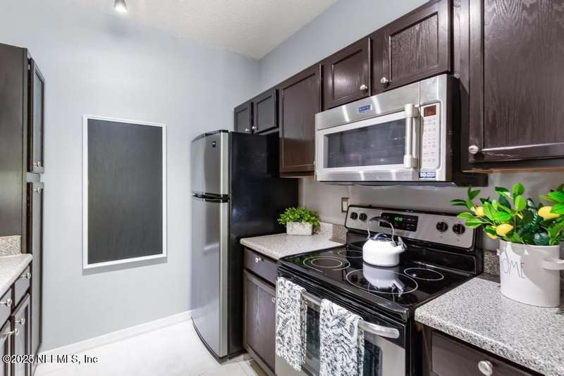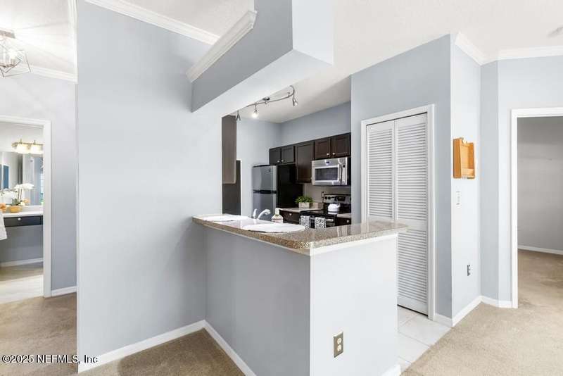 Live like you are on vacation in this delightful 2nd floor condo with tons of natural light. Convenient to both the Baymeadows and Town Center areas, you will love the open and airy floorplan. Two large bedrooms with walk-in closets. Ensuite primary bath and 2nd full bath. Galley kitchen with stainless appliances and lots of cabinets. Dining area, living room, inside laundry and private balcony complete the living space. Coat closet and linen closet in both bathrooms. Plenty of extra storage with a private storage closet just outside your front door. Stacked washer/dryer are included. All this and you're just steps away from the clubhouse, pool, cabana, bar and outdoor grill, fitness center, half basketball court, social room, business center and car wash area. Gated community with onsite management. Owner occupants only.