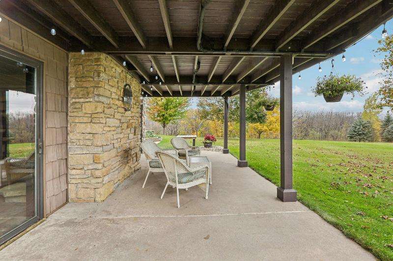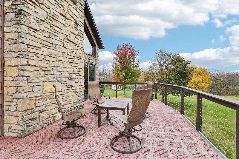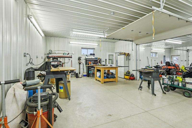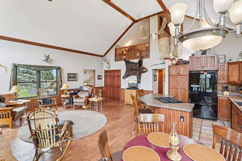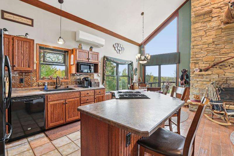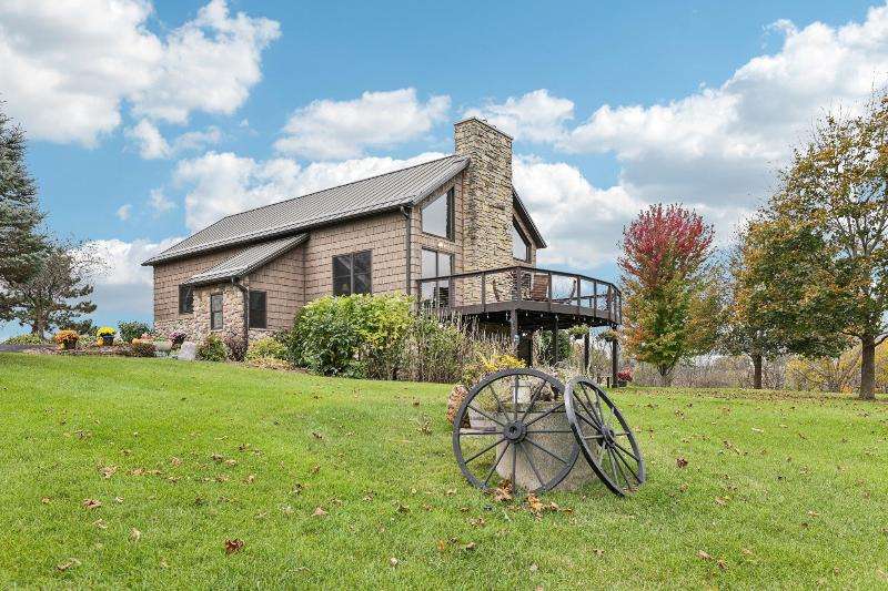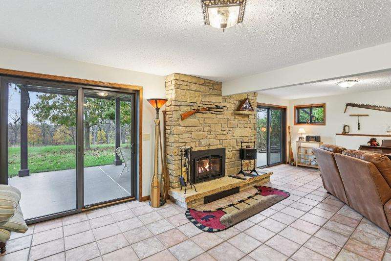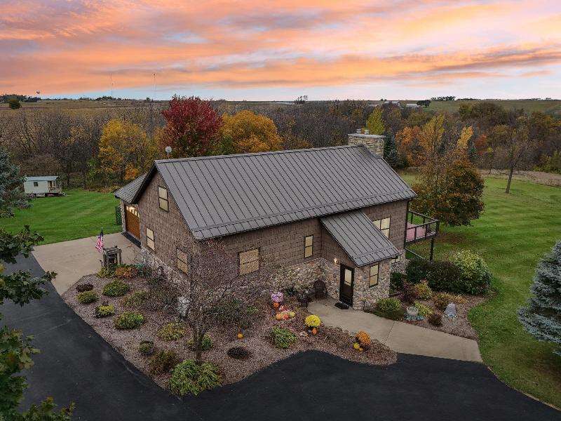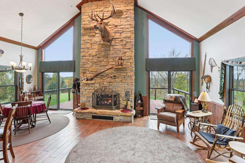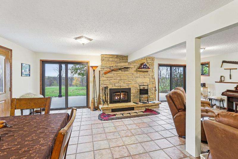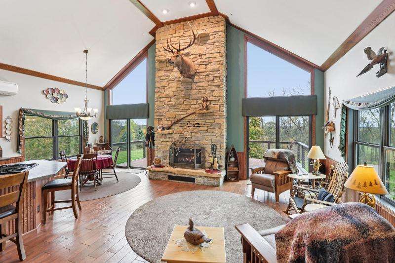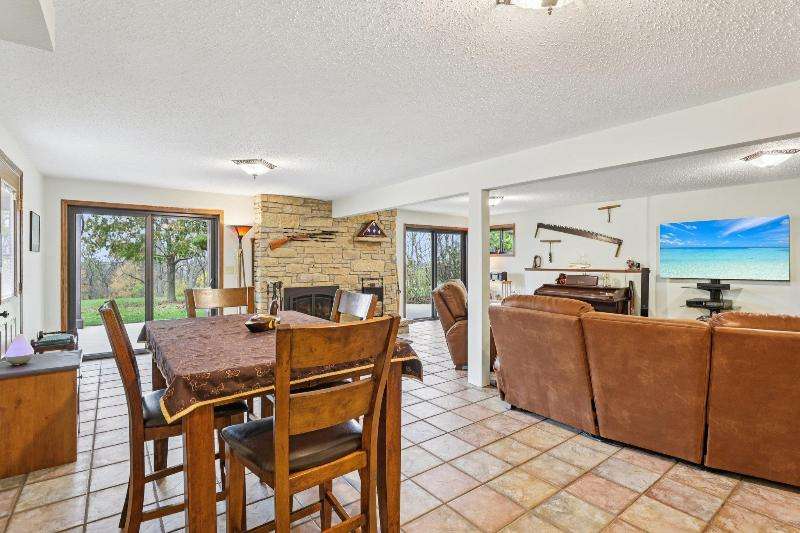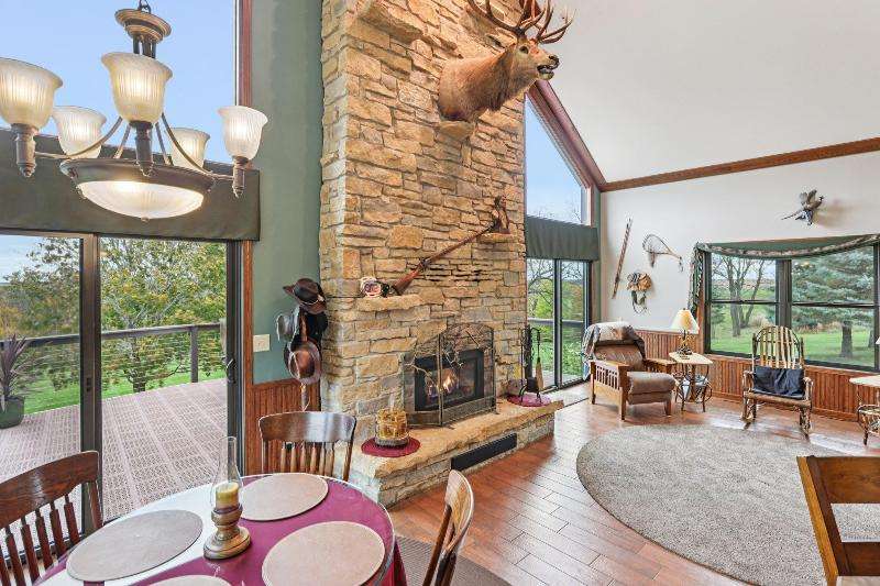 Experience peaceful country living in this stunning 3-bedroom, 2-bath home on 6.78 acres overlooking scenic Smoky Hollow. Half wooded with 800 yards of groomed trails perfect for UTVs, hiking, or skiing, this property is a nature lover's dream. Enjoy abundant wildlife and breathtaking views from the 13x24' deck with new cable railings. Features include Pella windows, vinyl shaker siding, steel roof, and stone veneer. The Great Room showcases a 16.5' stone fireplace with an 8' solid hearth--plus another fireplace in the lower-level family room. Radiant in-floor heat on all levels, a 20Kw whole-house generator, and heated 2.5-car garage add comfort. The 30x50' heated outbuilding with upper-level storage and deck offers endless possibilities. Just minutes from Highland and Black Hawk Lake!