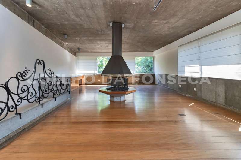 rua tranquila, projeto Croce Aflalo e Gasperini, três dormitórios sendo uma suíte com closet e dois dormitórios com banheiros individuais no corredor, sala de jantar, living com lareira, home theater, duas dependências de empregada, depósito, copa, cozinha planejada Elgin, espaço gourmet com churrasqueira, salão de jogos, piscina, jardim, quatro vagas cobertas com clausura, área íntima com portas e janelas blindadas, sistema de alarme monitorado com câmeras CFTV, ar condicionado