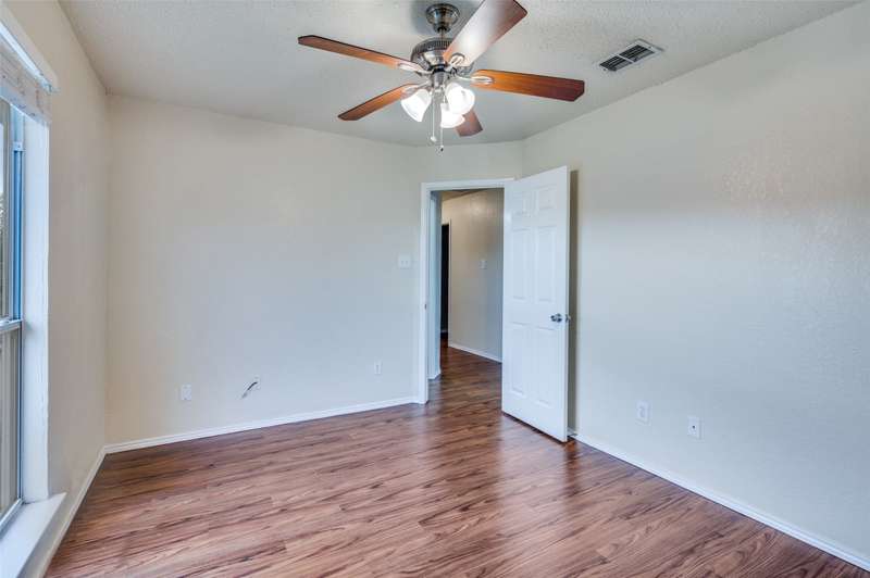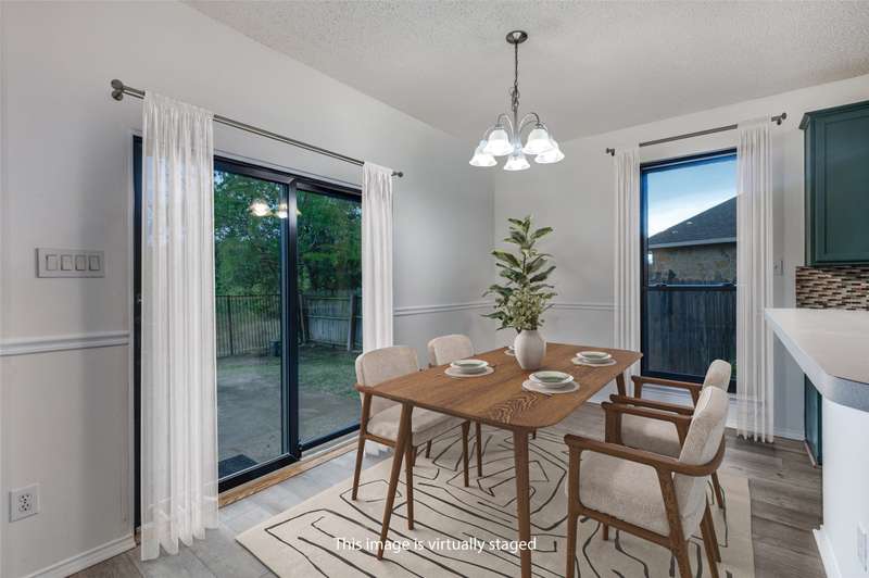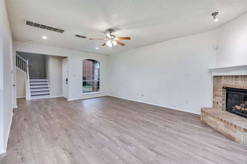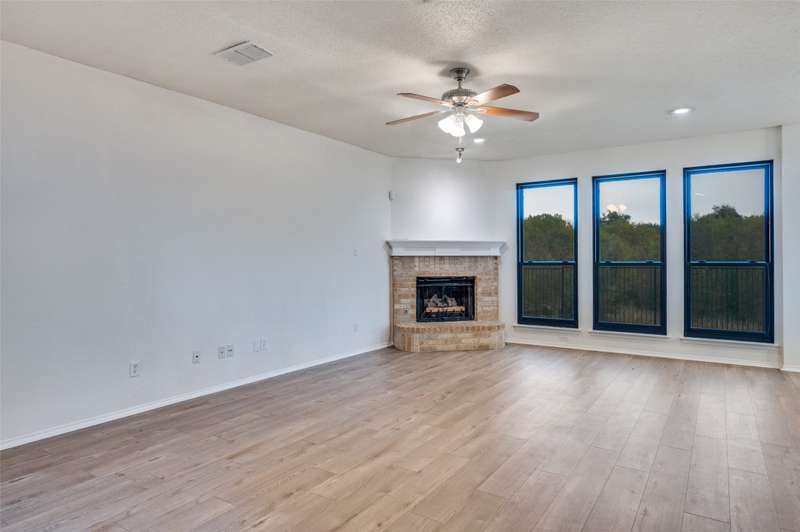 Charming Updated Home Backing to Peaceful Greenbelt!Welcome to this beautifully maintained 2-story home with 3 bedrooms and 2 and a half bathrooms, offering the perfect blend of comfort & style located in a quiet neighborhood and backing to a serene greenbelt. From the inviting curb appeal to the bright, open interior, this home is move-in ready and designed for easy living and entertaining. Step inside to a spacious open-concept living area filled with lots of natural light and enhanced by a cozy brick fireplaceperfect for relaxing evenings at home. The large windows and sliding glass doors provide gorgeous backyard and greenbelt views, creating a seamless indoor-outdoor connection. Wood-look flooring flows throughout the main living areas, adding warmth and modern appeal. The kitchen features striking painted cabinetry, stainless steel appliances, ample counter space, and a stylish mosaic tile backsplashan ideal layout for cooking and gathering. Enjoy meals in the adjacent dining area overlooking the peaceful backyard. Upstairs the spacious primary suite is a true retreat with vaulted ceilings, a feature accent wall, walk-in closet, and a private en-suite bath with dual sinks. Additional bedrooms offer versatility for family, guests, or a home officeincluding a unique flex space perfect for studying or creative use. Step outside to your large fenced backyard, where mature trees and a wrought-iron fence open to scenic greenbelt viewsan ideal space for pets, play, or entertaining. Add a patio set, fire pit, or garden to make it your own outdoor oasis. This home delivers the space, character, and location buyers are looking for. Dont miss your chance schedule your showing today!