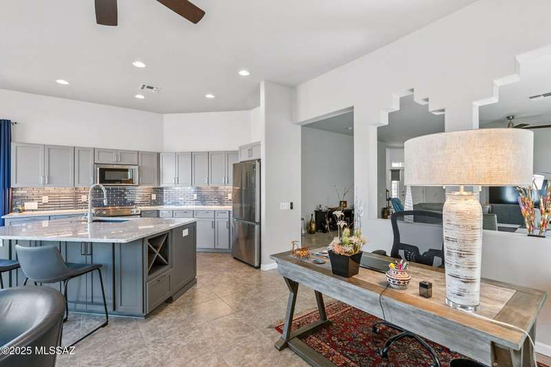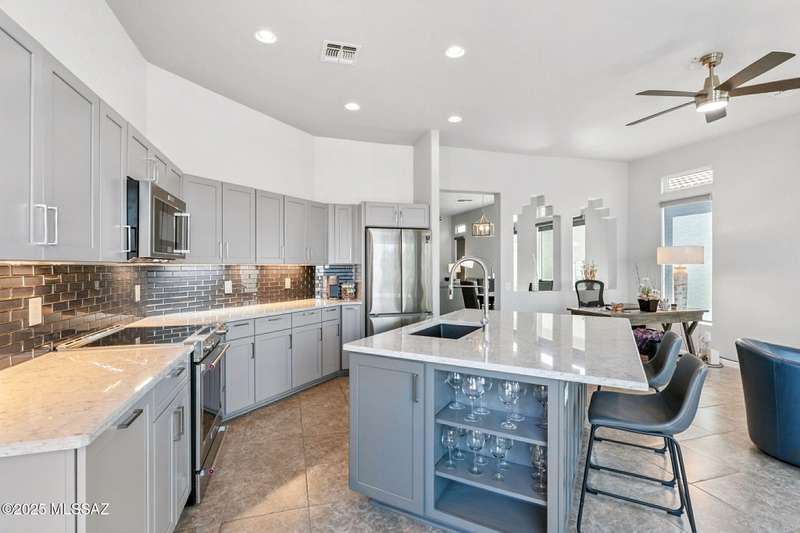 Welcome to this beautifully remodeled 2BD/2BA (1605 sq ft) townhome with located in highly desirable active adult community of Heritage Highlands at Dove Mountain. Step inside to find an interior offering both comfort and privacy. Enjoy separate living and dining areas along with a cozy family room perfect for entertaining or quiet conversation. Chef's kitchen is a showstopper, complete with quartz countertops, ss appliances, and stylish backsplash. Owner's suite is a true retreat with coffered ceilings, two walk-in closets and a spa like ensuite bath featuring dual vanities and large walk-in shower. Split floor plan ensures privacy for visitors. Step outside to a covered patio and backyard, ideal for enjoying the breathtaking Dove Mountain sunsets. Amenities include golf, dining,socia