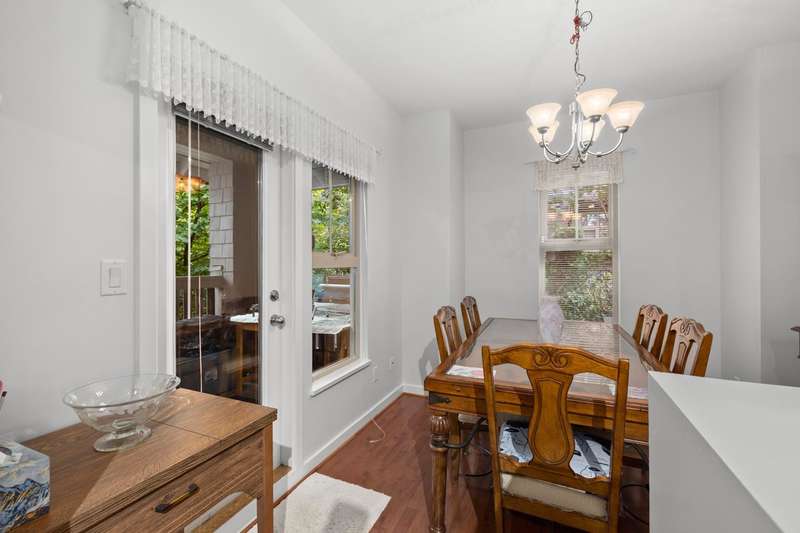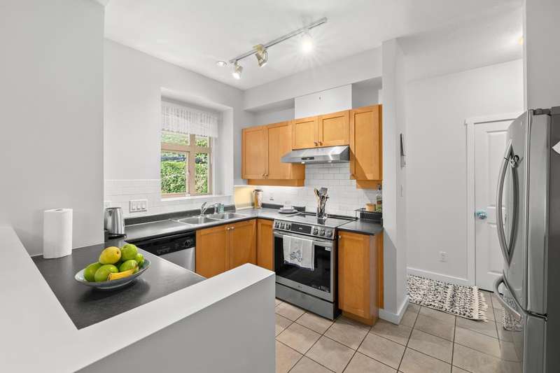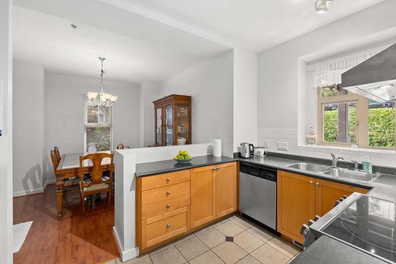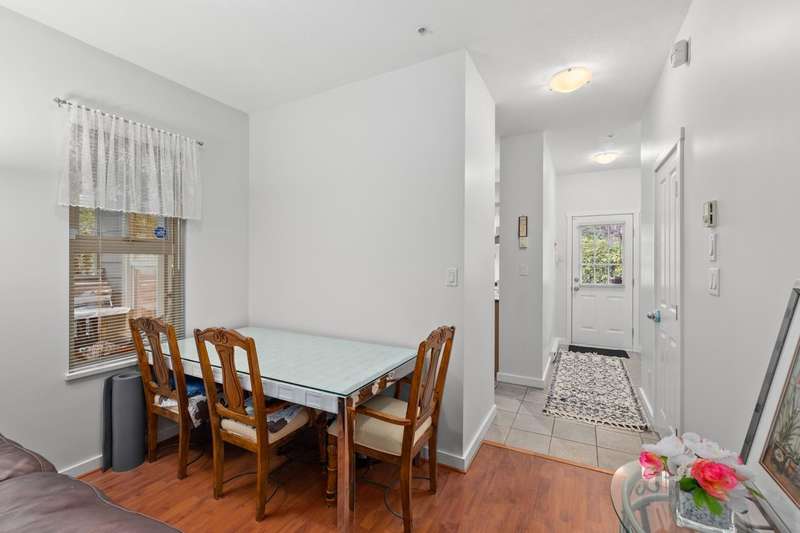 Welcome to this bright and updated corner townhome in one of New Westminster's most sought-after communities. Steps from Royal Square, Queens Park, and the Aquatic Centre. Situated on 2-levels this home offers a lifestyle of ease, access, and everyday comfort. The functional, thoughtfully designed layout features two bedrooms, full bath, and laundry above the main, with an updated kitchen and eating area thoughtfully separated from the open living and dining space, The end unit orientation brings in extra natural light and includes a covered balcony and yard space. Secure parking and storage included. Located in a desirable school catchment, in a walkable neighbourhood with daily conveniences and a well-run complex.