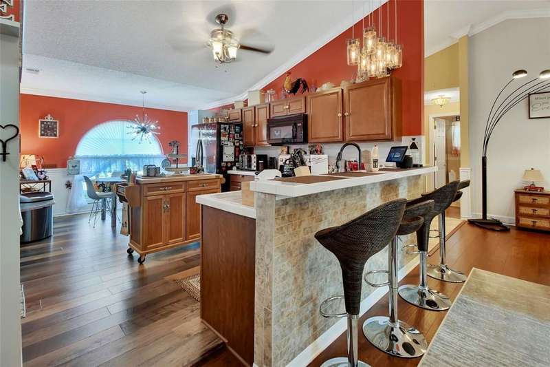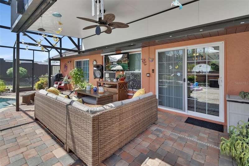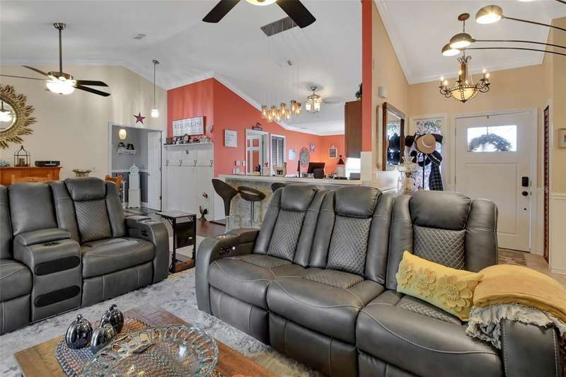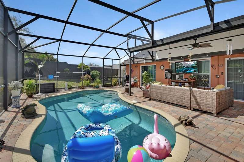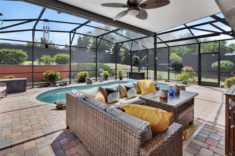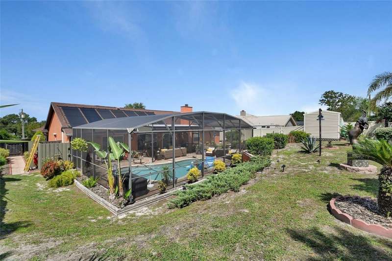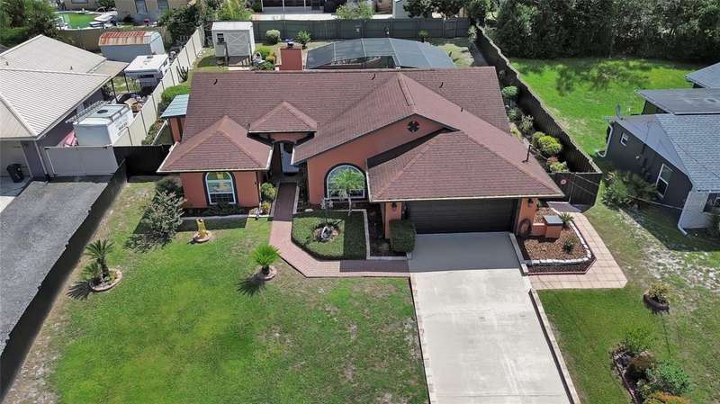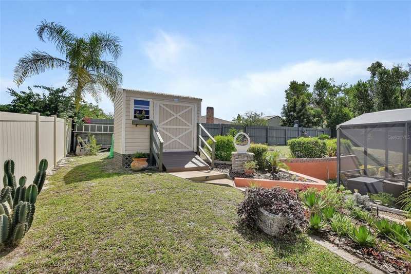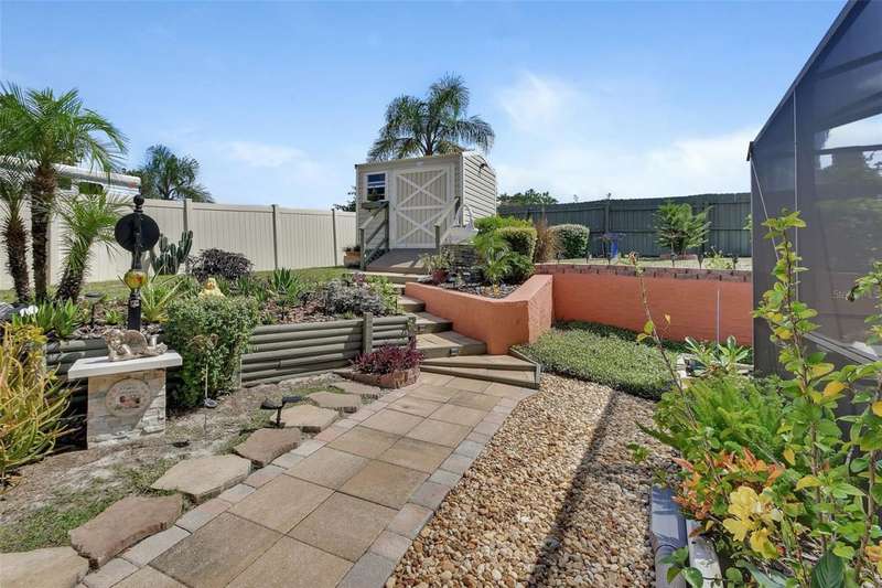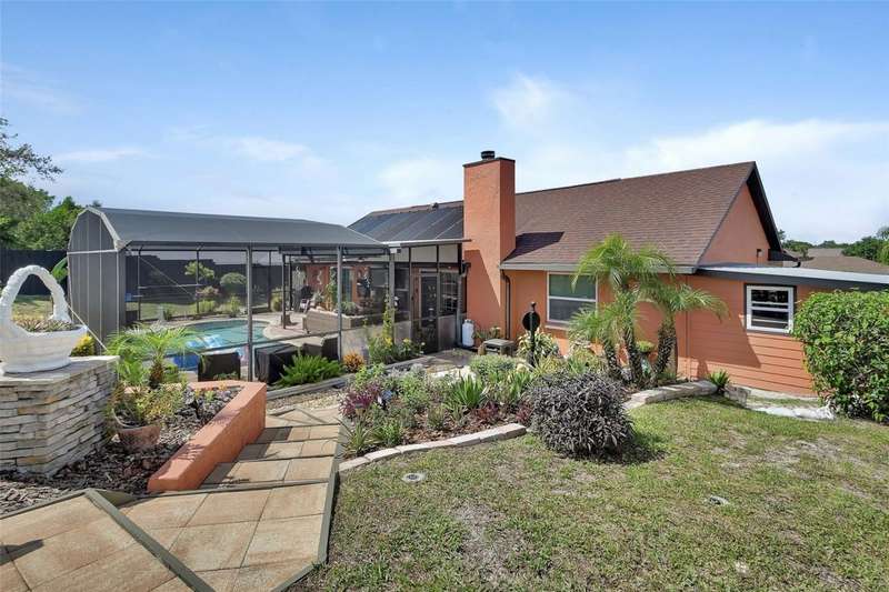 Under contract-accepting backup offers. Lovely immaculately kept 3-bedroom 2 bath home in Deltona Florida. Open floor plan includes living room fireplace, ceiling fans though-out, remodeled to include Crown moldings, Laminate flooring, new thermal pane windows, hurricane shutters, Lighting, nest thermostat, HVAC is 5 years new, Roof in 2020, New exterior paint and much more. There is a 2-car attached garage 21ft by20 feet, with sink and counter, built-in storage, New insulated garage door opener, and storage. Large screen room out back with new pavers, Pool has new screen enclosure, Pool is solar heated, new in 2020. Back yard has terraced gardens and is fully fenced in. There are 2 storage sheds with electric. The grounds are immaculately maintained with lovely plants and shrubs. Call today for your appointment to tour this property.