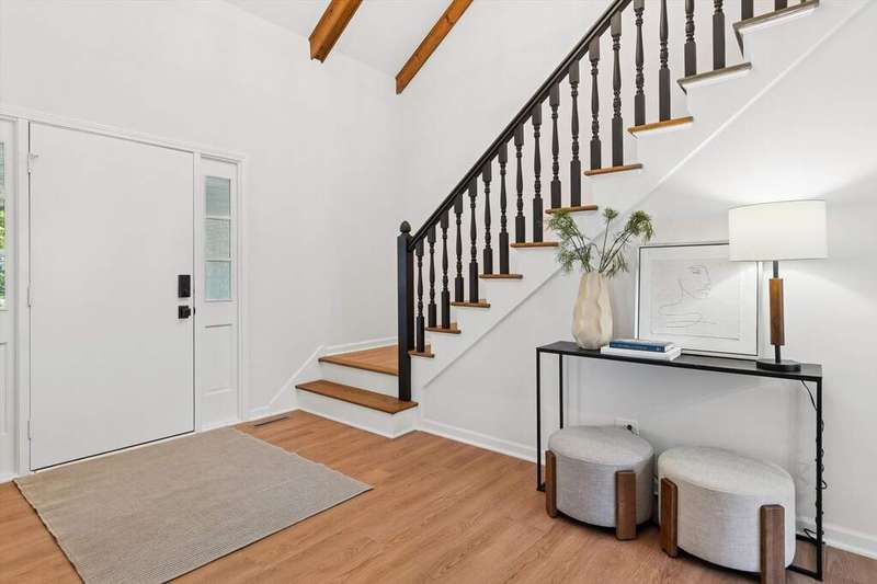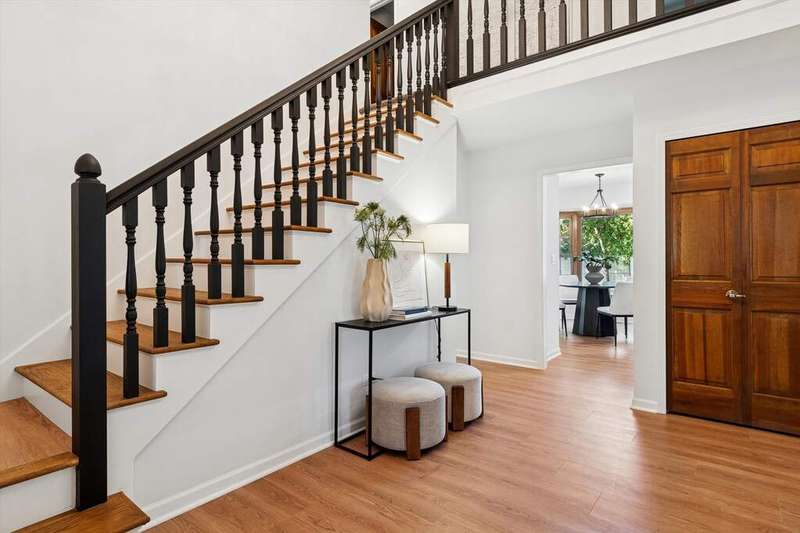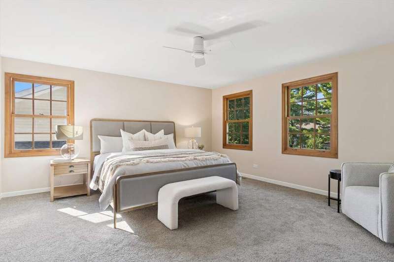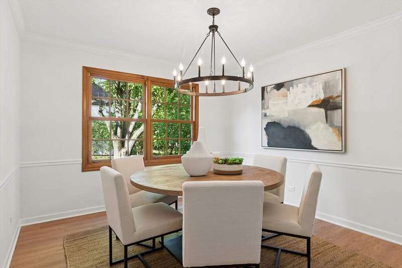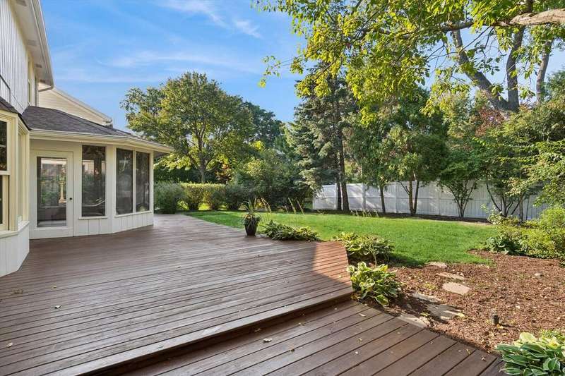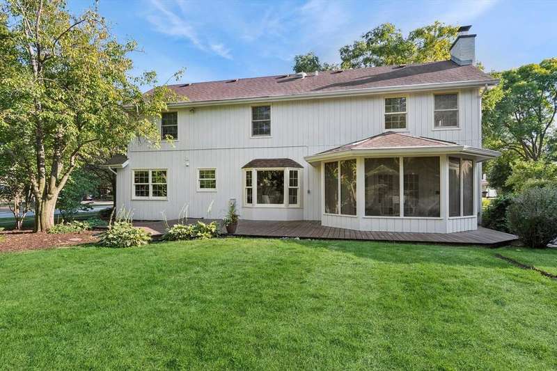 Welcome to 2400 Shasta Drive, nestled in the highly desirable Oakhill South subdivision of Lisle - directly adjacent to Benet Academy. This custom-built two-story home sits proudly on a corner lot and greets you with a charming covered porch that opens into a grand two-story foyer, highlighted by a decorative farmhouse chandelier. To the right, a spacious living room with stunning floor-to-ceiling solid wood framed Marvin windows (renowned for exceptional craftsmanship, durability and timeless design) flows seamlessly into the formal dining room, defined by elegant decorative arches. Wide-plank flooring carries you into the beautifully updated kitchen featuring quartz countertops, custom cabinetry, and an inviting eating area with a picture window overlooking the wood deck and backyard. The family room is a true centerpiece with a brick fireplace, built-in shelving, and decorative beamed ceiling, opening into a bright three-season room with views of the professionally landscaped backyard. A dream laundry room with decorative tile-mirroring the updated powder room-sits just off the garage entry. Upstairs, a hardwood staircase leads to four generously sized bedrooms, each with natural wood four-panel doors. The primary suite offers a newly updated with a walk-in shower, unique layout, and private walk-in closet. The second full bath features dual vanities, subway tile, and stylish decorative flooring. A striking catwalk overlooking the foyer adds architectural character and charm. The finished lower level expands the living space with a large recreation area, a fifth bedroom, office, or flex room with closet, plus abundant storage and thoughtfully finished details. Inc a cedar closet. Outdoors, the backyard is a private retreat with mature trees and professional landscaping. Walking distance to Benet Academy & university including all the amenities. Notable updates include a new water heater, updated furnace, central air conditioning, 200-amp electrical service, and less than 2 miles to the elementary/junior & Served by highly acclaimed Lisle District 202 schools, including Lisle High School-ranked among the top in DuPage County and designated 'Exemplary' by the Illinois State Board of Education.