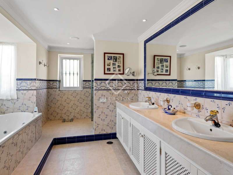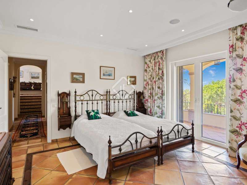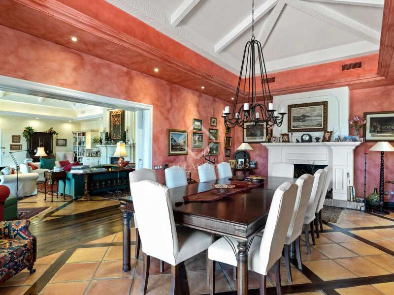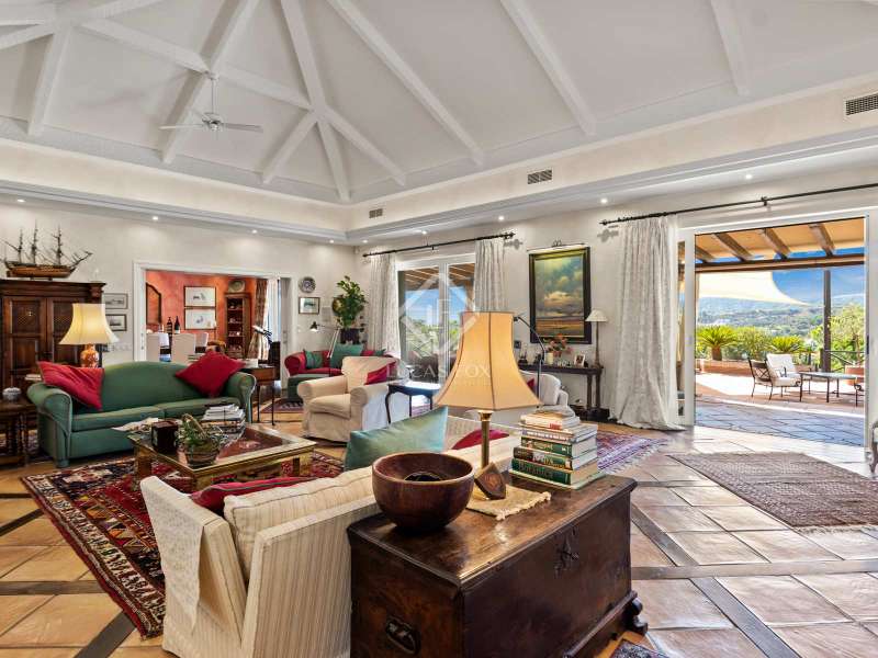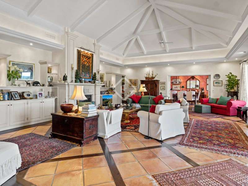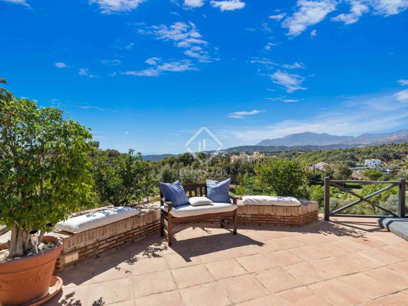 Welcome to this beautiful villa located in the prestigious Marbella Club Golf Resort. The villa offers a peaceful and idyllic lifestyle, surrounded by stunning views of the sea, mountains, and golf course. It is designed to provide privacy and tranquility while still being close to the resort's amenities. As you approach the villa, you will notice a lovely driveway leading to the entrance. Inside, you'll find an elegant and spacious hallway that sets the tone for the rest of the house. The main living area is impressive with high ceilings and a cosy fireplace, perfect for relaxation. There is also a formal dining room with its own fireplace, ideal for intimate gatherings. The fully equipped kitchen has modern appliances and a breakfast corner with beautiful views. Ample storage space and a convenient laundry area add to the functionality of the home. One of the highlights of the villa is the seamless connection between indoor and outdoor spaces. The living area provides access to both covered and open terraces, allowing you to enjoy the Mediterranean climate. The terraces are perfect for outdoor dining, sunbathing, or simply enjoying the surrounding views. The villa has three spacious guest bedrooms, each with its own en-suite bathroom, ensuring everyone has their own private space. There's also a guest toilet on the main floor for added convenience. On the first floor, you will find the luxurious main bedroom suite. It features an en-suite bathroom, a dressing area, and private terraces, offering ultimate comfort and privacy. The lower floor of the villa has a wine cellar, ideal for wine enthusiasts, as well as versatile space that can be used for entertainment or an extra bedroom if desired. The property also includes a spacious garage that can accommodate three cars. The real beauty of this villa lies in its mature gardens and private pool area. The lush green surroundings and vibrant flora create a serene environment. The private pool invites you to relax and enjoy the outdoors. In summary, this traditional villa combines elegance, comfort, and natural beauty. It's a perfect family home where lasting memories can be made. Its prime location in the Marbella Club Golf Resort provides easy access to the golf clubhouse, beach, and other amenities, offering a luxurious and fulfilling lifestyle.