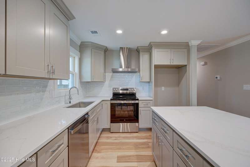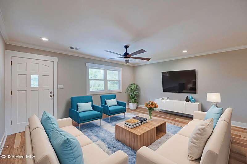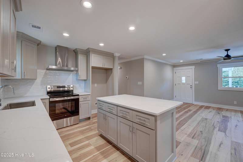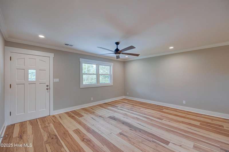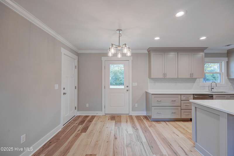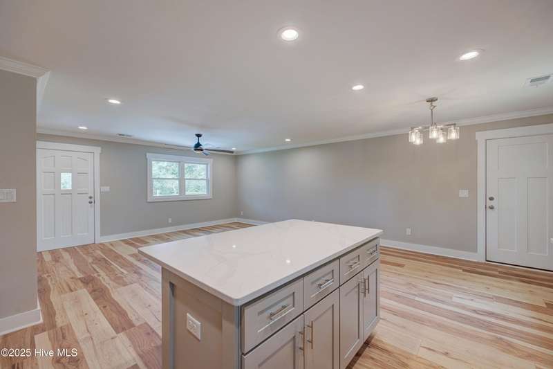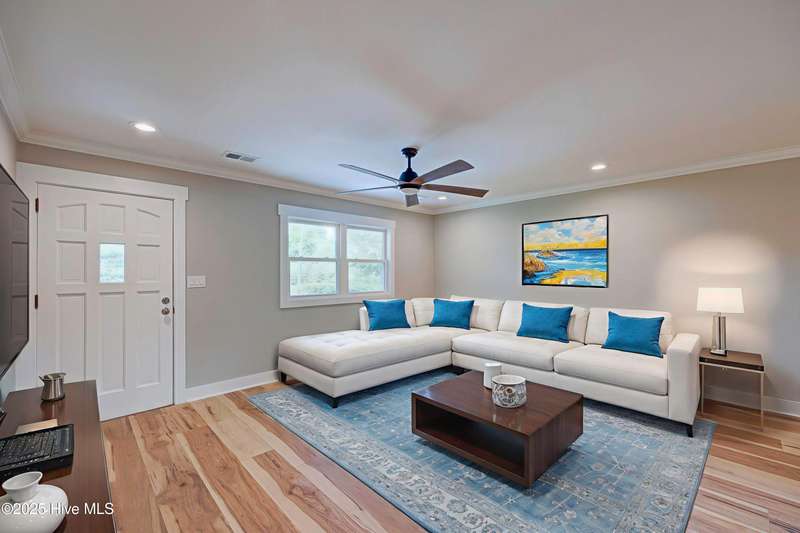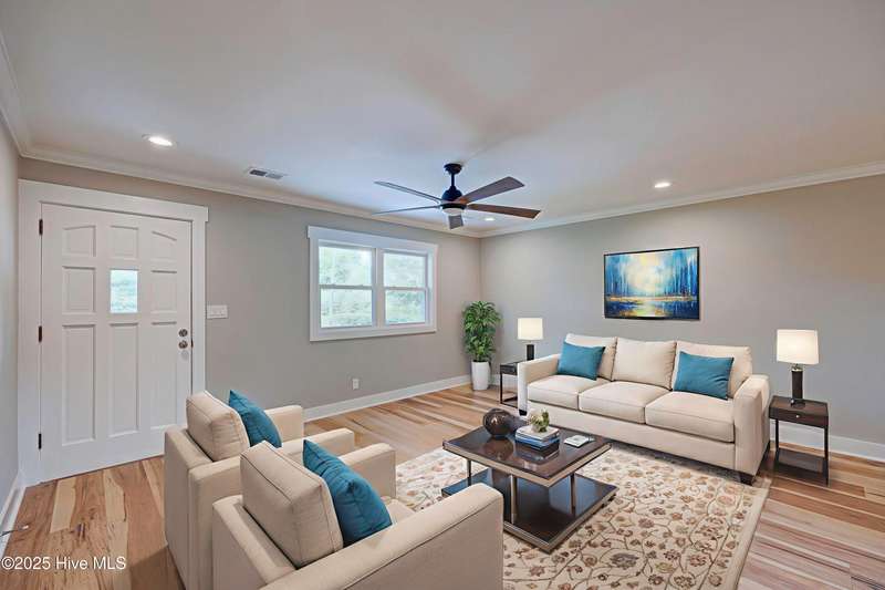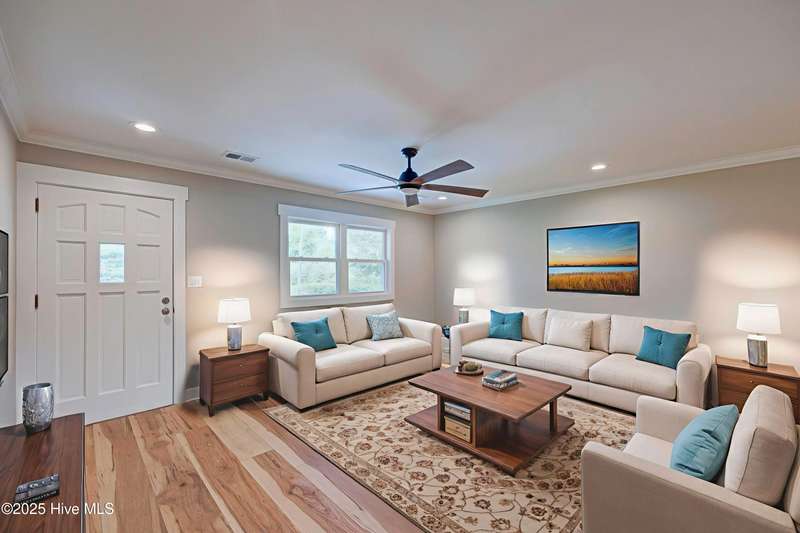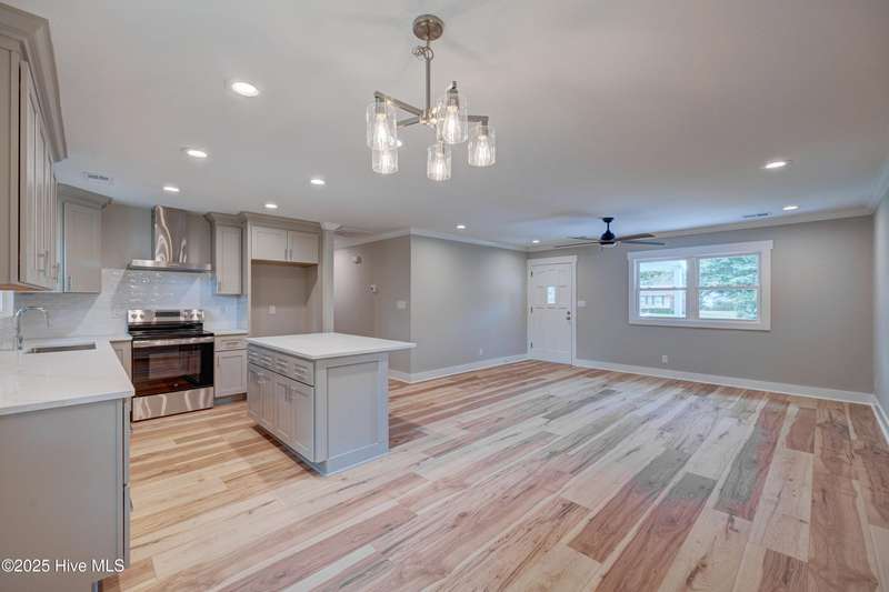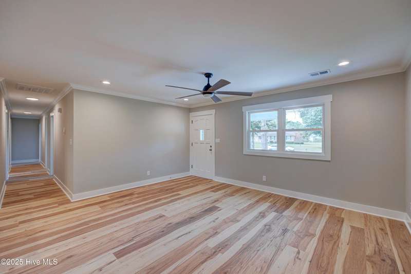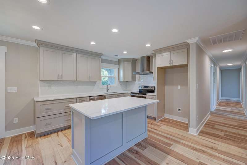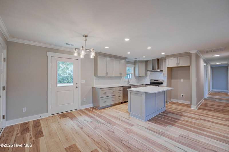 Situated on nearly half an acre, in sought after Green Meadows, this professionally renovated four-bedroom, 2 bath home is just minutes from Wrightsville Beach, Mayfaire Town Center, and all the shopping, dining, and entertainment the ''bubble'' has to offer! The kitchen features new cabinetry with soft close drawers and doors, new hardware, quartz countertops, new fixtures, plumbing, and appliances. The dining area is perfect for entertaining with room for additional seating at the island. The kitchen flows seamlessly into the spacious living room complete with crown molding for a refined and finished look. Both bathrooms were completely updated with new tile, cabinetry, fixtures and plumbing. New flooring runs throughout the entire home, which was also freshly painted a neutral color that will complement any design palate. A new Rheem HVAC system was installed, including new duct work which was moved from the crawl space to the attic. The crawl space has new insulation and a vaper barrier. The garage has epoxy flooring and a new opener. The outside of the home has also been updated. New exterior paint, sod, lush landscaping, mulch, along with a wood deck, perfect for grilling out. There is no HOA so you can park your boat at home! This home is truly move in ready!