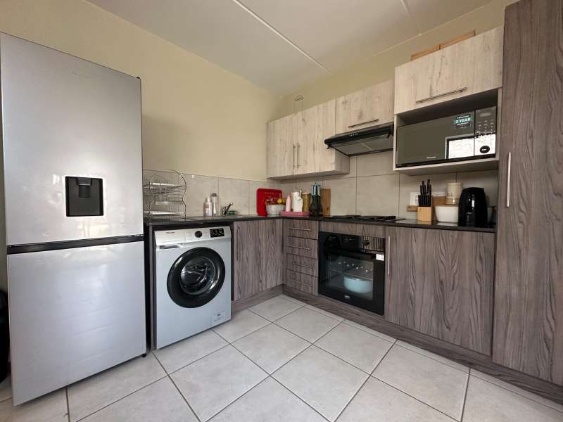 Welcome to this charming 2-bedroom house, designed to offer both comfort and convenience within a secure and family-friendly community. Here are the key features of this delightful property: Interior: • 2 Bedrooms with BIC: Both bedrooms are equipped with Built-In Cupboards (BIC), providing ample storage and a neat, organized space for your belongings. • Bathroom: A well-appointed bathroom with modern fixtures, catering to the needs of the entire household. • Kitchen with BIC: The kitchen is designed with Built-In Cupboards (BIC), offering plenty of storage and a functional layout for cooking and meal preparation. • Lounge: A cozy lounge area, perfect for relaxing and spending quality time with family and friends. • Dining Room: The dining room provides a comfortable space for meals and gatherings, making it ideal for family dinners and entertaining guests. Exterior: • Carport: The property includes a carport, offering covered parking for your vehicle, and keeping it protected from the elements. Community Features: • Security Control Area: The house is located in a secure area with controlled access, ensuring a safe and peaceful living environment. • Community Swimming Pool: Enjoy access to a community swimming pool, perfect for cooling off and enjoying leisurely swims. • Community Kids Area: A dedicated play area for children ensures a safe and fun environment for them to play and make new friends. This 2-bedroom house offers a comfortable and secure living space, with modern amenities and access to excellent community features. With its well-equipped kitchen, cozy living areas, and secure location, it’s an ideal home for those seeking a balance of convenience and relaxation. Welcome to your new home!