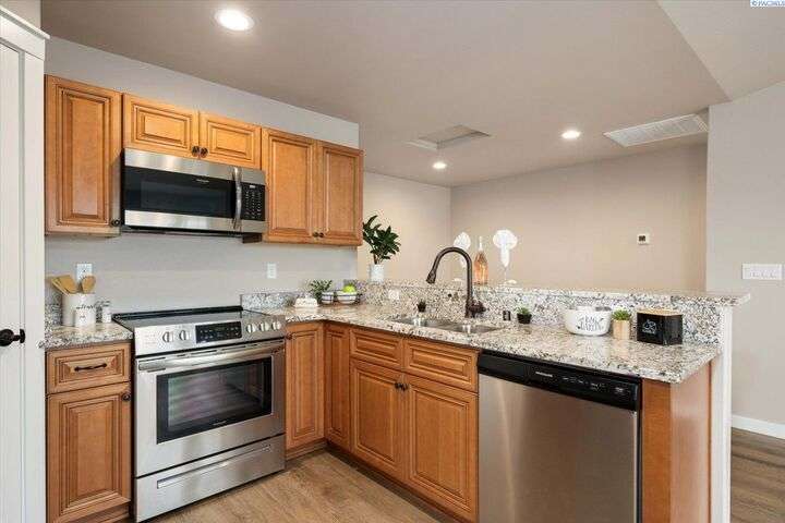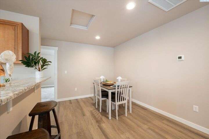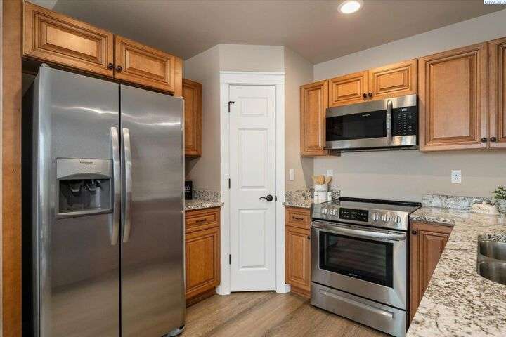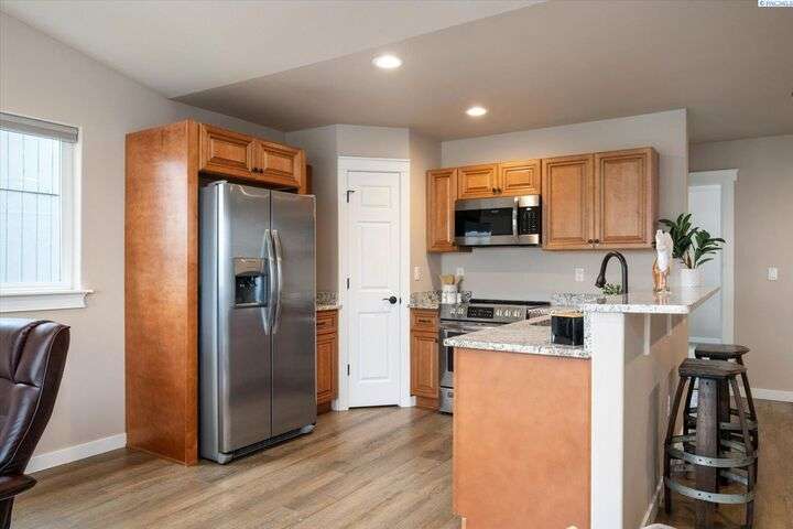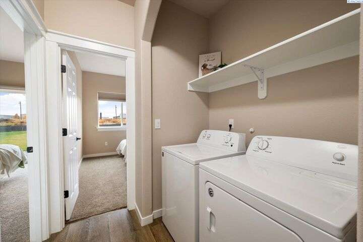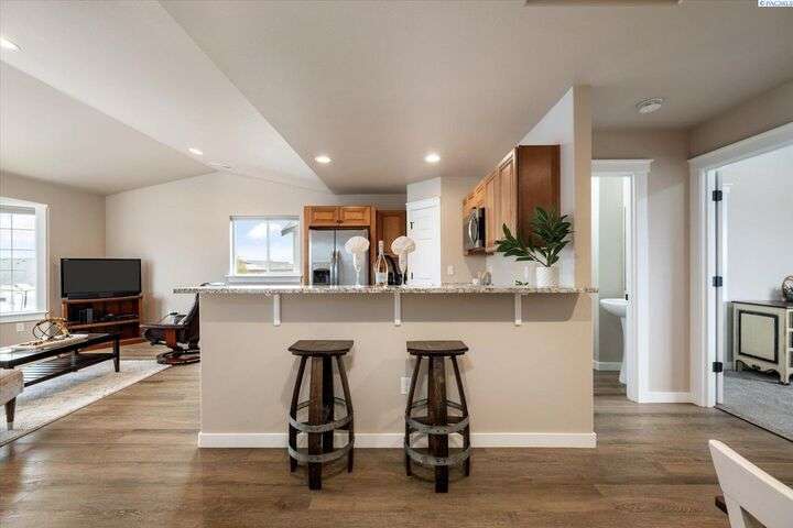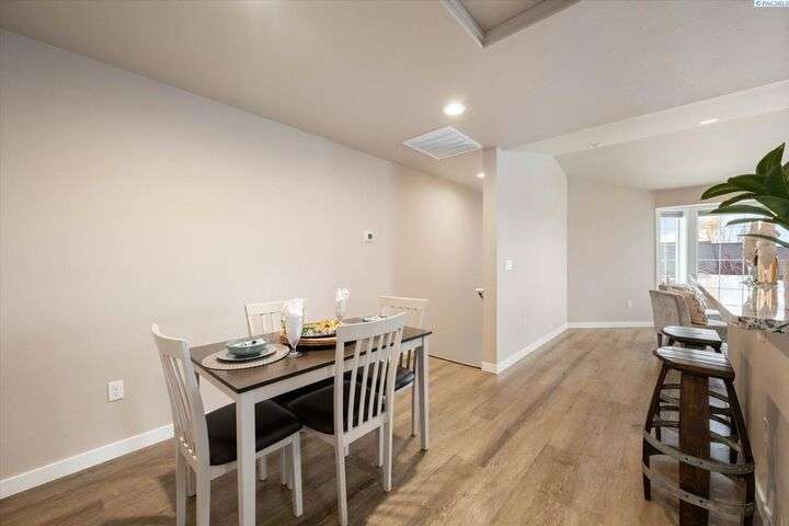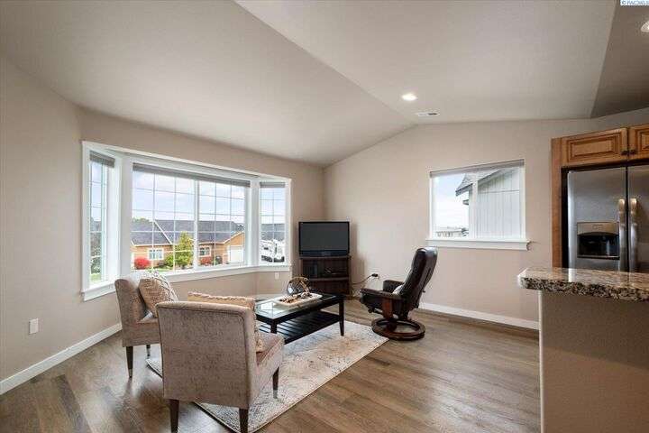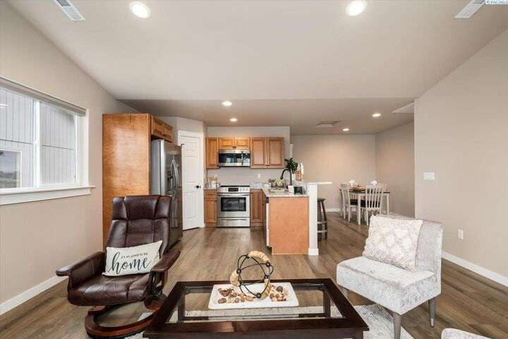 MLS# 288683 Step inside this immaculate two-story townhouse where modern design meets everyday comfort. From the moment you walk through the door, you’ll notice the fresh, move-in ready feel and thoughtful layout designed for today’s lifestyle. As a BONUS for qualified buyers, an assumable loan at an exceptionally low interest rate is available—a rare opportunity to own this stunning townhome with a below-market rate. The main level features durable LVP flooring that continues upstairs, creating a cohesive, low maintenance flow throughout the home. Two cozy carpeted bedrooms and a convenient utility area are located on the main floor. Upstairs, the open-concept living space with beautiful views from the living room, and connects seamlessly to the kitchen and dining area, ideal for entertaining or relaxing. You will love the quartz countertops throughout the home, offering modern style and lasting quality in every room. The upper level also includes two bathrooms and a peaceful primary suite designed for privacy and comfort. Outside, this property offers a low-maintenance lifestyle with an immaculate one-car garage and easy access to nearby schools, parks, and everyday conveniences. Built in 2020, this home blends modern construction quality, efficiency, and style, making it an ideal choice for first-time buyers, downsizers, or investors looking for a turnkey Pasco home. If you’ve been searching for a clean, contemporary townhouse in a great location, this is the one to see. Schedule your private showing today!