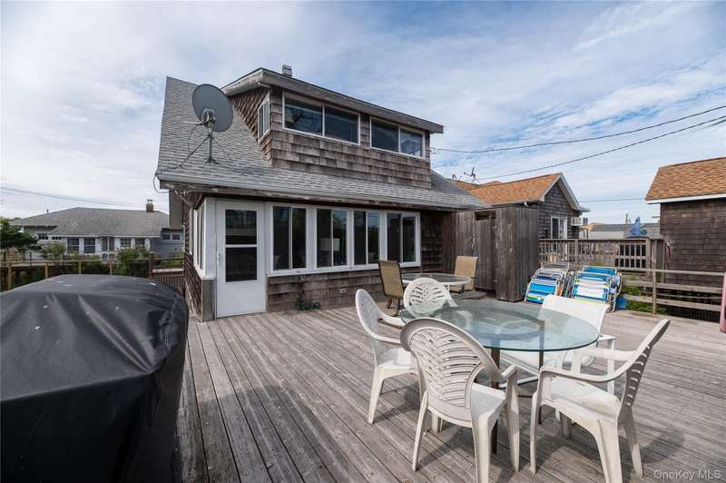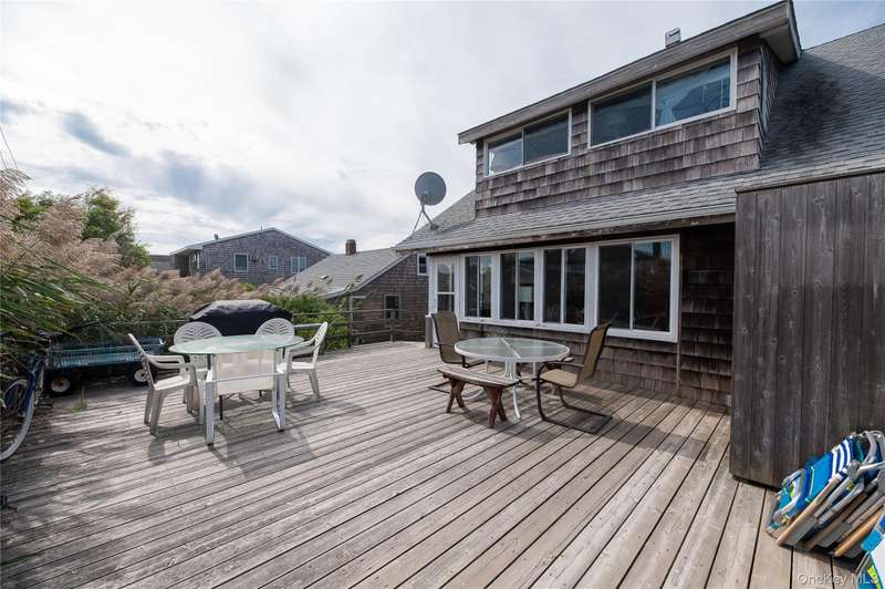 A classic Fire Island gem! This original beauty offers four spacious bedrooms and one and a half baths, with generously sized rooms throughout. Step inside to a bright and airy living room featuring a cozy fireplace and a wall of windows with built-in seating, seamlessly flowing to the welcoming front porch—perfect for relaxed coastal living. The kitchen offers island seating and connects to a large dining room, ideal for entertaining, which opens to a charming enclosed back porch and out to the deck with an outdoor shower. Perfectly situated close to town, you’ll enjoy easy access to shops, dining, and the beach—an ideal blend of timeless charm and convenience. The house has been raised to FEMA regulations.
