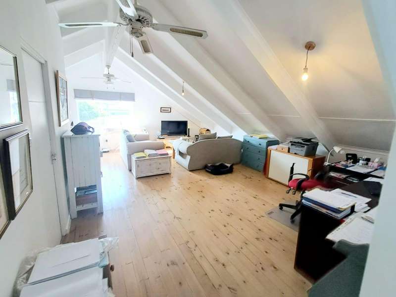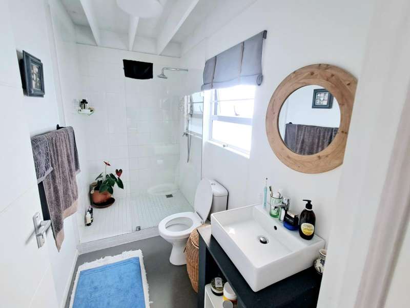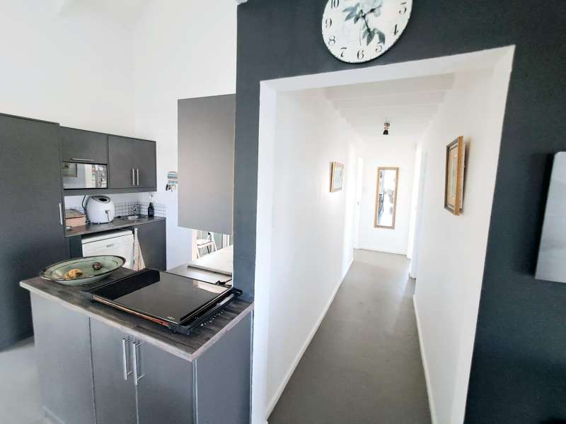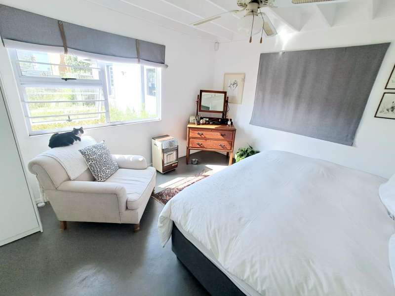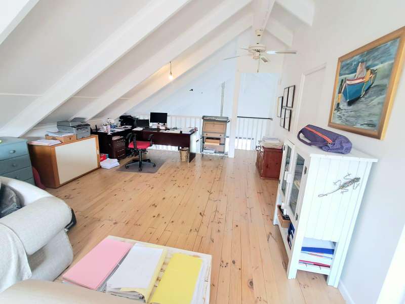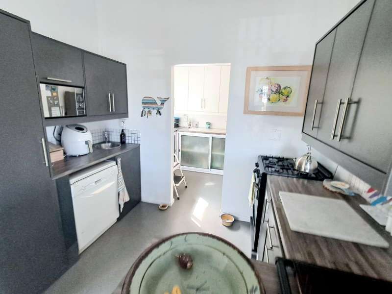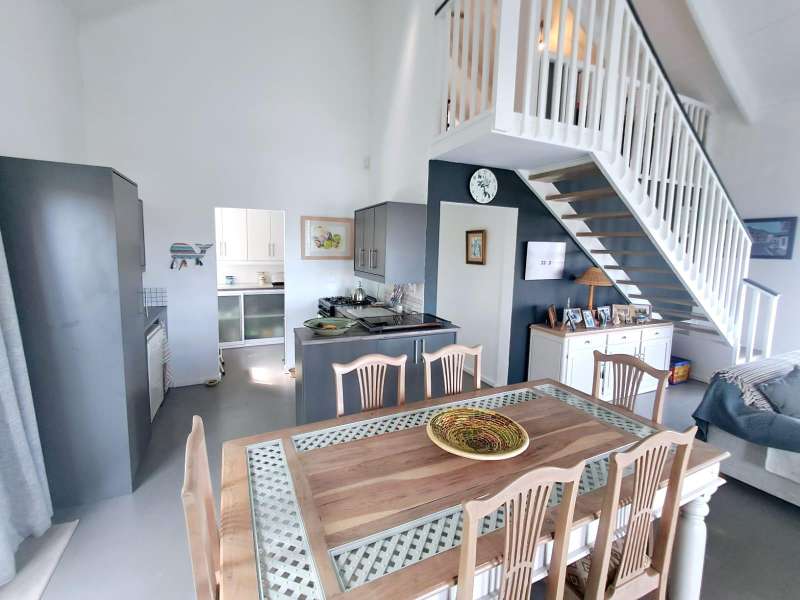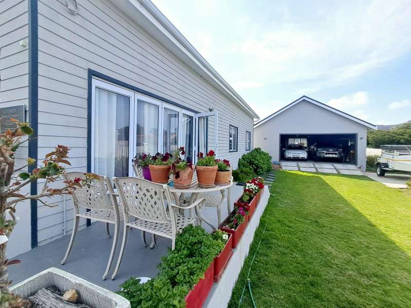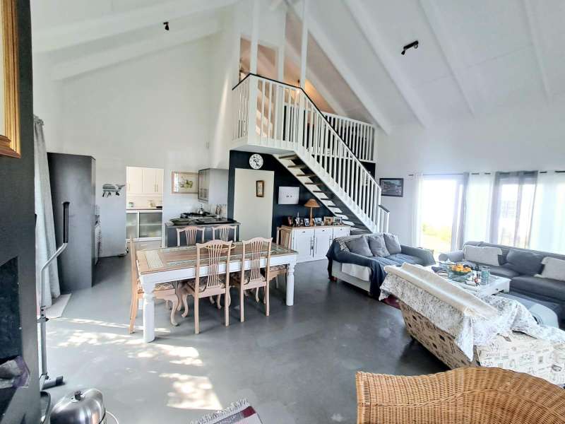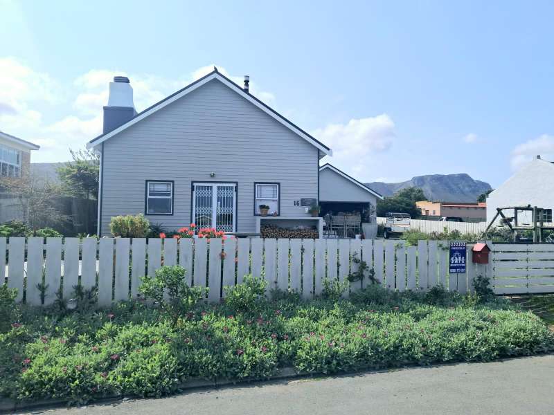 DUAL MANDATE. A very neat and well presented Nutec dwelling located less than 700 metres from Franskraal beach with mountain views looking north. The ground floor comprises a double volume open plan living area with built in braai and wood burning stove. Kitchen with adjoining scullery. Two bedrooms. The north facing main bedroom has an en suite shower & toilet. Separate full bathroom. To the first floor is a spacious open loft area with store room. The loft area is currently used as a study / sitting room and third bedroom. The free standing double garage (42sqm) with automated door includes a shower & toilet. The property is fully fenced with a motorised access gate and an attractive indigenous garden to all sides with an outdoor shower at the rear. The property further benefits from a gas geyser, alarm, beams, Trellidoors and motion sensor security lights. Viewing recommended.