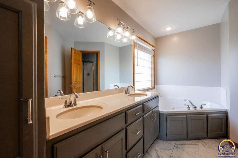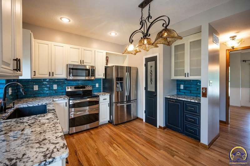 Great street appeal on this Washburn Rural 4 bedroom home with finished basement, main floor laundry, formal living plus main floor family room with fireplace, formal dining and eat-in kitchen with granite counters and pantry! Amazing huge back yard (.46 acres), Zoned heating and cooling (great for upstairs bedrooms!)nice shed, playset and new carpet on the main floor and Move In ready! Stainless refrigerator, stove, patio set and front porch swing stay. Be sure to tour this home today!!!