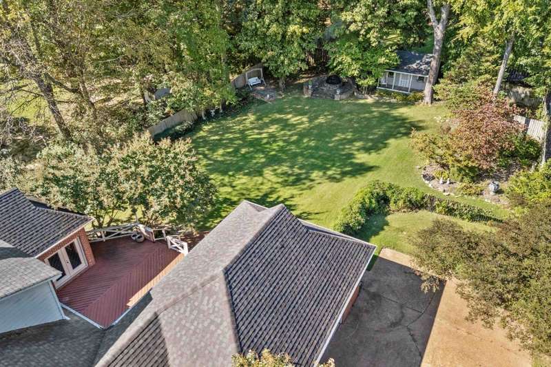Yes, this is what everyone wants--2 bedrooms & 2 full baths down, plus an office/sunroom. All floors are hardwood except for tile in bathrooms and kitchen/gathering area. The Kitchen is incredibly spacious featuring triple breakfast bar, black appliance package all highlighted with abundance of classic cherry cabinets, desk, granite countertops and floor & counter space for several cooks at a time! Great room overlooks the open gathering room and features fireplace flanked by built-in shelving and wall of windows looking to super size deck and large backyard. Upstairs has either 3 bedrooms or 2 BR with lg. game room and closets in all rooms + all hardwood flooring up. This is one of those hard to find "forever" homes! 1/2 ac lot features stone walk ways, exceptionally special stone fire pit with sitting area surrounding it. There is a storage building, side entry garage and circular driveway. Semi-private subdivision with sidewalks and neighbors who are extra special. Call to see