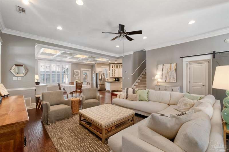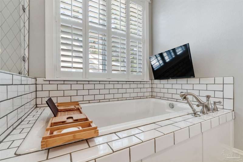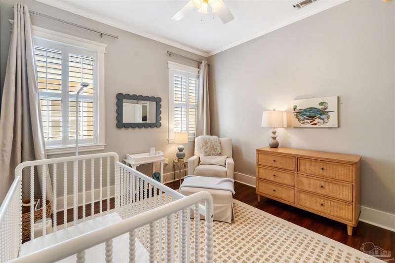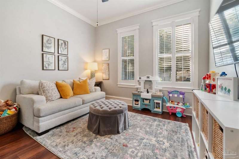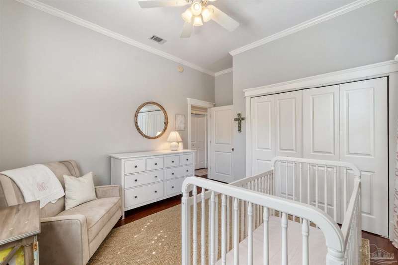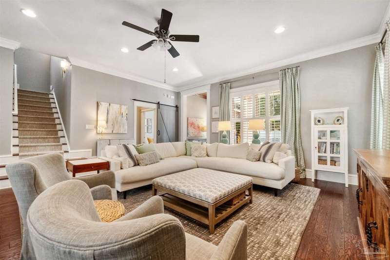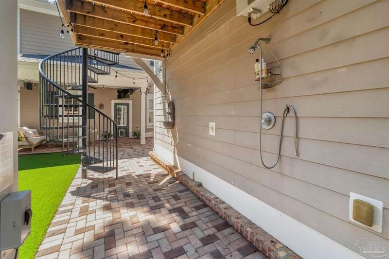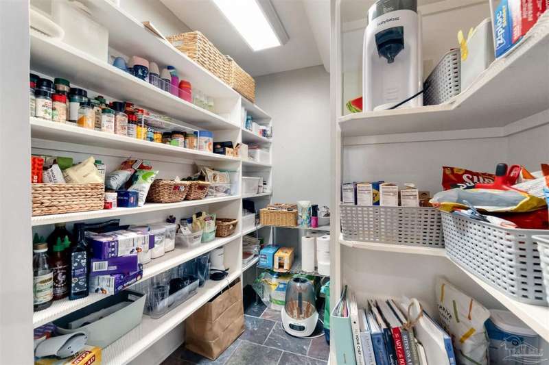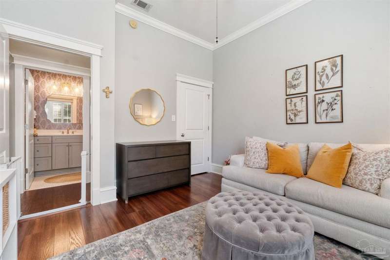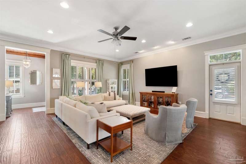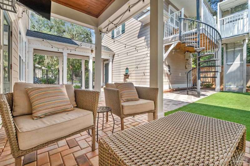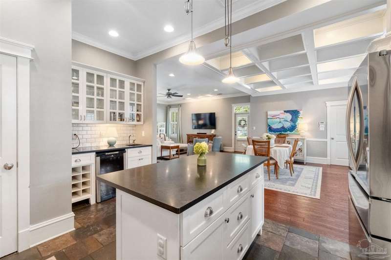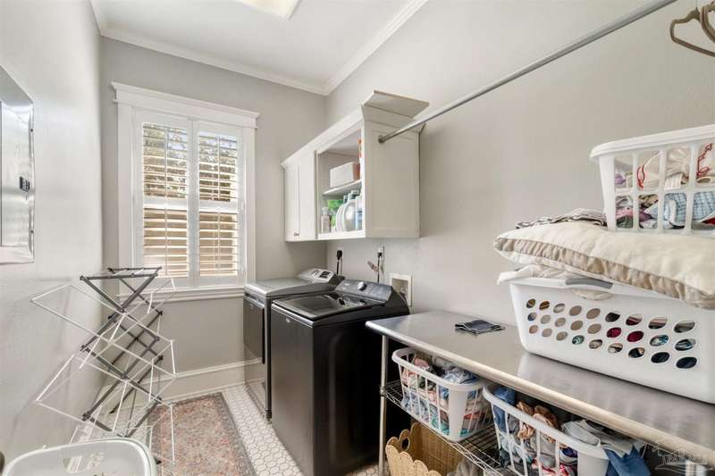 Enjoy the elegance, and convenience of East Pensacola Heights living in this exceptionally appointed 4-bedroom, 3-bathroom home with a detached 1-bedroom, 1-bathroom apartment. From the moment you arrive, the two-story facade framed by lush landscaping and gas lanterns sets the stage for the sophistication inside. The main home offers soaring ceilings with crown molding and recessed lighting, engineered hardwood floors, LVP and plantation shutters throughout. The gourmet kitchen features honed black granite countertops, a 36' professional gas stove with cast iron griddle, custom hood, and brand-new LG Smart refrigerator and dishwasher (2024). A walk-in pantry with wood shelving, wet bar with wine refrigerator, and custom cabinetry provide exceptional storage and functionality. The open living area is ideal for entertaining, with a full guest suite and bath on the main level, along with a mudroom, custom desk/office space, and built-in lockers. Upstairs, the spacious master suite offers a spa-like bathroom with an oversized cast iron soaking tub, tiled walk-in shower, and a custom-built closet. Two additional bedrooms, a full bathroom, an upstairs laundry room and multiple linen closets complete the second floor. Outdoor living includes expansive wraparound porches upstairs and down with beautiful tongue and groove ceilings-plus a brick-paver courtyard, irrigation system on a separate meter, outdoor hot water shower, and private entertaining spaces. The detached apartment above the garage has been fully updated with a new deck, exterior elevator, plantation shutters, on-demand water heater, and lighting, making it perfect for guests or as a short-/long-term rental. Additional upgrades include a new roof (2020), tankless Rinnai hot water heater (2024), Cat 5 wiring, hurricane fabric/vinyl shields for all windows and doors. Buyer to verify all measurements and information.