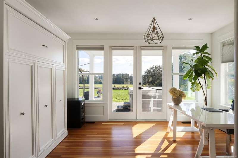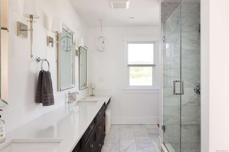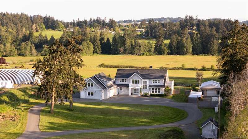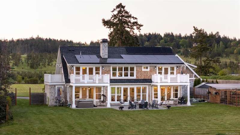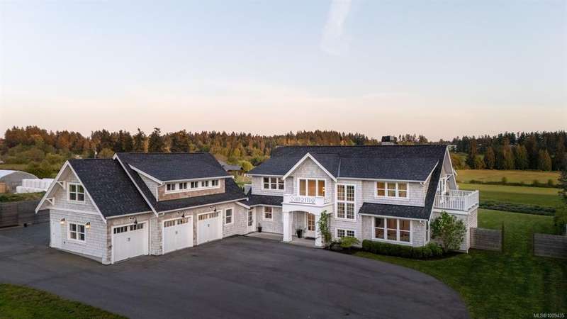 Discover effortless elegance in this cedar shingle, Hamptons-style home. Newly built by award-winning, VillamarConstruction, this 5-Bed, 6-Bath, 4796-sqft. home blends timeless architecture with modern sophistication. The property, set on a pristine 62 acres, welcomes symmetrical design, gracious proportions, and clean lines while offering a seamless indoor/outdoor flow, light-filled interiors, and luxurious natural finishes throughout. An open floorplan, soaring ceilings, and wall-to-wall windows invite views into every room. A thoughtful layout offers two primary suites –one on the main floor and another on the second story. Keeping its connection to the outdoors, the home offers over 1500 sqft. of patio space and private verandas, enjoying exposures from sunrise to sunset. The picturesque property also includes an upper-level, 1-Bed, 1-Bath carriage house and additional workshop. Located in the heart of Central Saanich, close to schools, parks, beaches, and trails.
