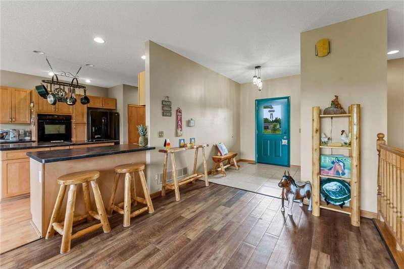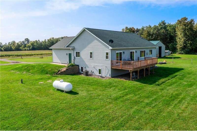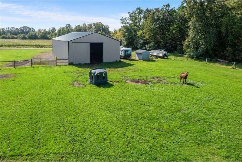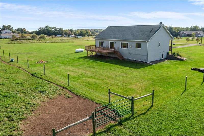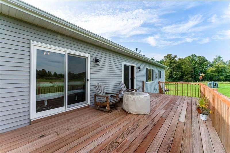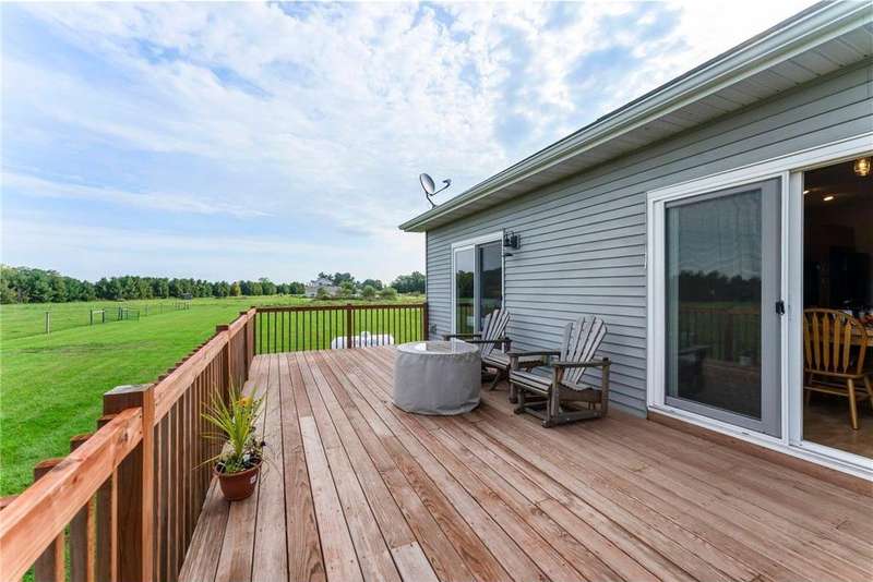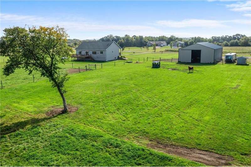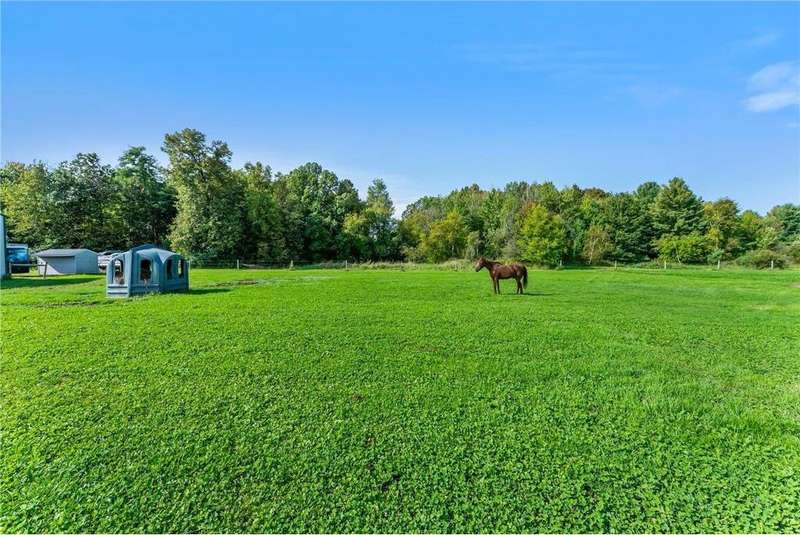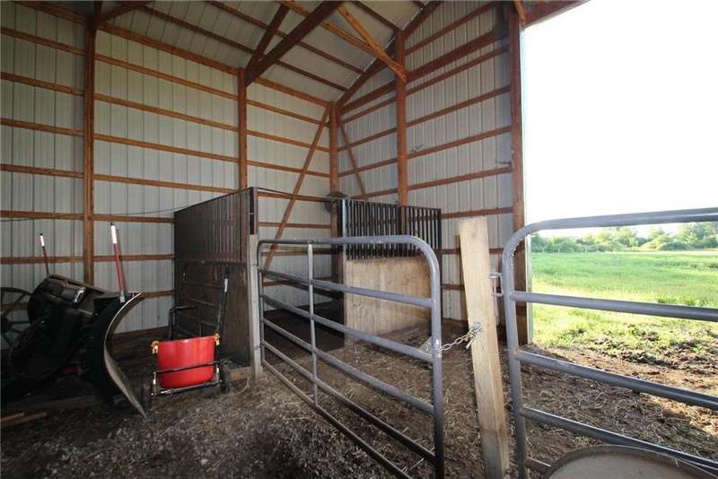 Welcome to 9187 Apple Road—a beautifully maintained rural residential property designed for comfort, functionality, and country living. Nestled on 10 acres of level land with medium tree coverage and 6.5 acres of fenced pasture, this turn-key hobby farm is ideal for horse lovers, hobby farmers, or anyone seeking a peaceful retreat. It is a beautiful set up horses with livestock fencing and 2 box stalls in a 42x70 pole building with 100 amp service. House roof was replaced in 2020, new windows were installed 2024, forced air furnace and water softener 2025, gutters added in 2023, patio and sidewalk poured in 2022 and deck added in 2023. Pole barn garage doors are 10x12 and 14x12 and livestock door in rear. With this home you will fill like a chef in the kitchen which is beautifully set up for entertaining people. Three bedrooms on the main level with private Master suite with walk-in closet and shower make this a must see.