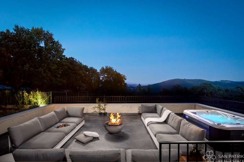 The interior is finished to a high standard: four spacious bedrooms with luxurious bathrooms, a modern kitchen equipped with Gaggenau appliances, an elegant living room with fireplace, a dining room with designer chandeliers, a wellness area with sauna, jacuzzi and gym, and a heated infinity pool, this villa offers absolute comfort throughout the year. Enjoy also the outdoor summer kitchen, lounge area with fireplace, and private ATP-certified tennis court.