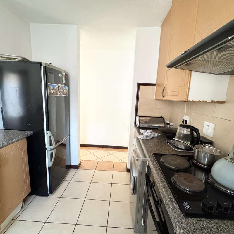 Spacious Ground Floor Unit in a Secure Complex Welcome to this well-appointed ground floor unit, perfectly situated within a sought-after complex. The open-plan layout offers a seamless flow between the kitchen, dining, and living areas. It?ÇÖs ideal for modern, versatile living. The kitchen features built-in cupboards and space for two under-counter appliances. The main bedroom includes an en-suite bathroom with a shower, while the second bathroom is fitted with a bathtub. Enjoy peace of mind with 24-hour security in this gated community, along with the added convenience of ample visitor parking. Electricity and water are prepaid, and the unit is equipped for Wi-Fi connectivity. Residents have access to great communal amenities, including a clubhouse, swimming pool, and braai area. The complex is ideally located near Vodaworld and San Ridge Mall for easy access to shopping, dining, and entertainment. Call for a viewing appointment!