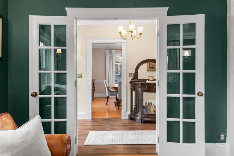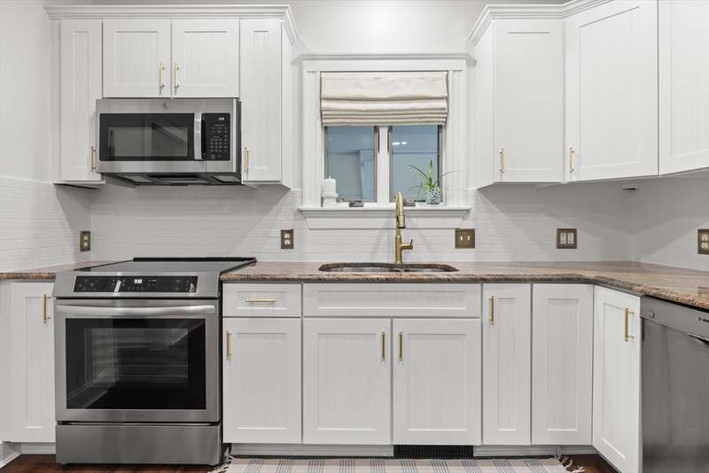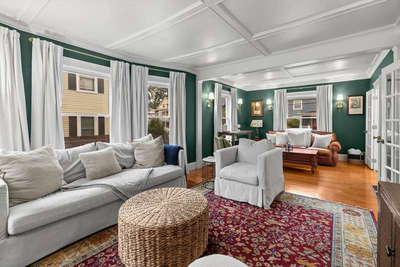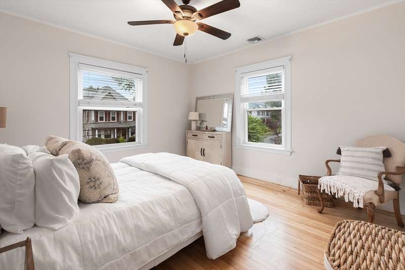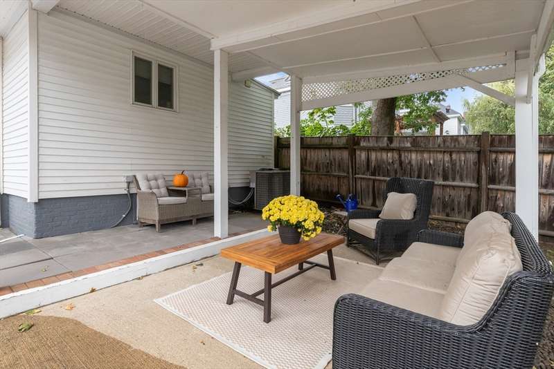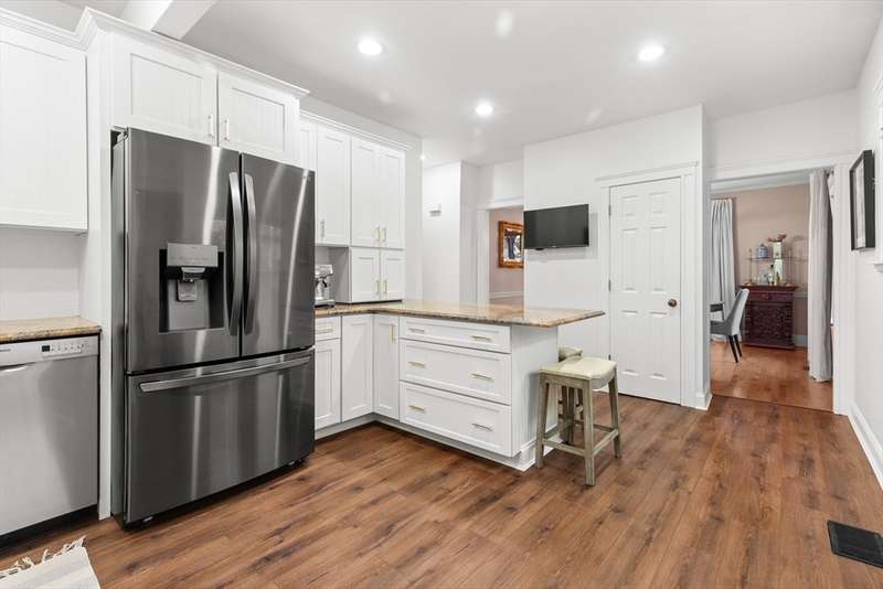 Welcome to this storybook American Foursquare in the sought-after Walnut Square neighborhood. Totally renovated in 2014, and beautifully refreshed since, this move-in-ready home blends timeless character w/ modern comfort. The inviting front-to-back living room showcases a coffered ceiling, French doors, crown molding, and gleaming hardwood floors. A spacious dining room w/ classic chair rail is perfect for entertaining. The kitchen features granite counters, a tile backsplash, abundant cabinets, a breakfast bar, and laminate wood floors. A handy first-floor powder room and laundry add convenience. Upstairs are four generous bedrooms and a full tiled bath, plus a finished walk-up third floor w/ cedar closet, that works beautifully as a 5th bedroom, office, or playroom. 2-zone heating, central A/C, irrigation, a generator hookup, and a new tankless water heater (2023) add function to this charming home. Outside, enjoy a fenced yard with patio and a two-stall garage with ample storage.
