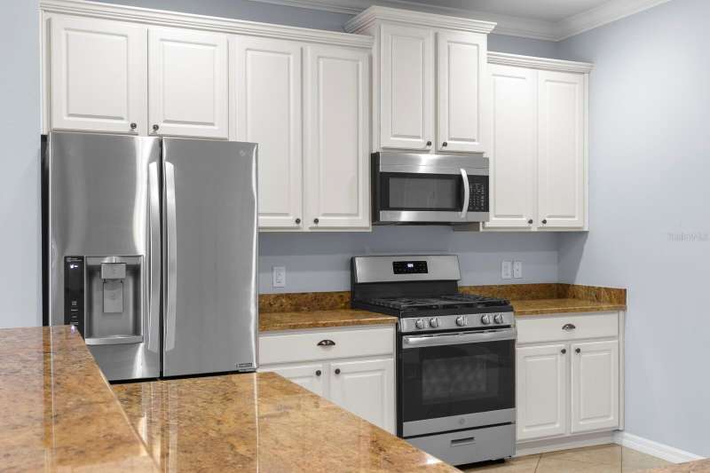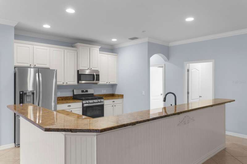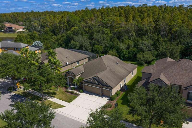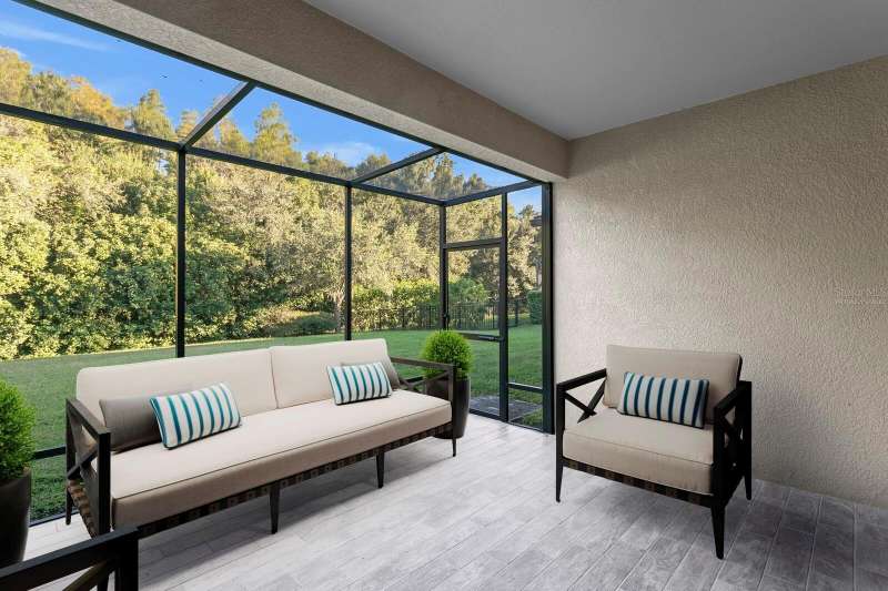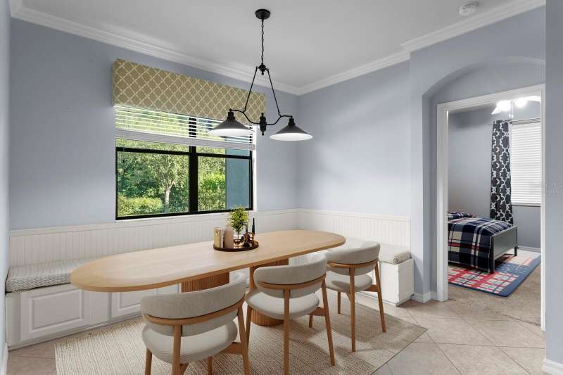 One or more photo(s) has been virtually staged. Experience the best of New Tampa living in Grand Hampton, a premier guard gated community known for its elegance and resort style amenities. This impressive 4 bedroom 4 bath residence spans over 3,000 square feet on a picturesque quarter acre conservation lot and is attractively offered to allow the next owner the opportunity to update finishes and personalize the home to their own style and décor.** From the moment you enter, you’ll be greeted by elegant architectural details, crown molding, and an abundance of natural light that enhances the home’s open and welcoming layout. The formal living area transitions effortlessly into the heart of the home, a stunning chef’s kitchen showcasing solid wood cabinetry, granite countertops, stainless steel appliances, recessed lighting, and a charming built in breakfast nook with bench seating. A private guest suite and full bath are conveniently located near the entry, while two additional secondary bedrooms provide ample comfort and flexibility, one featuring its own en suite bath and walk in closet. The primary suite is thoughtfully positioned at the rear of the home, overlooking the peaceful conservation area. Here, tray ceilings, a spa inspired bathroom with dual vanities, soaking tub, walk in shower, and generous walk in closet create a true retreat. Upstairs, a spacious loft with its own closet offers flexibility for a home theater, gym, office, or even a fifth bedroom if desired. Outside, French doors lead to a screened in lanai finished with porcelain wood look tile, perfect for relaxing or entertaining while enjoying the tranquil wooded backdrop and complete privacy with no rear neighbors. Recent updates include a new AC unit in 2021 and a tankless water heater in 2022. The oversized 3 car garage provides plenty of room for storage or hobbies. Residents of Grand Hampton enjoy resort style living with world class amenities including a 24 hour manned gate, clubhouse, fitness center, playgrounds, multiple heated pools with a water slide, spa, tennis and basketball courts, and scenic lake access. This home presents an exceptional opportunity to create your dream space in one of Tampa’s most sought after master planned communities. Ideally located near I 75, I 275, AdventHealth, The Shops at Wiregrass, and Tampa Premium Outlets, and just a short drive to the Gulf beaches, the vibrant lifestyle of downtown Tampa, and top rated New Tampa schools, this is Florida living at its finest. Welcome Home!