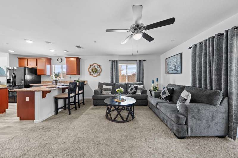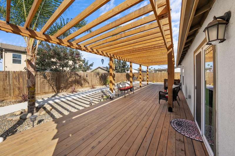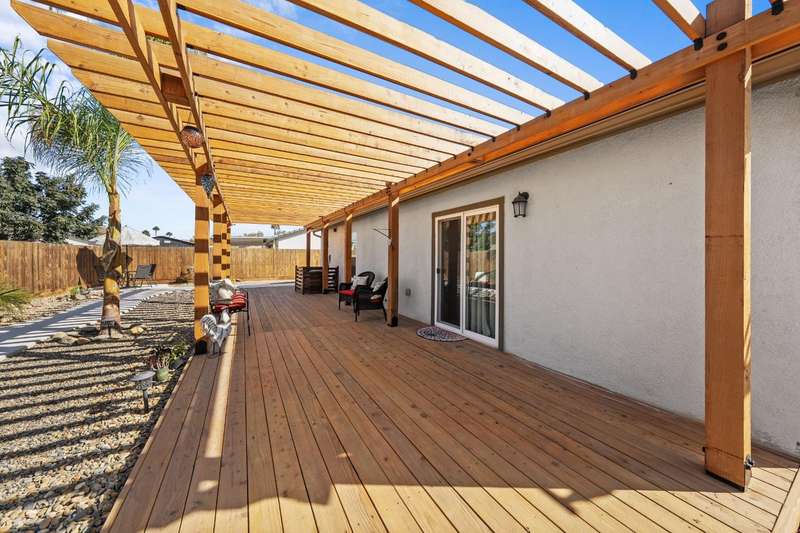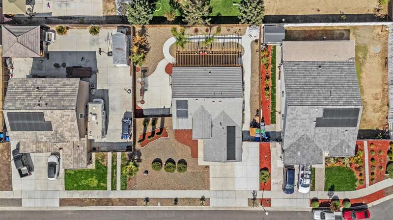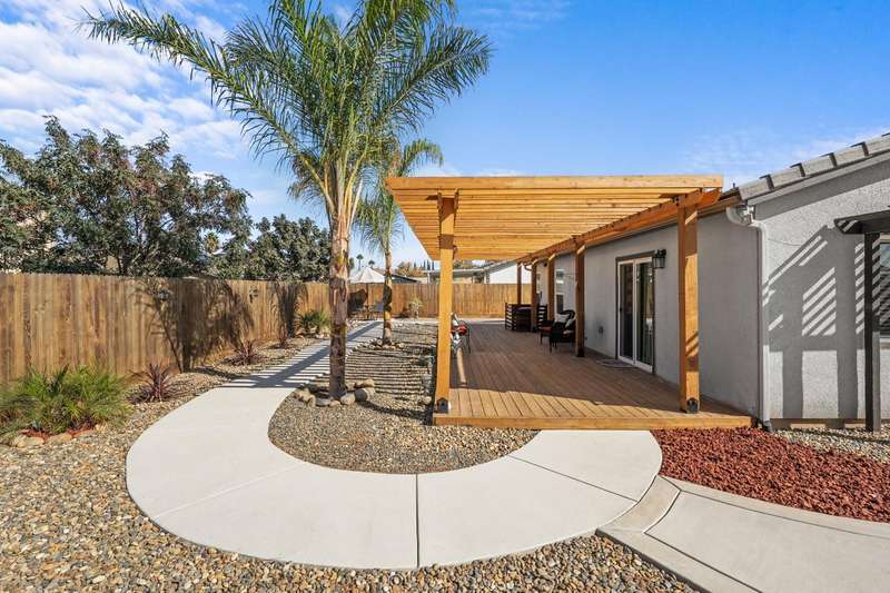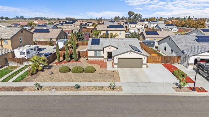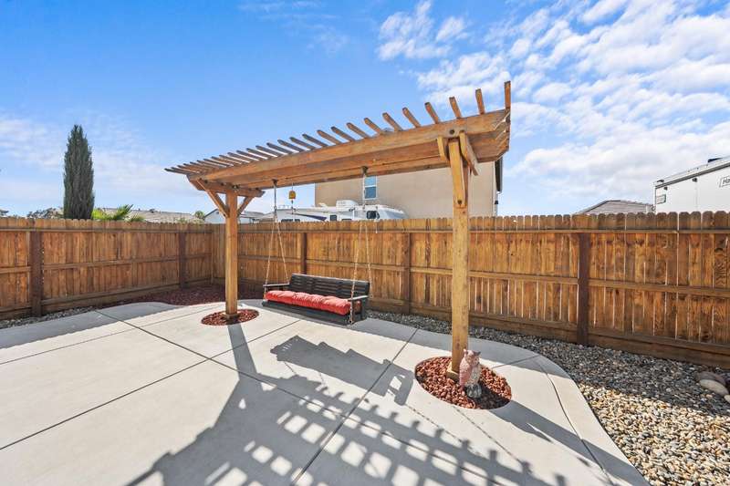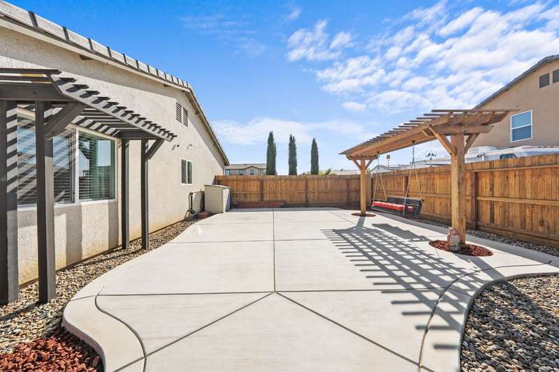 Welcome to this gorgeous 3 bedroom, 2 bath home built in 2019, where pride of ownership truly shines! Meticulously maintained and move-in ready, this home truly has it all modern comfort, style, and care in every corner. Enjoy peace of mind and energy savings with paid-in-full solar and a paid whole-house water filtration system. The security system and cameras are included, making this home as safe as it is beautiful. Outside, you'll love the low-maintenance rock landscaping, custom pergolas, drip irrigation system - front and back, and expansive concrete work, offering plenty of space for entertaining, relaxing, or play. The large backyard and side yard provide room to host gatherings, or simply unwind. You won't want to miss out on this fantastic opportunity to call this house your home!