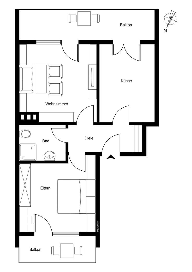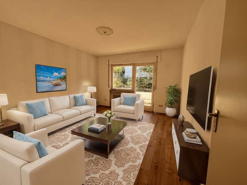 This practically designed 2-room condominium is for sale in a beautiful location in Badenweiler. The apartment is suitable for owner-occupation for singles or couples as well as an investment for renting out. The apartment is located on the 1st floor in a very well-kept apartment building. There are 6 parties in the house. The stairwell was freshly painted in October. The apartment has two spacious balconies facing north-west with a fantastic view over Badenweiler and the picturesque surroundings. The rear, larger south-east facing balcony is adjacent to the living room and kitchen. The living room, bedroom and kitchen all have access to the balcony. The bright rooms and the practical layout make this apartment a little gem. The floors in the living room and bedroom were recently renewed with modern laminate flooring. Light-colored tiles have been laid in the hallway, bathroom and kitchen. The centrally located bathroom has a walk-in shower and a ventilation system. The lighting is provided by ceiling spotlights. The apartment is in need of renovation. In the medium term, the windows (3 window-door elements) should be renewed in consultation and co-financing with the condominium owners' association. However, the apartment is fully usable immediately. The apartment has an outdoor parking space in front of the building. A cellar compartment as well as a connection and space in the communal laundry room are also part of the offer. The apartment is available for immediate occupancy.