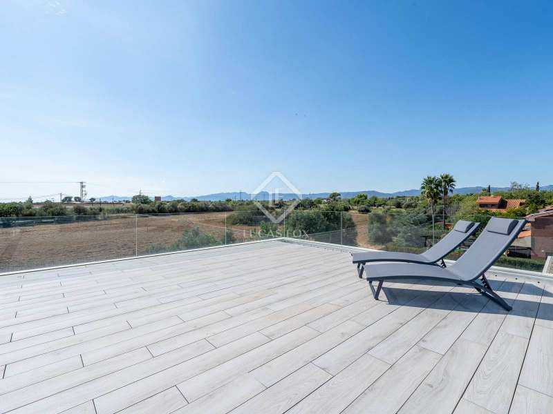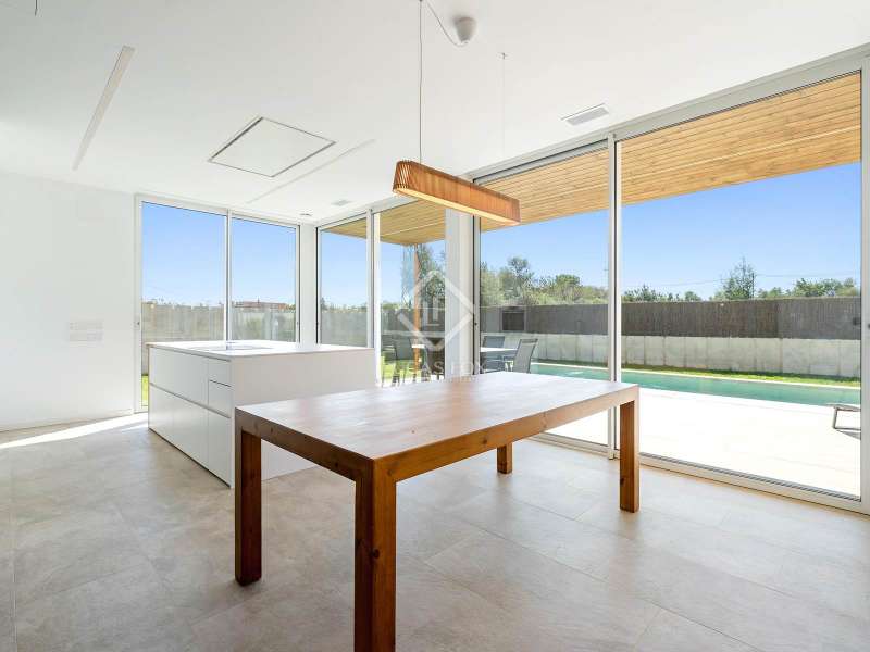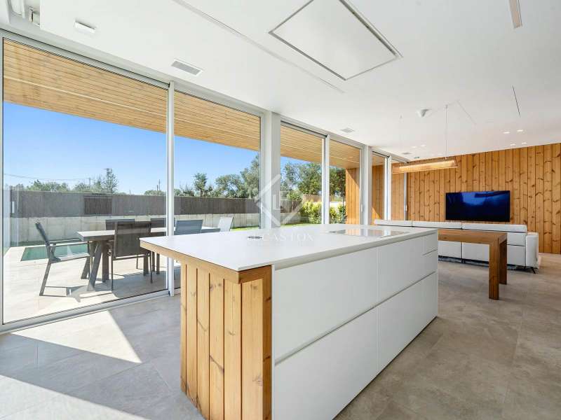 Lucas Fox presents an innovative house, designed by a renowned architect in the area. Its style is elegant, with straight lines and wooden details that provide warmth and a modern touch to the design. Recently built in 2023, the house has 309 m² and stands out for its integration into the environment, taking advantage of the views and natural light. It is characterized by a modern, efficient and sustainable design, with innovative solutions to optimize the use of space and energy. Natural materials and a focus on the connection between the interior and the exterior stand out in its architecture. The main floor is a bright and welcoming space. The entrance and living room, adorned with warm wooden features on the walls, provide an elegant and comfortable atmosphere. Along the corridor, built-in wardrobes offer ample storage space without detracting from the aesthetics of the design. Upon entering, we find a spacious living room that integrates perfectly with a modern open kitchen, equipped with state-of-the-art appliances. This contemporary design creates an ideal environment for conviviality and family gatherings. From the living room, large glass doors open onto the garden, the wonderful swimming pool and the magnificent terrace, ideal for enjoying moments outdoors. A porch is integrated with the structure of the house and has natural wood ceilings, perfect for outdoor dining or simply relaxing, thus creating a perfect refuge at home. The same floor has an en-suite bedroom with bathroom, a guest toilet, a garage on the floor and another additional space, a room type with an office and another bathroom. Depending on the needs, this space offers functionality and flexibility in the design of the home. The second floor has four double bedrooms, one of them en-suite with a private bathroom. All of them enjoy large windows that flood the rooms with natural light and offer panoramic views of the surroundings. In addition, they have access to the terraces. This house is practical, fresh and modern, with a layout designed for daily comfort. The contemporary design, combined with natural materials, provides a feeling of warmth and harmony with the exterior. It is a single-family home located in a development close to the town of Reus and the "AigüesVerds" Golf Course. Request a visit and be amazed by its architecture and peaceful surroundings.