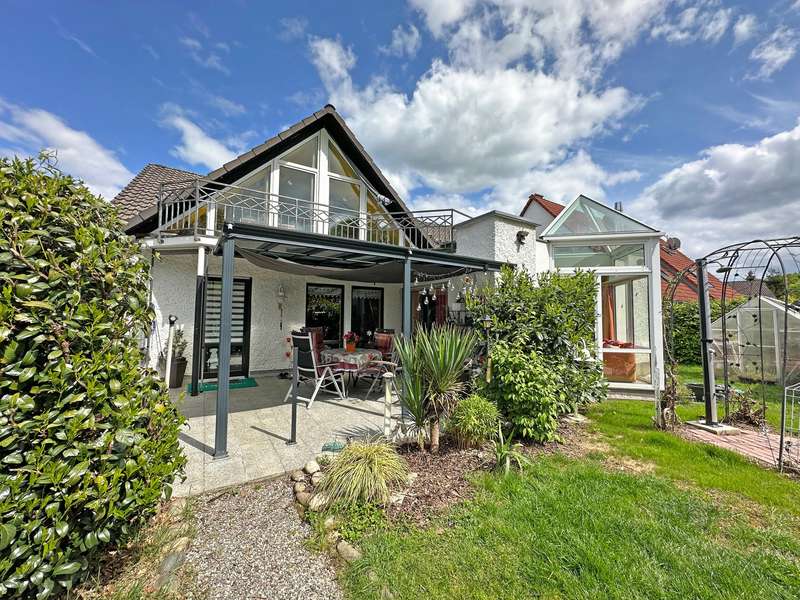 This charming detached house, built in 1986 and in a well-kept condition, offers plenty of space for your individual living dreams on a living area of approx. 180 m² and a generous plot of approx. 690 m². The property is situated in an attractive location on the edge of a field, which impresses with its natural surroundings and guarantees a sunny and light-flooded living ambience. The house has a total of five rooms, including three spacious bedrooms, which offer you and your family comfort and privacy. The two bathrooms provide additional comfort in everyday life. The open-plan living area, equipped with two fireplaces, invites you to spend cozy evenings and conveys a homely flair. A conservatory extends the living space and offers the opportunity to relax close to nature all year round. In addition, the high-quality parquet and tiled floors with integrated electric underfloor heating provide a pleasant indoor climate. The fitted kitchen impresses with its functional equipment. In addition to the main kitchen, there is also a small guest kitchen that can be used flexibly. A particular highlight of the property is the pool area, which was modernized in 2020 and provides refreshment and relaxation on warm days. The leisure facilities are complemented by a sauna in the garden and a practical outdoor kitchen for sociable barbecues with family and friends. The property also offers a spacious terrace and a roof terrace accessible via the living area, which can be used as a quiet retreat or as a place to sunbathe. A pavilion in the garden invites you to linger and rounds off the outdoor offerings. A garage, a carport and three additional parking spaces, which were renewed in 2016, provide ample space for vehicles. The property is located in the quiet district of Eulsbach in Lindenfels, surrounded by nature and with direct access to fields and woods. The location offers relaxation, privacy and good connections to surrounding towns such as Weinheim and Heppenheim. Ideal for anyone who wants to live close to nature yet within easy reach. This property offers an excellent quality of living with its combination of well thought-out room layout, furnishings and attractive surroundings. Arrange a viewing appointment to see the potential and comfort of this property for yourself.