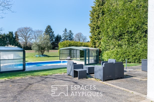 Its terrace overlooking the pool exudes a sweet scent of vacation and well-being. For horse lovers, the plot will be perfect, especially as an annex of 35 sqm can easily become a box.