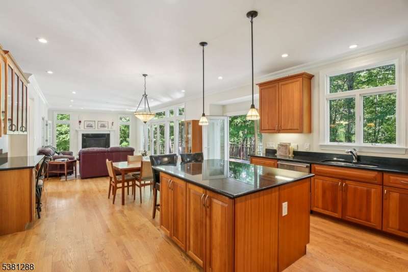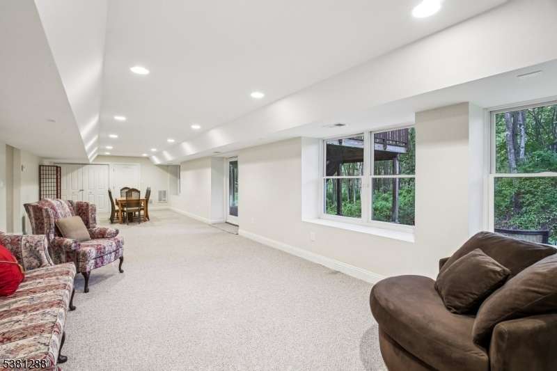 This custom built center hall Colonial built in 2009 boasts 5 bedrooms, 4 full baths and an office, approximately 5000 sq ft. of living space, and features a huge wooded lot! Step into the grand 2-story entrance hall and be greeted by gleaming hardwood floors and tons of natural light. Main level offers ideal floor plan; an enormous family room w/ gas fireplace totally open to gourmet kitchen with custom cherry cabinets and top of the line Thermador stainless steel appliances, formal dining room w/ chandelier, office/guest bedroom and full bath. Large mahogany deck overlooks the private beautiful wooded property. The 2nd level has double doors open to Luxurious primary suite w/ sitting room and 3 closets, a spa-like bath w/ Jacuzzi, shower and double sinks, and 3 very spacious bedrooms, another full bath and laundry. Downstairs, finished walkout basement includes a guest bedroom, full bath, as well as a huge rec room which is perfect for living space/entertaining. Lower level can be used as in-law or guest suite! Hookups available to add wet bar and 2nd laundry in basement. This home also features easy 1st floor access to attached 2 car garage, Anderson windows/french doors throughout, 3 zones central AC and heat, security system, french drains, newer septic and utilities. Chatham offers top rated schools and Bus service provided up to high school. this home is close to all major highways and train/bus direct to NYC. Low property taxes! Do not need flood insurance, as home is not located in a flood zone!