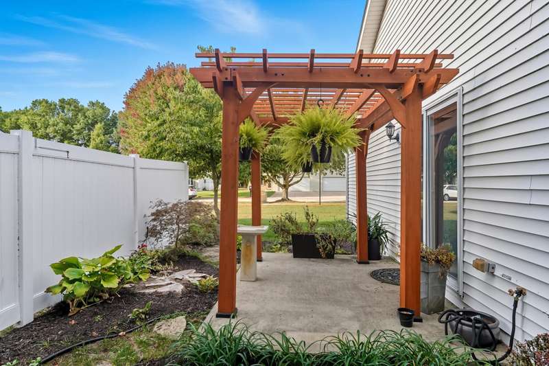 Discover easy living in this beautifully maintained ranch-style condo offering the perfect blend of comfort, style, and convenience. This move-in ready 2 bedroom, 2 bath home features over 1,400 finished square feet of thoughtfully designed living space. The bright and open layout is accented by quartz countertops in the kitchen and baths, all appliances included, and custom wood shutters that add warmth and elegance throughout. Step outside to your private backyard retreat, complete with a patio, pergola, and storage shed--perfect for relaxing, entertaining, or enjoying quiet mornings with coffee. Best of all, enjoy the ease of maintenance-free living so you can spend more time doing what you love. Homes like this don't come around often--schedule your private showing today and see why this is the perfect place to call home!
