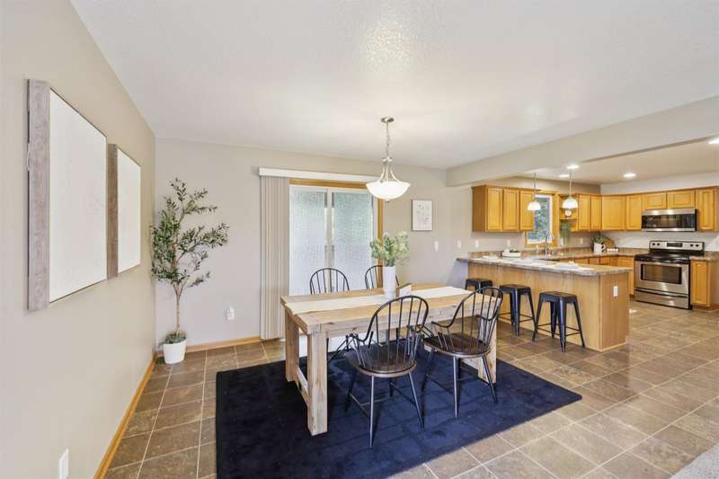 Double lot with mature landscaping that backs to trees and field. Spacious 3 Season room that is comfy for most of the year. Huge heated 3 car garage with almost 1000 sqft.Cement board siding. Daylight windows in the partially finished lower level.This 3 bedroom two story home is ready for you!