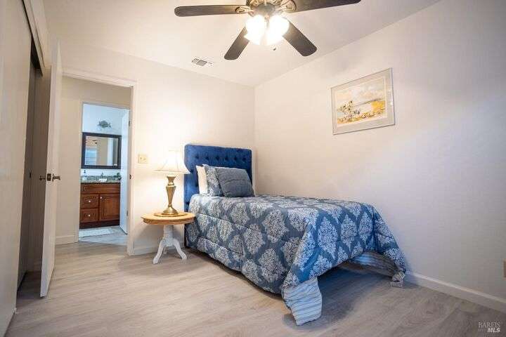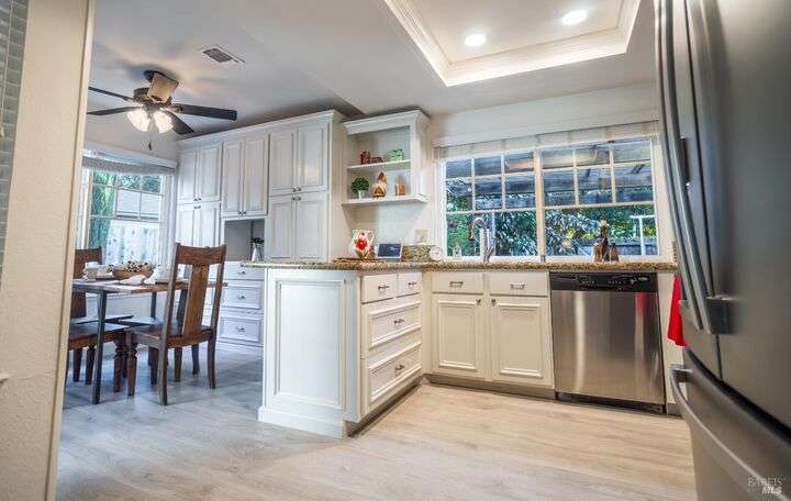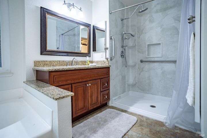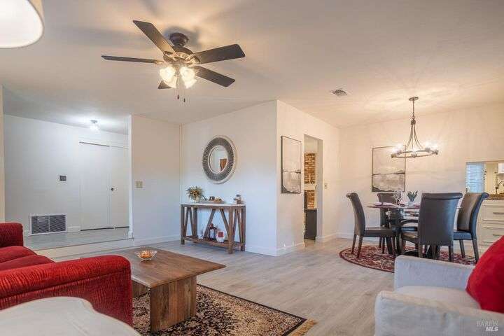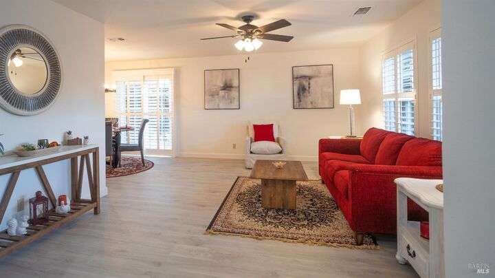Beautifully Updated Single-Story in Prime North Alamo Location. This beautifully maintained single-story home sits on a quiet street in one of Vacaville's most desirable neighborhoods. The sought-after North Alamo area offers excellent schools, a welcoming neighborhood park, and convenient access to I-80 for an easy commute. Situated on a corner lot, the home features lovely landscaping and a charming pergola just off the dining roomperfect for outdoor entertaining. Inside, you'll find numerous updates, including a remodeled kitchen, upgraded windows, new flooring, and fresh interior paint. The newly remodeled primary bathroom is thoughtfully designed to be handicap-friendly, featuring easy access to the shower and convenient grab bars for added safety and comfort.