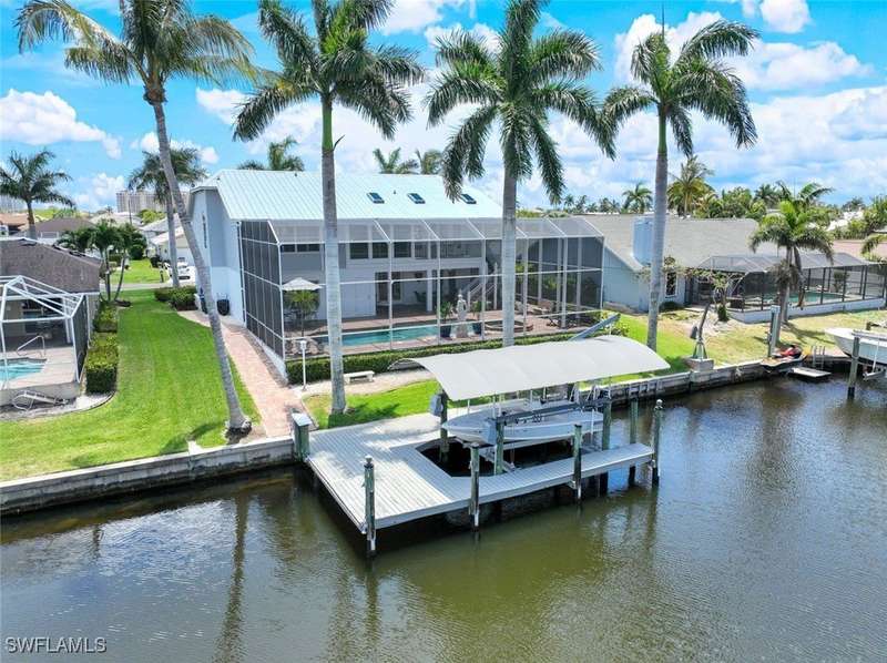 Reduced over $100,000, and ready for a new Owner! This is a custom built gorgeous home with DIRECT Sailboat Gulf Access. 2-story, 3 bedrooms, office/den, and a huge Billiard or game room. This home would also make an excellent vacation rental property! Oversized and custom Pool, in-ground Spa, Boat Dock, with a 8K lb boat lift. A few recent updates and upgrades: New roof, new siding, skylights, ceiling to floor impact glass in eat-in-kitchen. Whole home fresh paint. A complete kitchen remodel with new KitchenAid appliances including a 48 inch built-in Refrigerator. Master bathroom update and remodel, a stunning walk-in shower with multiple shower heads, new countertops and bathroom fixtures. The pool and lanai area now have brand new outdoor kitchen, never used pool full bathroom downstairs. The owners are downsizing, and have meticulously maintained this home. Easy access to Cape Harbor and Tarpon Point Marina and a short ride to The Gulf. There are so many special features to this home. If you are looking for a beautiful, gulf access, home, then this home is a MUST SEE!