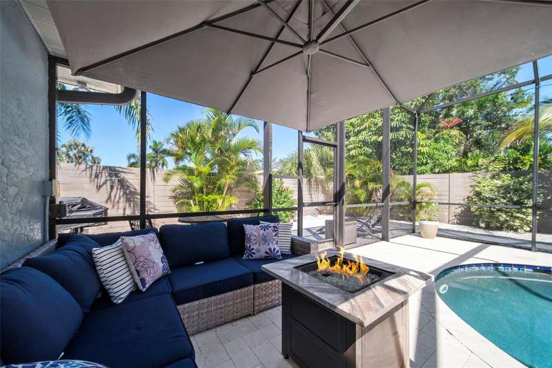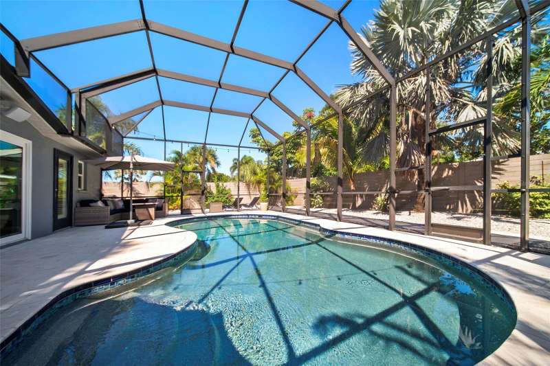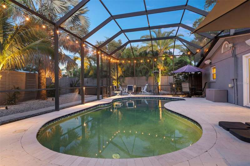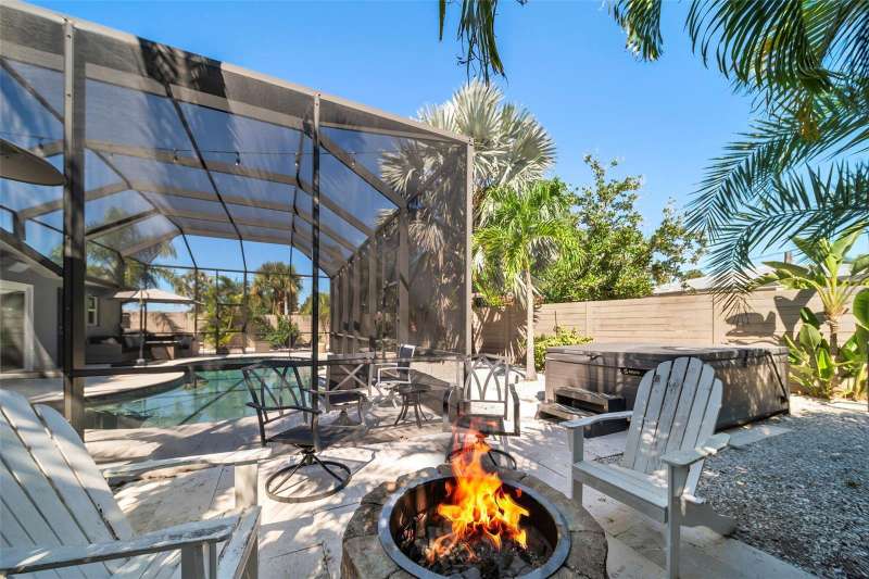Welcome to 5346 Palos Verdes Drive, a fully renovated gem in the hidden enclave of River Forest. Tucked just off Tamiami Trail, this quiet neighborhood of tree-lined streets, complete with community park and kayak launch dock, feels worlds away while keeping you minutes from The Landings, Phillippi Creek Oyster Bar, Phillippi Estate Park, and Siesta Key Beach. With no deed restrictions, no mandatory HOA fees, and not in a flood zone, this home offers freedom and peace of mind. This 3BR/3BA home has been transformed for modern living with a new roof (2024), impact windows, doors, and skylight, hurricane-rated pool cage, all plumbing relined (2022), spray foam insulation, and a generator hookup. Inside you will find skylights, plantation shutters, recessed lighting, surround sound, and whole-home audio plus a mini-split in the primary bedroom for custom comfort and efficiency. Home can come fully furnished for a turnkey seamless move-in experience and plans are available for a second-story addition. Step outside to your private oasis with a saltwater pool featuring a new heater and chiller (2024), LED landscape and pool-cage lighting, a fire pit, and a brand-new Hot Springs spa (2024, $18K value). A fenced yard (2024) ensures privacy, while a rear parking pad with RV hookup is perfect for your boat, jet ski, or motorhome. A well-fed irrigation system keeps the lush landscaping thriving with low water costs. River Forest offers a rare blend of convenience and tranquility in central Sarasota. Don't miss this move-in-ready home where every upgrade has already been done for you.