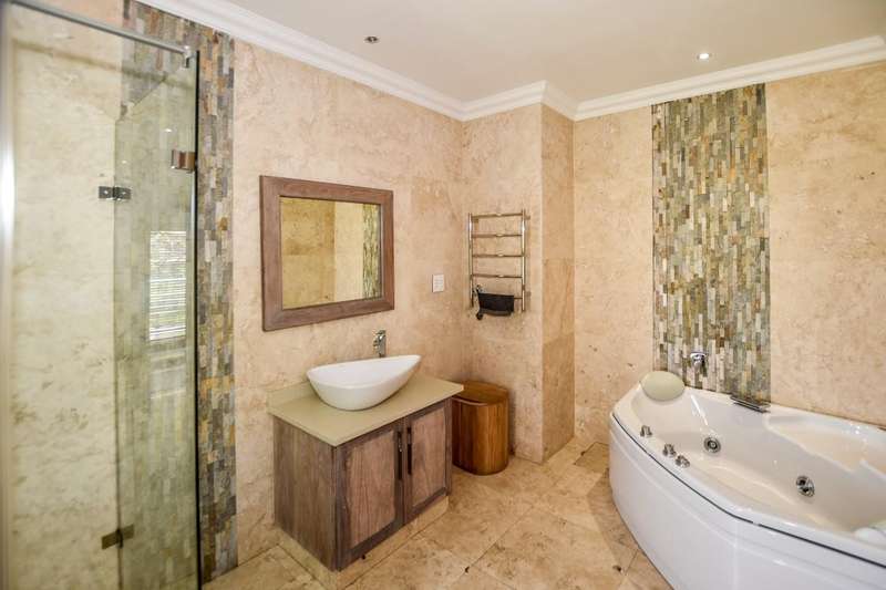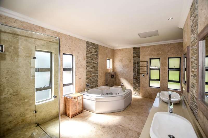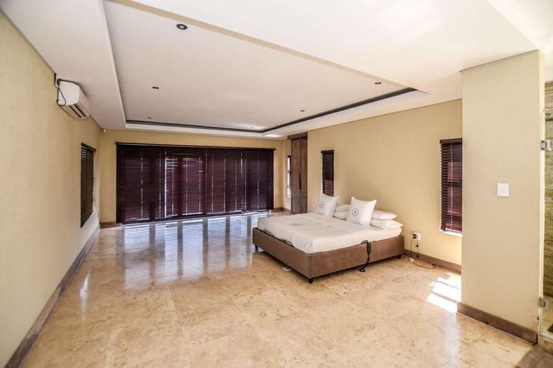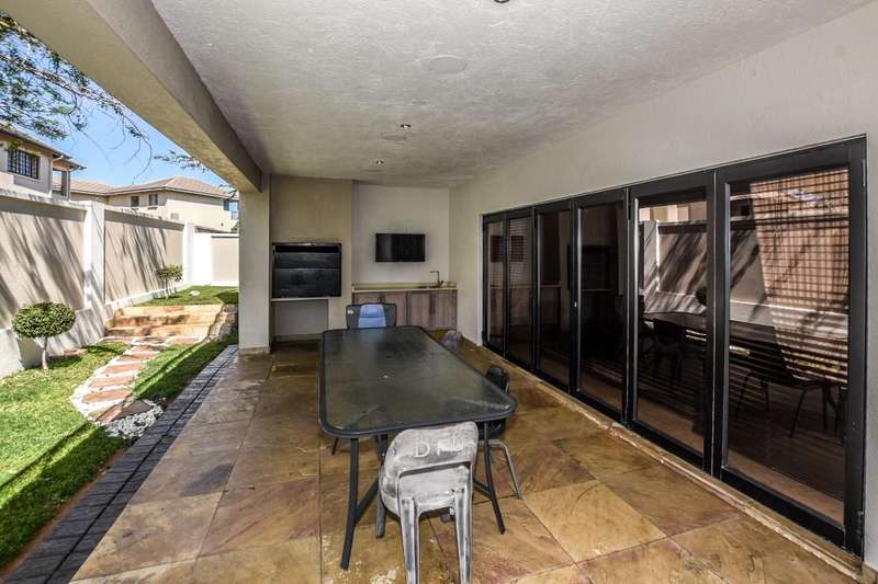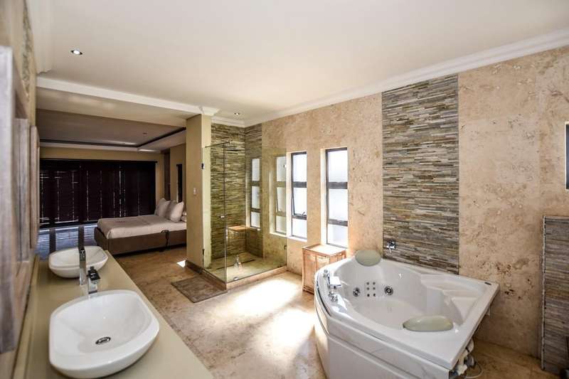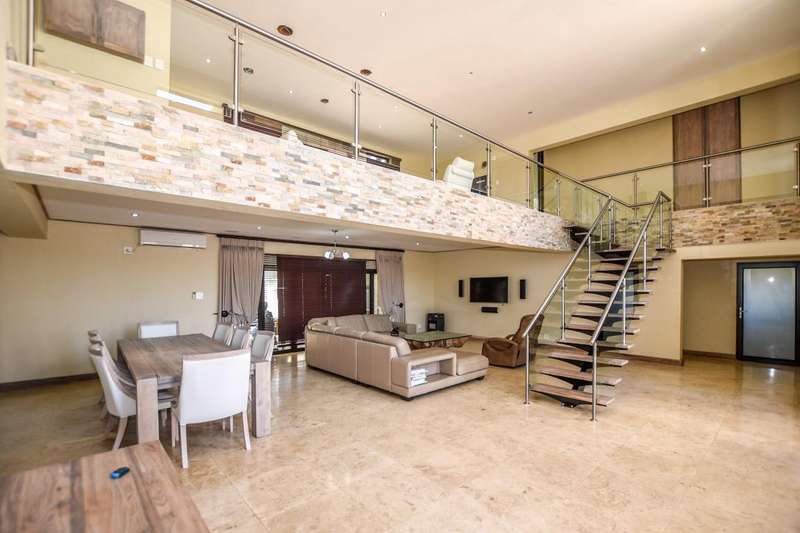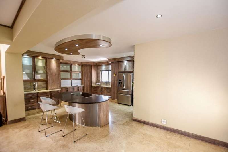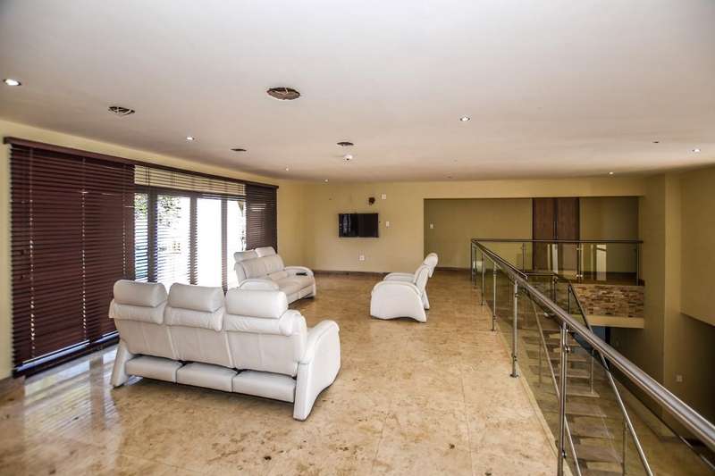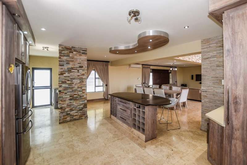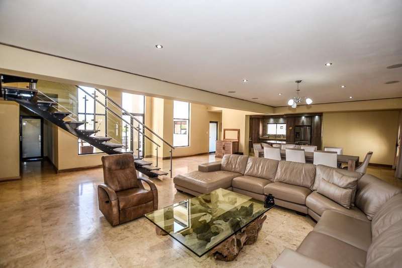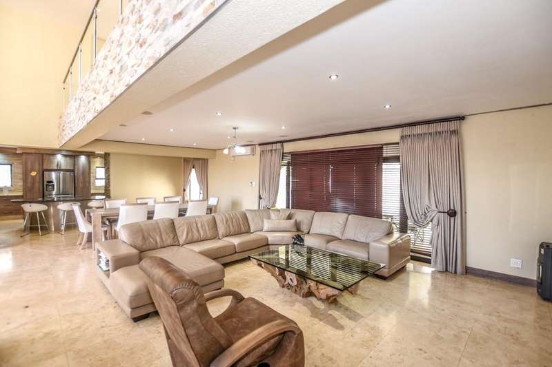 This architecturally designed mansion offers you everything you could desire and a lot more. All the bedrooms (4) are en-suite, air-conditioned and very spacious The ultra modern kitchen offers a gas stove with built in eye level oven and microwave. There is a separate scullery. You have two lounges plus an additional playroom and a study which is ideal for working from home. The living area opens up to an undercover entertainment area with a built in braai. The four automated garages offer ample parking for all your toys. This is truly an entertainer's dream. Do not delay, call today for a viewing.