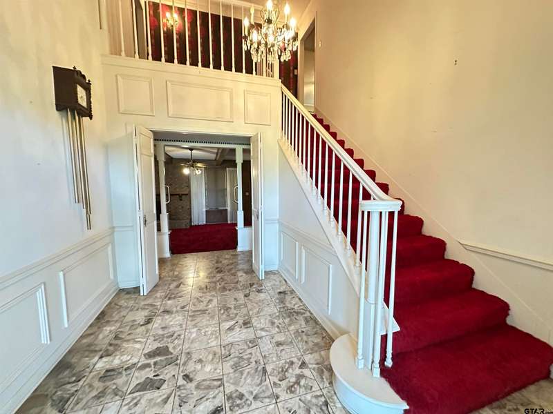 Discover the potential of this quality-built home offering 4-6 bedrooms and 3 1/2 baths, situated on nearly 5 acres of fenced land. 4 rooms upstairs, guest and master bedroom downstairs. A circular driveway welcomes you to this impressive property complete with a barn perfect for horses, hobbies, or extra storage. Inside the home features a super-sized sunken living room with wood burning fireplace.. ideal for entertaining, a wet bar for gatherings, and a generously sized kitchen with room to customize. The floor plan is thoughtfully designed with ample space and flow, offering great bones for your dream updates. The home needs full cosmetic updates throughout, it was built with quality craftsmanship and offers a rare opportunity to create your own vision in a highly desirable setting. Out of the city limits but only 5 min to downtown shopping.