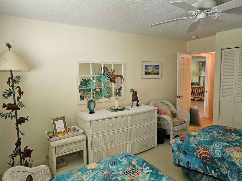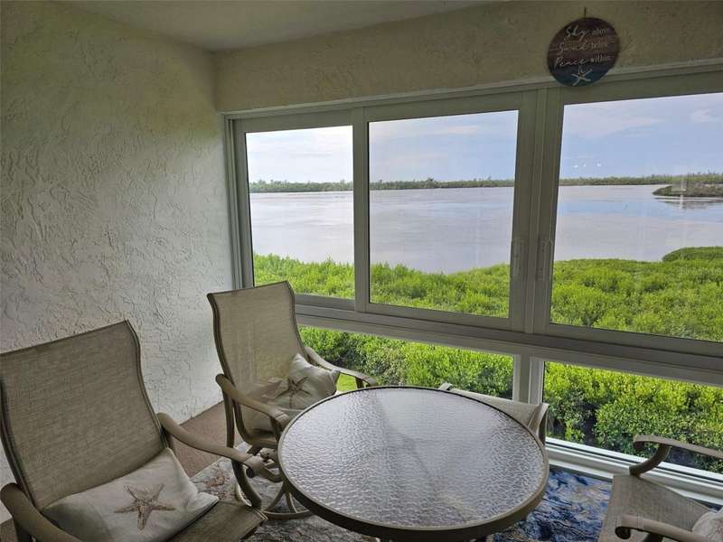 Wake up every morning to sweeping direct Bayfront views in this welcoming 2-bedroom, 2-bath condo in a lively 55+ community. Perched on the second floor of a two-story building with both stairs and an elevator, this home offers comfort, convenience, and plenty of Florida charm. The fully equipped kitchen features warm butcher block countertops, a pantry, washer/dryer and a handy breakfast bar, flowing easily into the open living/dining combination. The main bedroom is designed for relaxation with a king bed, walk-in closet, and a bathroom boasting an updated shower and granite vanity top. Guests will feel right at home with their twin-bed suite and private bath with a tub/shower and doors. Best of all, the glass-enclosed patio gives you front-row seats to stunning Bayfront views-perfect for bird watching or simply unwinding with a cup of coffee. Enjoy the convenience of a detached covered carport, perfect for keeping your car out of the hot sun. The community is buzzing with activity, offering a full clubhouse, library, craft room, billiards, small exercise room, heated pool, tennis, shuffleboard, putting green, bird sanctuary with picnic area, boat docks, trailer/boat storage, and endless activities. And when you're ready for the sand, our beautiful beaches are just a couple of miles away. This one truly combines a peaceful bayfront setting with the best of active Florida living.