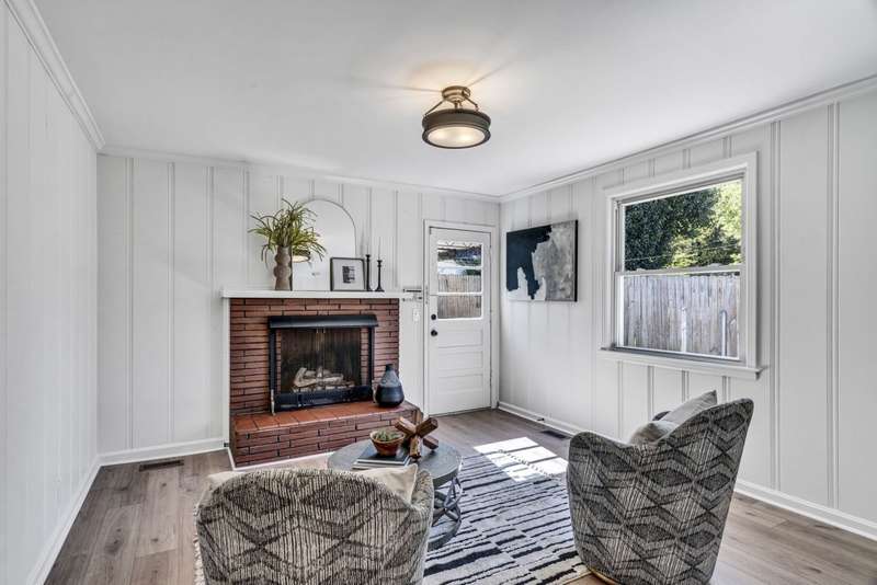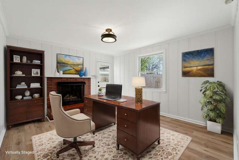 Charming remodeled single-story home features a striking painted brick exterior and well-maintained landscaping that creates inviting curb appeal. An Open-Concept Layout w/ seamless flow from the kitchen to the living area is cozy yet spacious & filled w/ natural light for a warm & inviting atmosphere. .Gourmet Kitchen is equipped w/ modern stainless steel appliances, custom soft-close cabinetry, and a central island with bar seating.Enlarged Primary Suite: a highlight of the home, featuring a spacious bedroom, large glass-enclosed shower, and a walk-in closet.New subway tile and elegant upgrades in the guest bathroom, complemented by new flooring throughout.Bonus Room offers versatile space with a gas fireplace, perfect for a playroom or home office. New tankless water heater and a convenient walk-out laundry/mudroom from the detached garage. This home blends modern elegance with functional design.