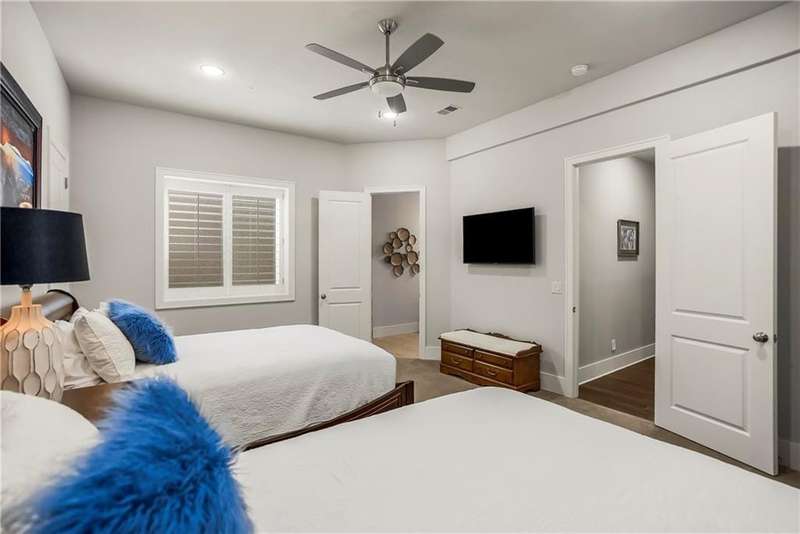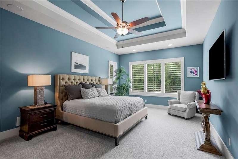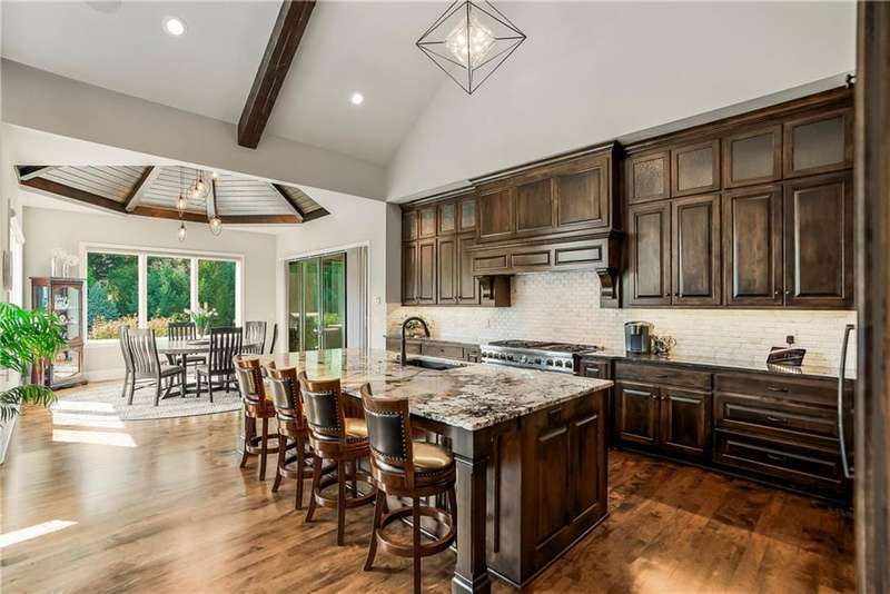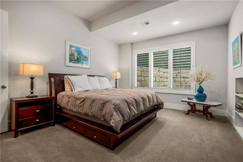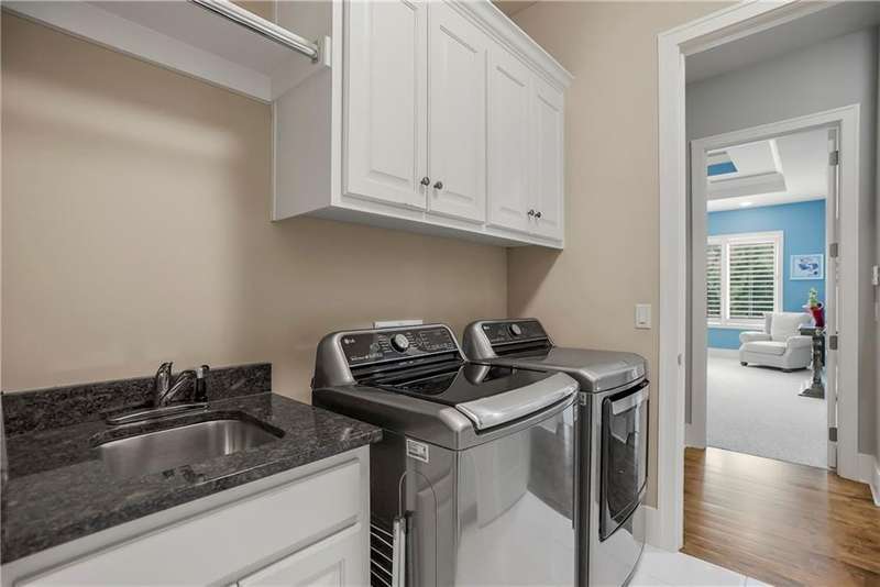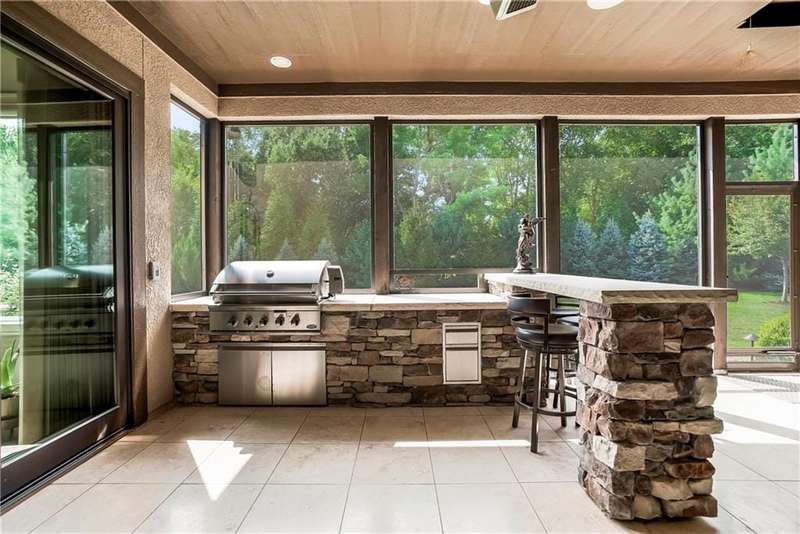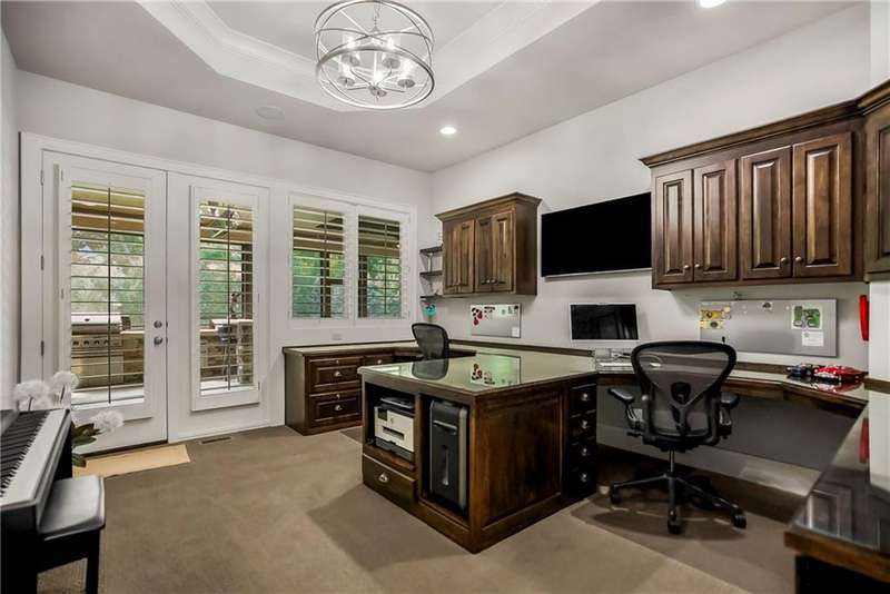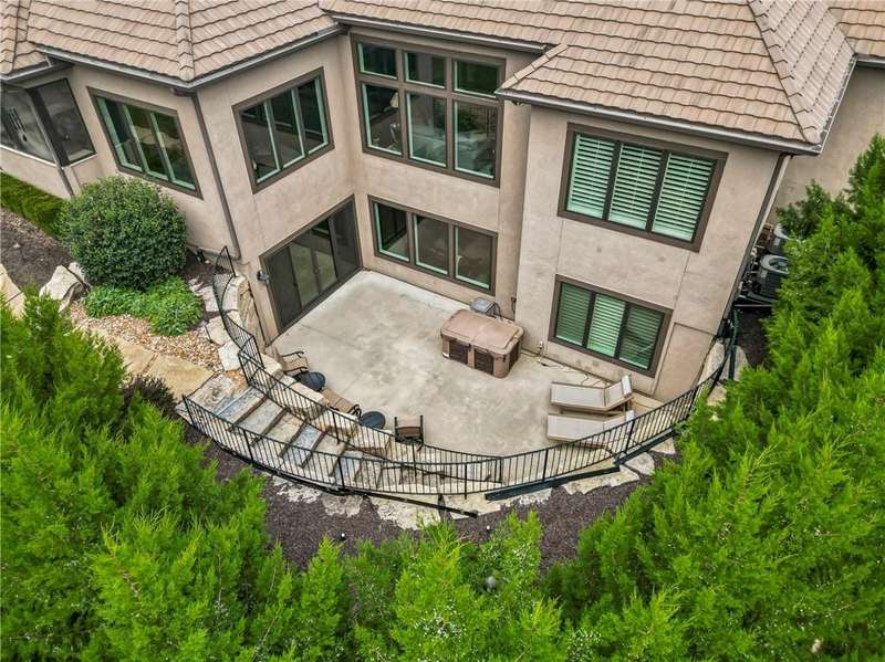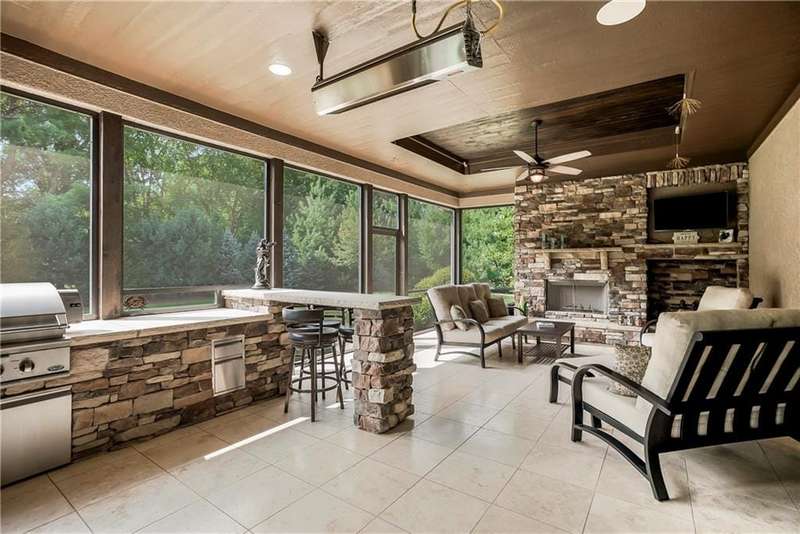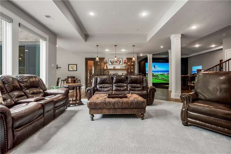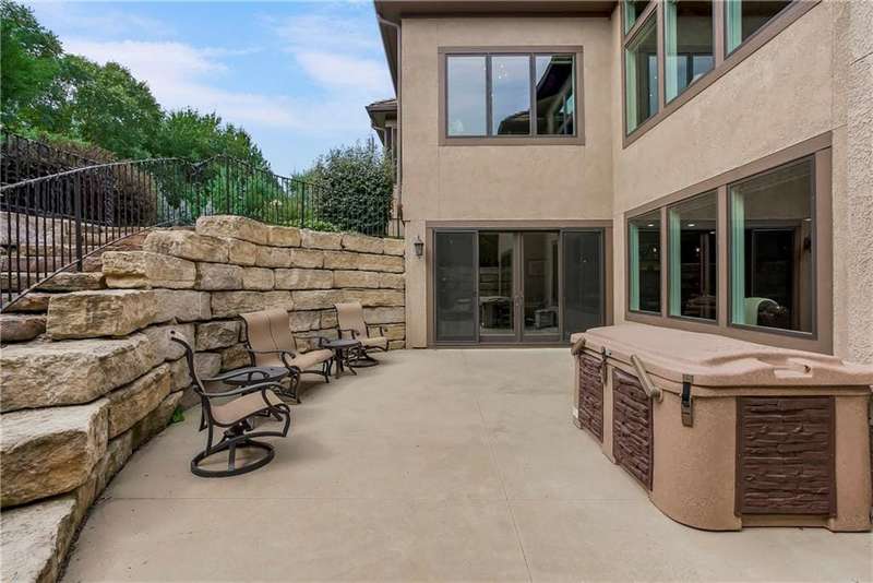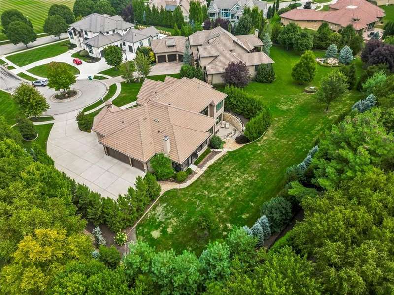 This fabulous custom home built by Starr Homes sits nestled on a wonderfully landscaped and private cul-de-sac lot in Leawood's highly sought Highlands Creek Subdivision. The open concept spacious main floor features vaulted ceilings, a cozy fireplace and gorgeous views of your private treed backyard. The kitchen features a stunning under-lit granite island, Thermador appliances and a large breakfast/dining area that opens to a fabulous lanai with built-in grill, fireplace and gas heater offering a wonderful extension of the indoors great for entertaining or just enjoying your private backyard. You'll find a fabulous primary suite on the main floor with a spa-like primary bath with large walk through double shower, adjacent laundry room and large walk-in closet. One additional bedroom on the main currently used as an office walks out to the lanai along with a large pantry, mud room and 1 1/2 additional baths can also be found on the main. The stunning lower level with 11' ceilings walks out to a spacious patio and features a full bar, wine cellar, rec/media room and 23x17 HD golf simulator. Three large bedrooms with private baths and plenty of storage space complete the lower level. This home has so much to offer with a 4-car side-entry garage with epoxy floors that is wired for an EV charger. At 5,848 finished sq ft and an overall sq ft of 7,869 and complete with an elevator and zero entry from the garage, this home truly offers something for everyone!