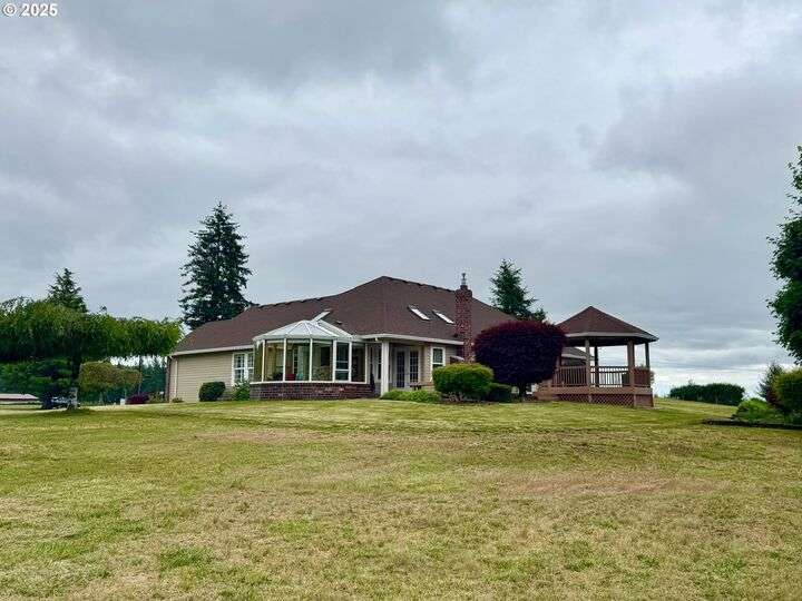 See virtual tour**Lovingly cared for one level home on Mt Norway 5 acres*4 bedrooms 2 bathrooms*Great room*built in entertainment center*brick hearth with cozy pellet stove*Cheery Sunroom**Newer roof*heat pump*furnace*New bathrooms*Island kitchen with granite counters*double ovens*formal living & dining rooms*vaulted ceilings*Deck invites to all weather gazebo**PLUS a super shop*propane heated*additional RV/Boat/toys storage*All of this on paved private country road & only minutes to shopping & recreation & only 30 minutes to PDX!!