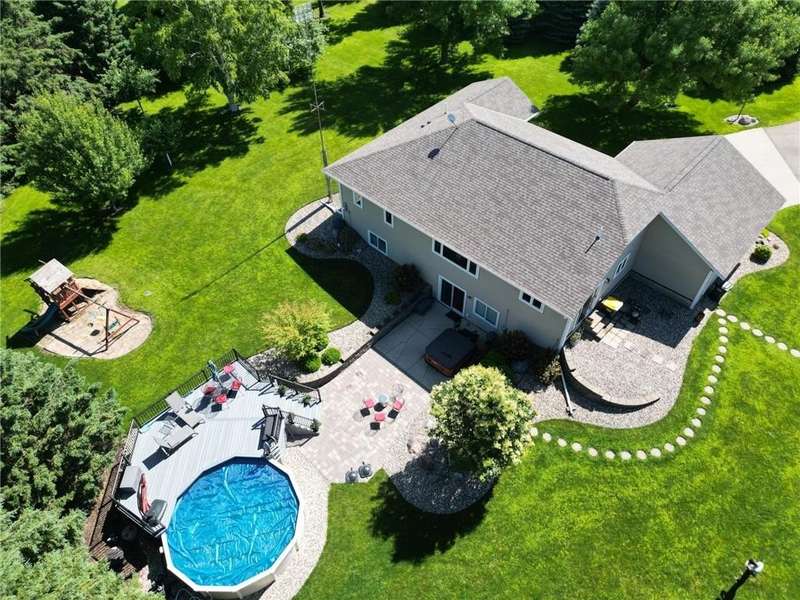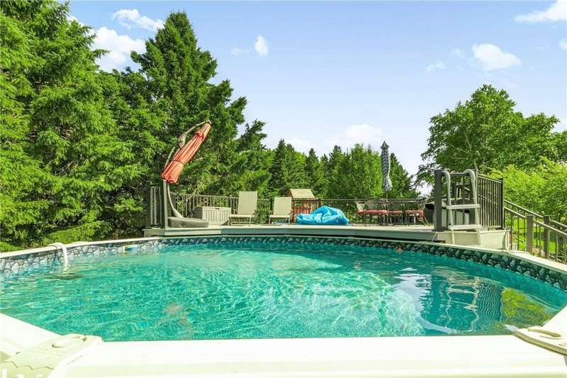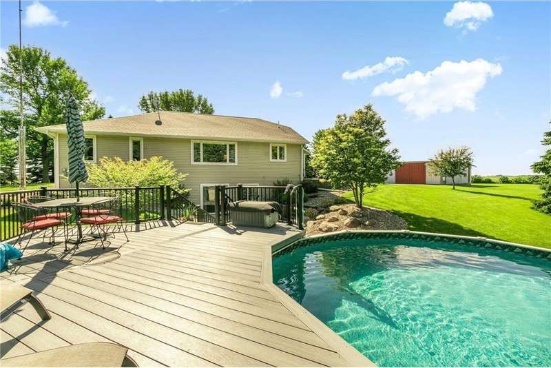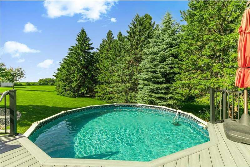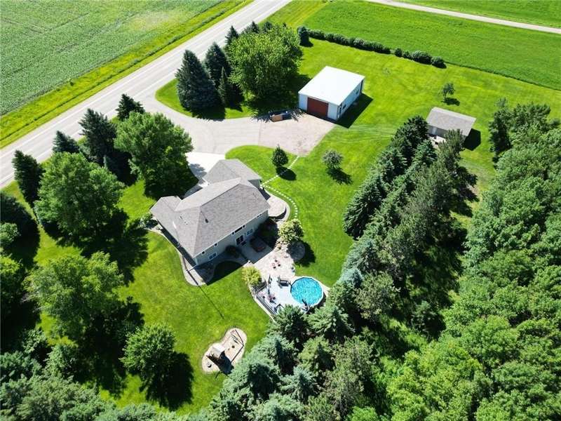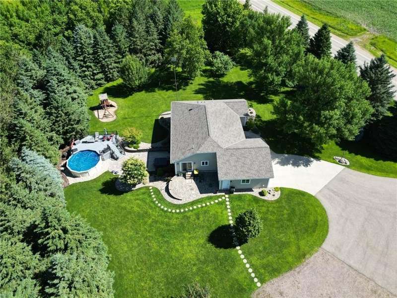 Charming Country Retreat on 12+ Acres – A Must-See! Professional photos coming. Don’t miss this beautifully maintained country home offering main-floor living and room to roam on over 12 scenic acres. Perfectly suited for hobby farming or peaceful rural living, this property comes equipped with a spacious machine shed, extra garage, and plenty of room for livestock. Step inside to find a warm and inviting layout with modern comforts including geothermal heating and cooling, an off-peak water heater, and in-floor heat in the basement family room and bathroom—ideal for cozy winter nights. Enjoy sunny summer days by the above-ground pool or relax on the lovely patio, taking in views of the peaceful countryside. Whether you're seeking space to grow, a quiet escape, or a move-in ready homestead, this home has it all—and it won’t last long!