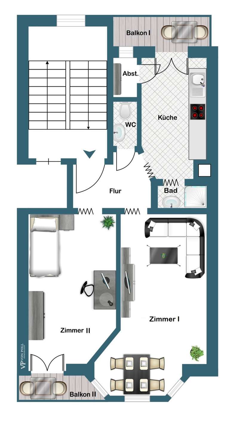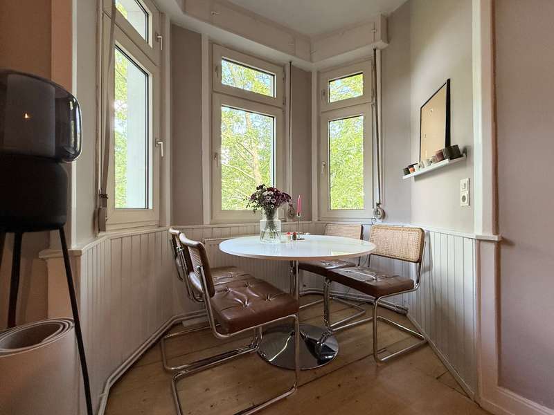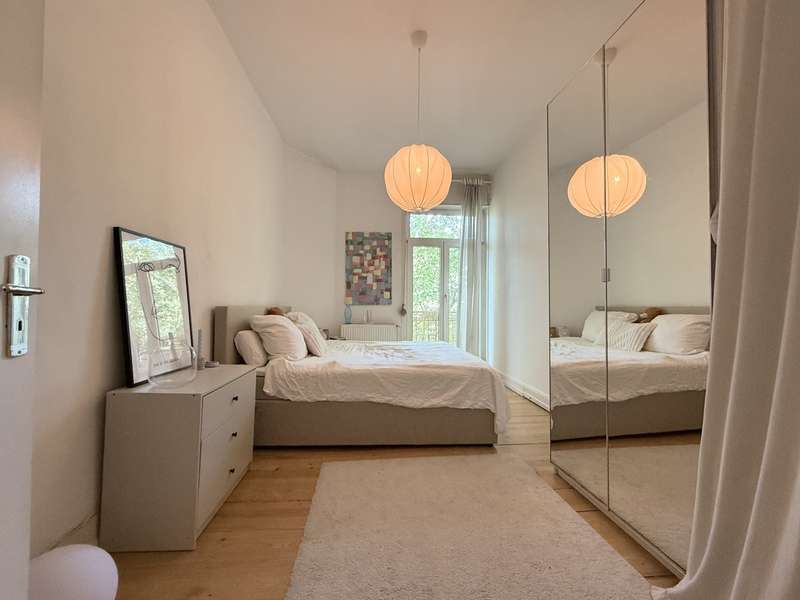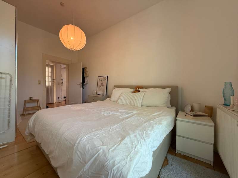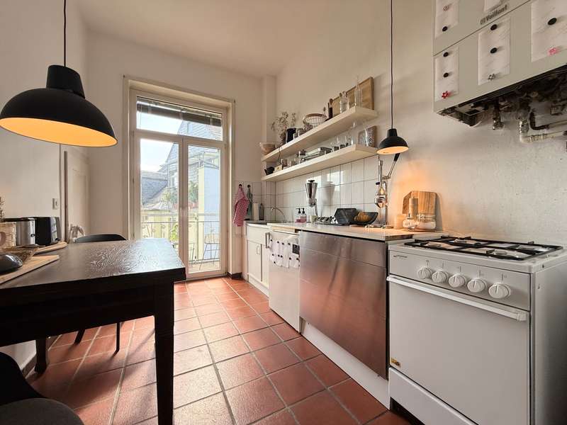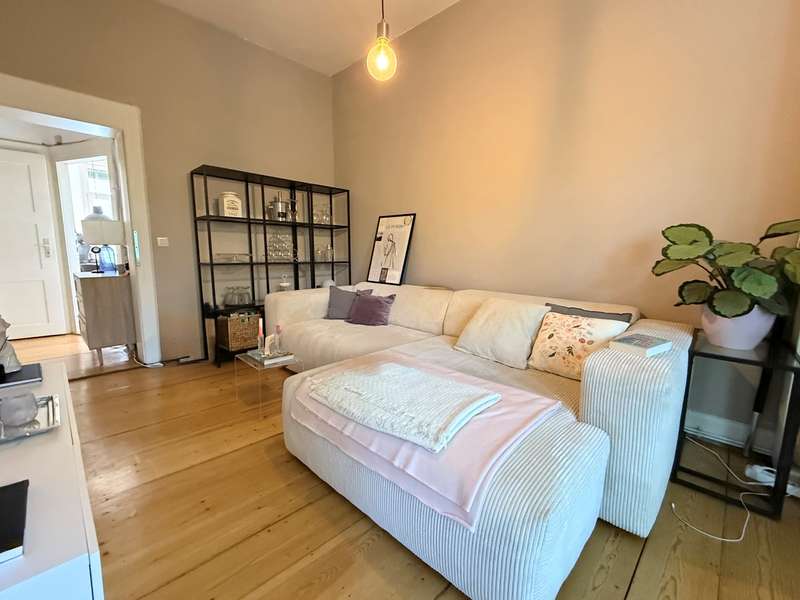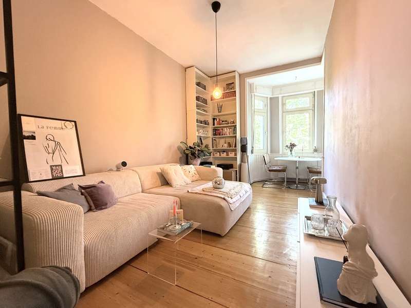 For sale is a well-kept apartment dating back to 1912, whose historic architecture harmonizes with modern amenities. With a living space of around 50 square meters, this apartment offers a well thought-out room layout. This property is ideal for singles or couples who value an urban lifestyle. Upon entering the apartment, you are greeted by a bright hallway that provides direct access to all rooms. The preserved floorboards give the apartment a classic flair. The living room forms the heart of the apartment. A bay window provides additional light and a pleasant living atmosphere and offers space for a cozy seating area. The bedroom is in a quiet location and offers enough space for a closet and a double bed. One of the two balconies can also be reached from here and invites you to spend sunny hours outdoors. The apartment has a fully equipped fitted kitchen with all standard electrical appliances and a practical storage room. A second balcony, accessible from the kitchen, extends the living area to the outside and offers a welcome alternative for enjoying the fresh air. The bathroom is equipped with a shower. The WC and bath are separate, allowing for flexible use. The central location allows easy access to public transport, shopping centers, cafés and cultural facilities, which further enhances everyday convenience. A practical cellar room rounds off the offer.