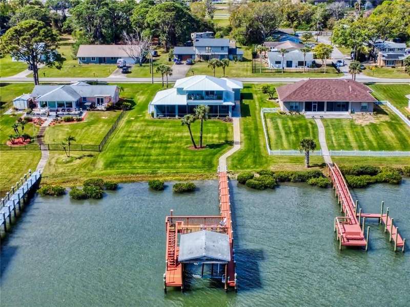 Welcome to your dream waterfront oasis! This contemporary 3-bedroom, 2-bathroom home has been meticulously renovated to offer unparalleled luxury and comfort along the Main Channel of the Intracoastal Waterway. From the moment you enter, you're greeted by direct water views that seamlessly blend indoor elegance with outdoor serenity. The home features a spacious living area with a cozy fireplace, perfect for intimate evenings, and flows effortlessly into the dining and kitchen spaces, all framed by expansive water vistas. The Culinary enthusiasts will appreciate the modern kitchen equipped with high-end appliances, Cambria counters, and stylish wood cabinetry, making both everyday cooking and entertaining friends and family a delight.The Primary Suite allows you to wake up to breathtaking sunrise views, complete with a private balcony overlooking the water-a tranquil spot for morning coffee or evening relaxation. There is a versatile office/personal space adjacent to the Primary Bedroom, ideal for remote work or a quiet retreat. The beautifully tiled Primary Bathroom features a large glass enclose shower and a classic stand alone tub.Outdoor Entertaining is easy in your screen-enclosed porch that provides an ideal setting for alfresco dining, while the sprawling lawn leads to your private dock and two-story boathouse, featuring a 6,500-pound lift-perfect for boating and fishing enthusiasts. Additional Amenities include an oversized two-car garage with an attached additional carport, professional evening ambient lighting and a safe room on the first floor.This home offers both seclusion and convenience nestled close to shopping centers, the vibrant Downtown Canal Street, and pristine beaches. Experience the dynamic wildlife and the ever-changing beauty of the river and skies, right from your backyard.Come enjoy this homes lifestyle, it's quality and meticulously maintained detail, it is move-in ready, it's poised to provide its next owner with years of joy and tranquility along the water's edge on the Main Channel of the Intracoastal Waterway!