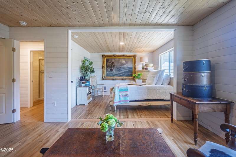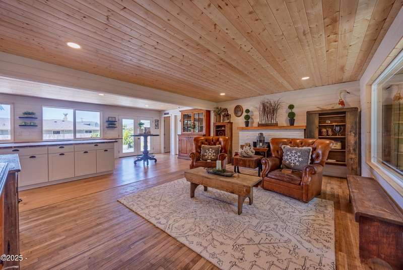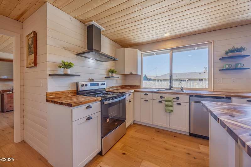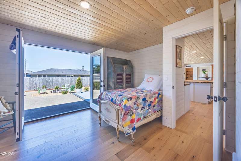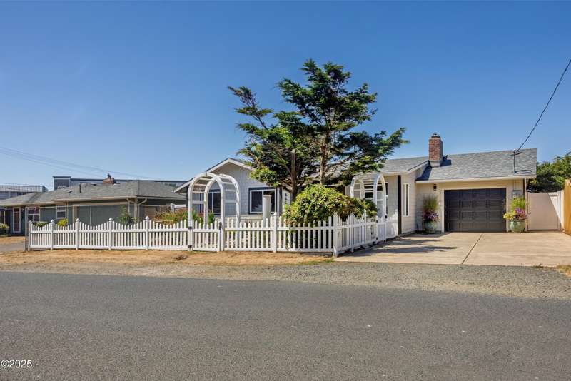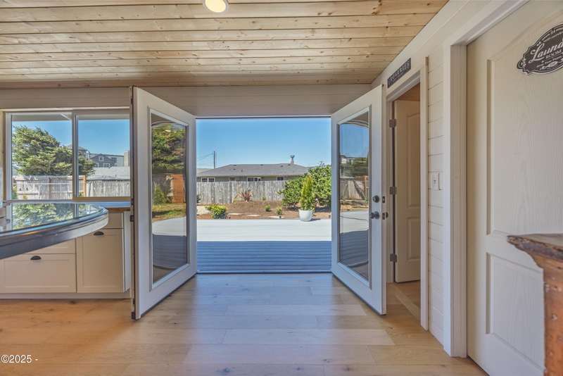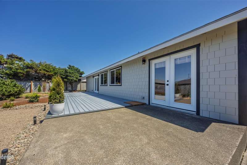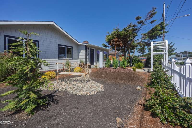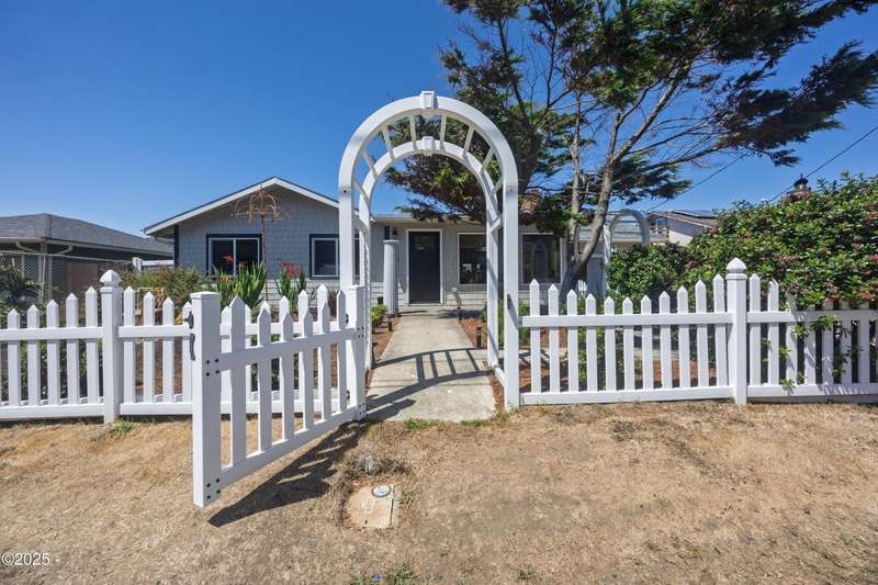 Luxurious Coastal Living - Fully Remodeled, Just One Block from the Beach. Step into a world where modern elegance meets timeless coastal charm. This fully remodeled 3-bedroom, 2-bath sanctuary is just one block from beach access and moments from parks, vibrant restaurants, local bars, art galleries, and boutique shopping. Every detail has been thoughtfully curated-from the new roof (2025) and new windows, all new stainless steel appliances (2024) with a massive French door refrigerator, to the freshly painted exterior and beautifully preserved original hardwood floors. Inside, the heart of the home shines with acacia wood butcher block countertops, a cozy fireplace, and a sunlit enclosed sunporch that invites quiet mornings or lazy afternoons. The spa-inspired bathrooms feature tiled rain showers, and dual showerheads for a truly indulgent experience. An on-demand hot water heater ensures comfort year-round. French doors off the living area and bedroom invite indoor-outdoor living, opening to a durable Trex deck and a concrete patio-ideal for entertaining or quiet evenings by the backyard firepit. Low-maintenance landscaping keeps the focus on enjoying the space, not maintaining it. One of the bedrooms has been cleverly expanded into a spacious primary en suite by opening up a wall between two rooms. Should a buyer prefer a traditional third bedroom layout, sellers are open to restoring the wall prior to closing. The home is exquisitely staged, with furnishings available for purchase, making your transition effortless. Whether you're seeking a full-time residence, a weekend escape, or a refined investment property, this coastal retreat offers a rare blend of luxury, warmth, and location.