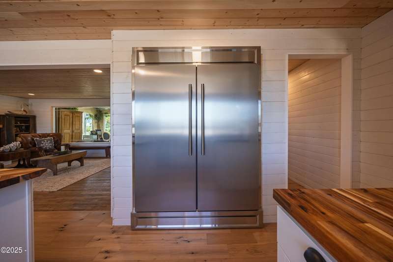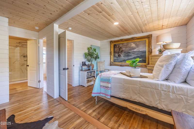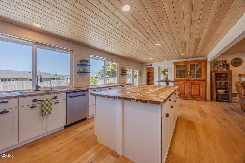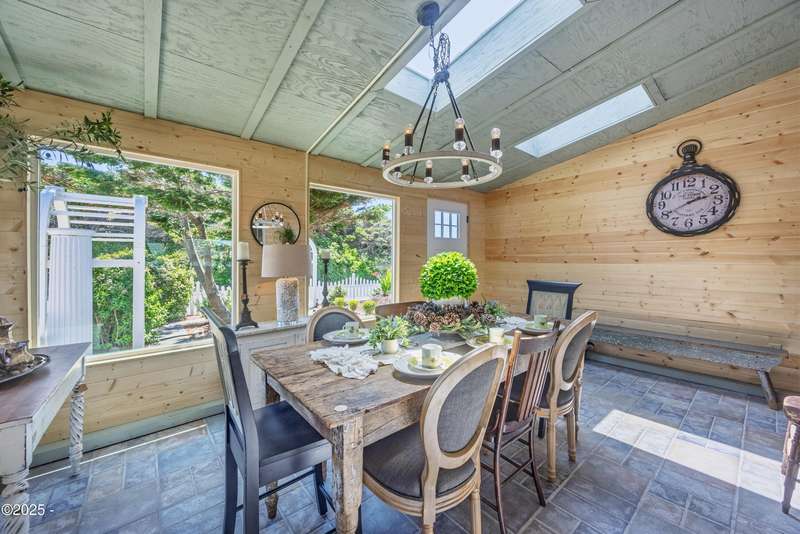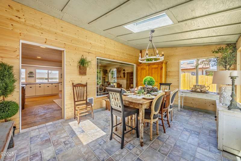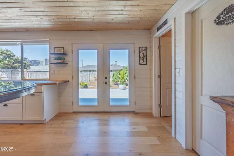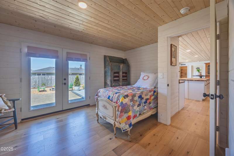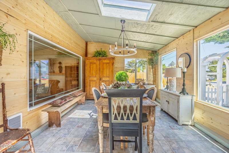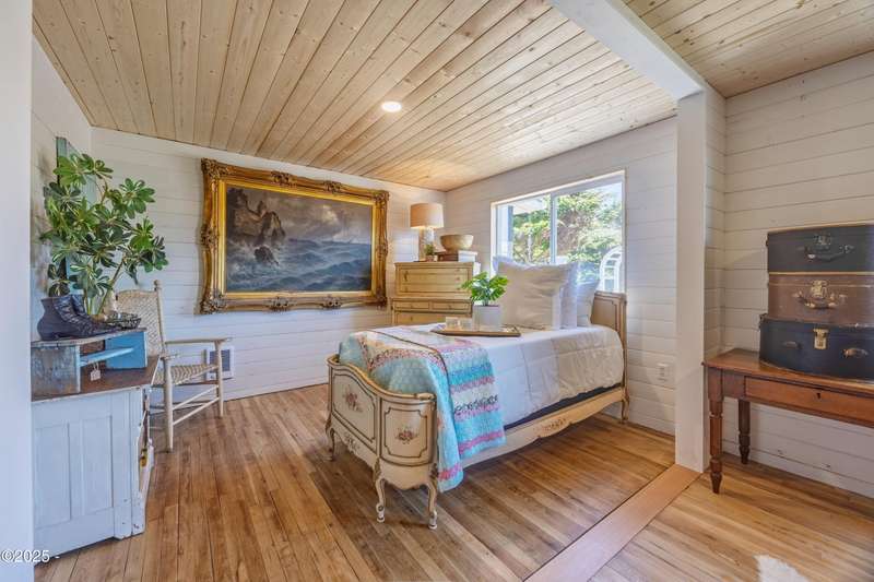 Luxurious Coastal Living - Fully Remodeled, Just One Block from the Beach. Step into a world where modern elegance meets timeless coastal charm. This fully remodeled 3-bedroom, 2-bath sanctuary is just one block from beach access and moments from parks, vibrant restaurants, local bars, art galleries, and boutique shopping. Every detail has been thoughtfully curated-from the new roof (2025) and new windows, all new stainless steel appliances (2024) with a massive French door refrigerator, to the freshly painted exterior and beautifully preserved original hardwood floors. Inside, the heart of the home shines with acacia wood butcher block countertops, a cozy fireplace, and a sunlit enclosed sunporch that invites quiet mornings or lazy afternoons. The spa-inspired bathrooms feature tiled rain showers, and dual showerheads for a truly indulgent experience. An on-demand hot water heater ensures comfort year-round. French doors off the living area and bedroom invite indoor-outdoor living, opening to a durable Trex deck and a concrete patio-ideal for entertaining or quiet evenings by the backyard firepit. Low-maintenance landscaping keeps the focus on enjoying the space, not maintaining it. One of the bedrooms has been cleverly expanded into a spacious primary en suite by opening up a wall between two rooms. Should a buyer prefer a traditional third bedroom layout, sellers are open to restoring the wall prior to closing. The home is exquisitely staged, with furnishings available for purchase, making your transition effortless. Whether you're seeking a full-time residence, a weekend escape, or a refined investment property, this coastal retreat offers a rare blend of luxury, warmth, and location.