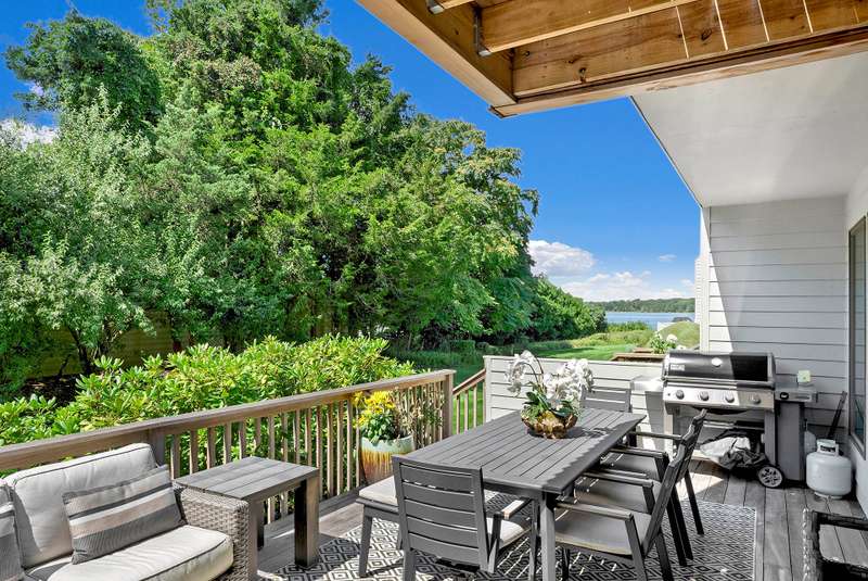 This amazingly totally custom-made renovated waterfront townhouse has it all plus an ideal location in the center of Sag Harbor Village close to all the amenities and enjoyments this wonderful waterfront village has to offer. The townhouse is elegantly furnished with Serena and Lily, featuring open spaces and high ceilings with floor to ceiling French glass doors opening to your own water view deck equipped with beautiful outdoor furniture, dining table and BBQ. The brand-new Chefs eat-in kitchen with island has everything you need as Thermador appliances, double oven/microwave, air fryer, ice maker, wine cooler to name some... There are 3 bedrooms located on the second floor; the primary bedroom has a deck with lounge chairs overlooking the outdoors and water views, this room come up with a control panel for lighting and shades on both sides of bed with overhead reading lights; the primary bathroom shower has 4 extra wall heads with a temperature control panel. The whole house is equipped with a high technology system including Creston remote controlled lighting, thermostat and all shades and Sonos built in, all can be controlled remotely. Additionally, you will find all frame-art TV's, electric toilets and showers as well as extra storage at the new finished attic. Enjoy the wonderful views of Sag Harbor Cove, ideal for kayaking or paddle boarding from the private cove front beach, appreciate the beautifully maintained landscaping this quiet community offers along with the all-weather tennis, pickleball court and pool area. Now available for September 2025, July thru Labor Day 2026. Other periods upon request. Listing ID: 915565