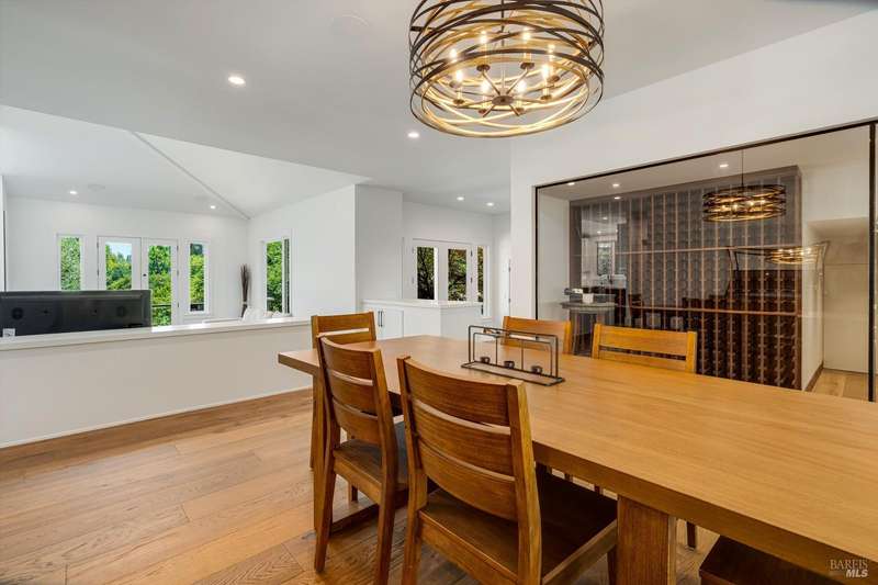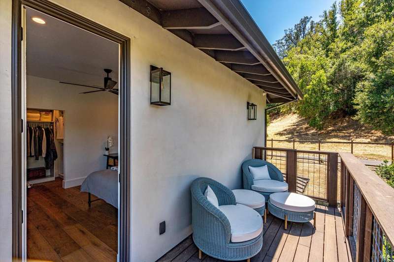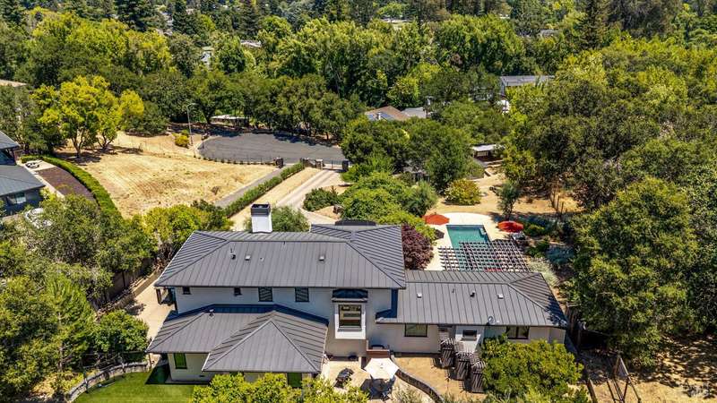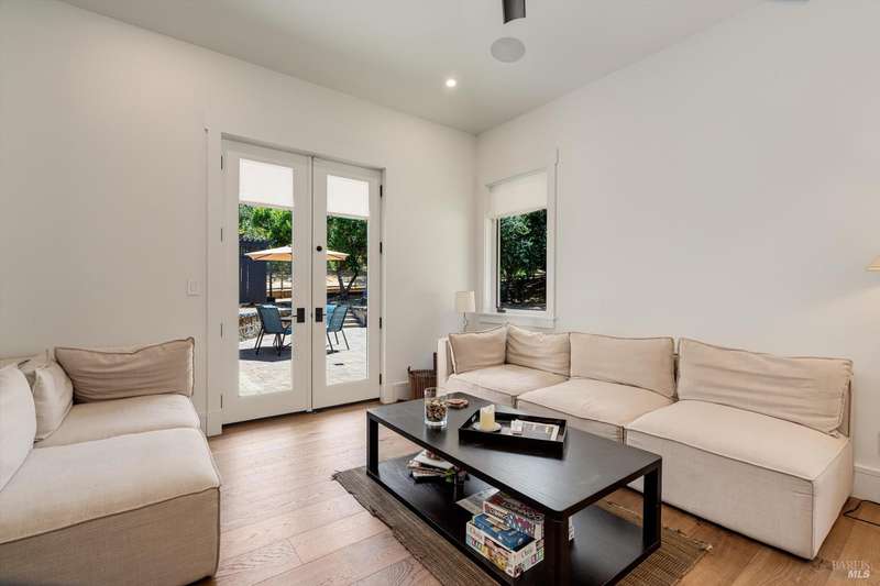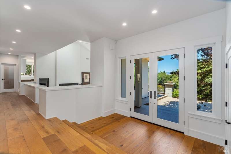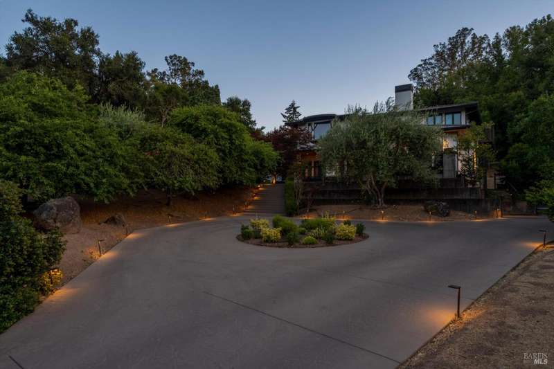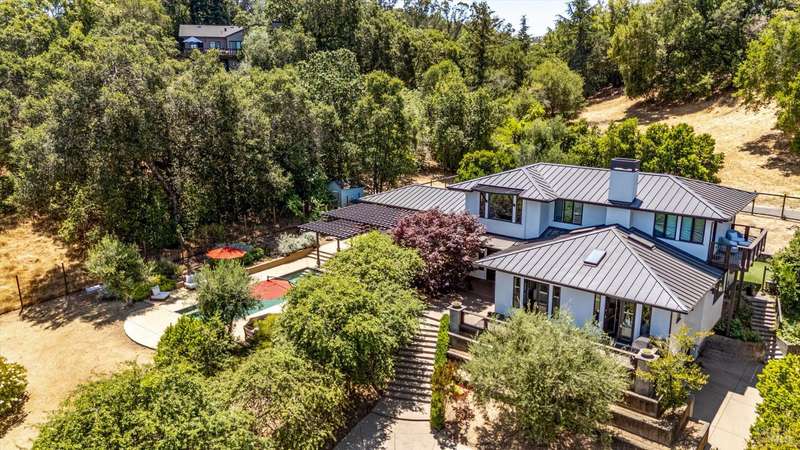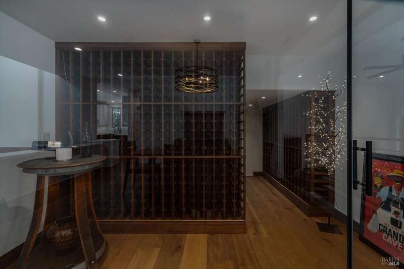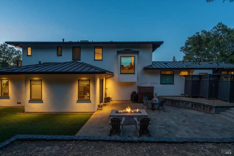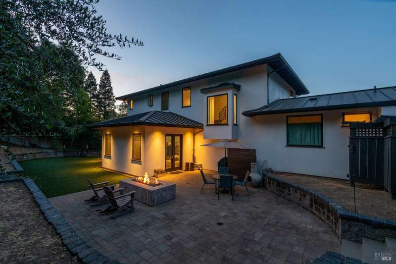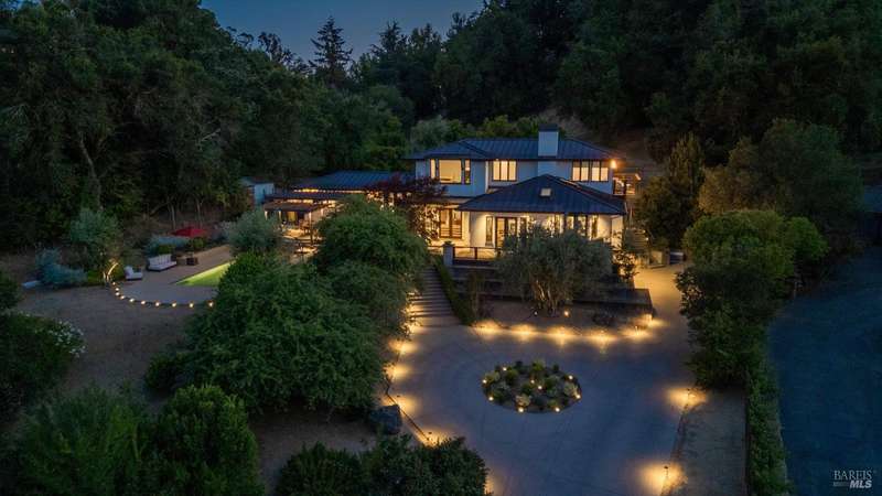 Luxurious Napa Valley estate, recently remodeled with top-tier materials. The main home features a spacious chef's kitchen opening to a balcony with breathtaking mountain views, and a primary suite overlooking the pool. Two additional en-suite bedrooms provide ample space for guests. A stunning guest house with upgraded appliances, elegant finishes, one bedroom, and built-in bunk beds offers a perfect retreat. Radiant flooring throughout ensures year-round comfort, while an advanced Sonos sound system and six outdoor speakers enhance indoor and poolside entertainment. The impressive wine cellar with seamless glass displays your collection in style. Located on a secure cul-de-sac with a gated private entrance, this meticulously designed home combines privacy with convenience, just minutes from downtown Napa. Enjoy the perfect blend of countryside charm and modern luxury in this exceptional Napa estate.
