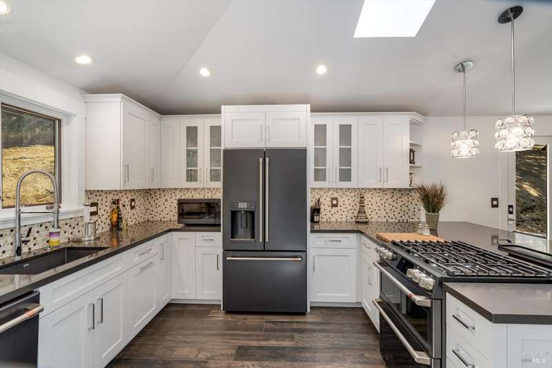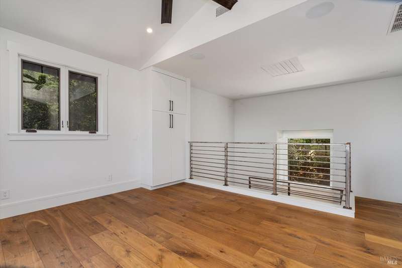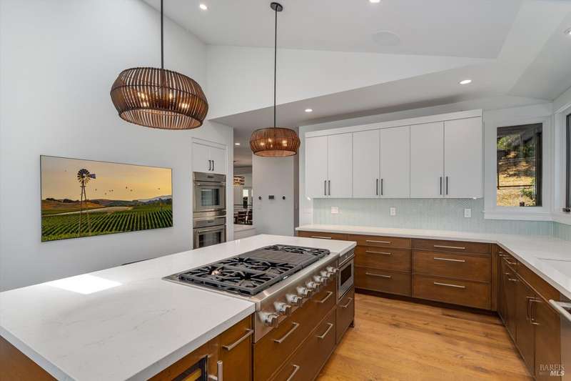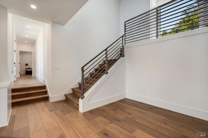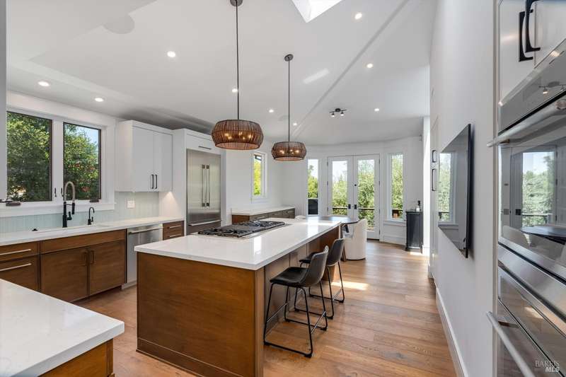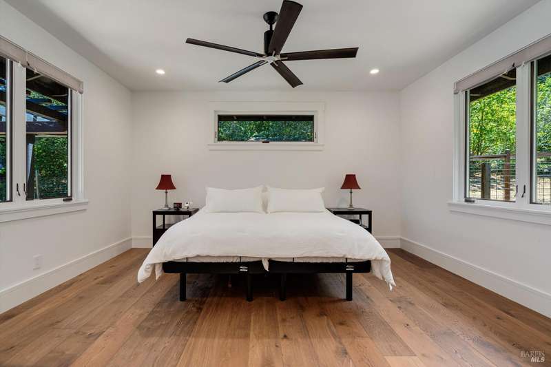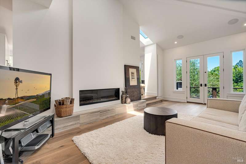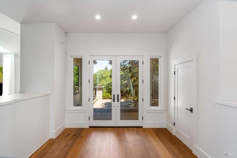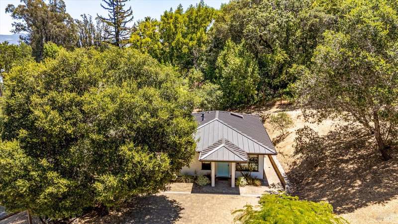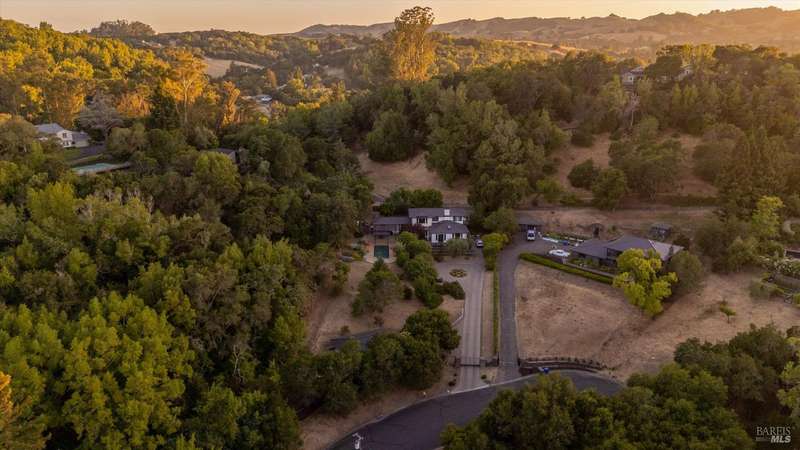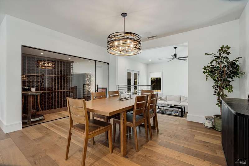 Luxurious Napa Valley estate, recently remodeled with top-tier materials. The main home features a spacious chef's kitchen opening to a balcony with breathtaking mountain views, and a primary suite overlooking the pool. Two additional en-suite bedrooms provide ample space for guests. A stunning guest house with upgraded appliances, elegant finishes, one bedroom, and built-in bunk beds offers a perfect retreat. Radiant flooring throughout ensures year-round comfort, while an advanced Sonos sound system and six outdoor speakers enhance indoor and poolside entertainment. The impressive wine cellar with seamless glass displays your collection in style. Located on a secure cul-de-sac with a gated private entrance, this meticulously designed home combines privacy with convenience, just minutes from downtown Napa. Enjoy the perfect blend of countryside charm and modern luxury in this exceptional Napa estate.