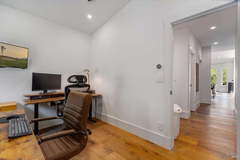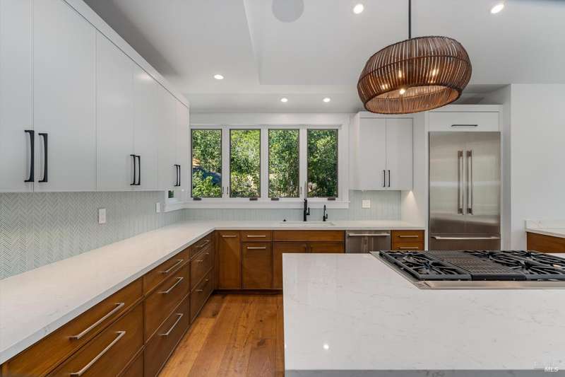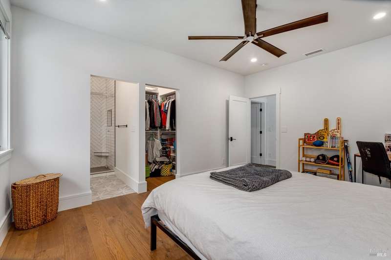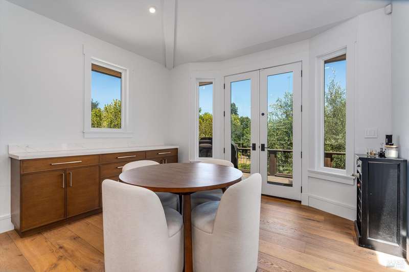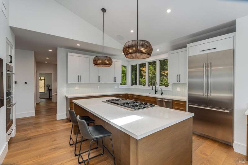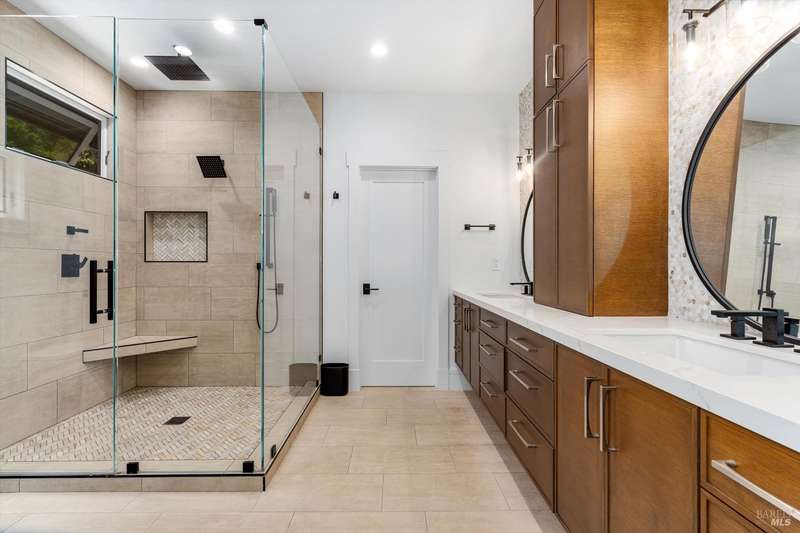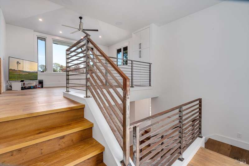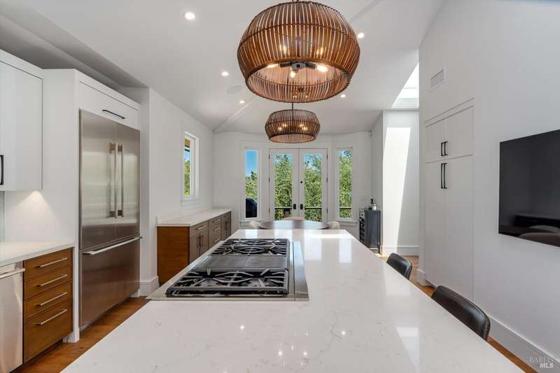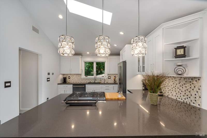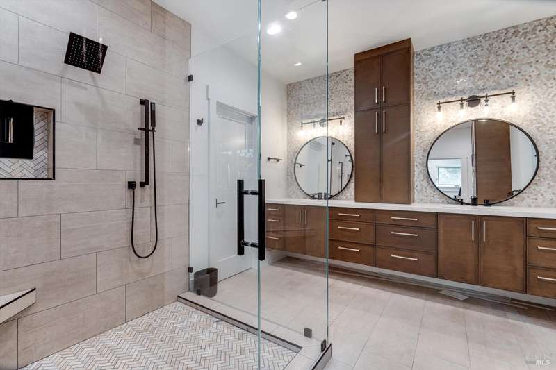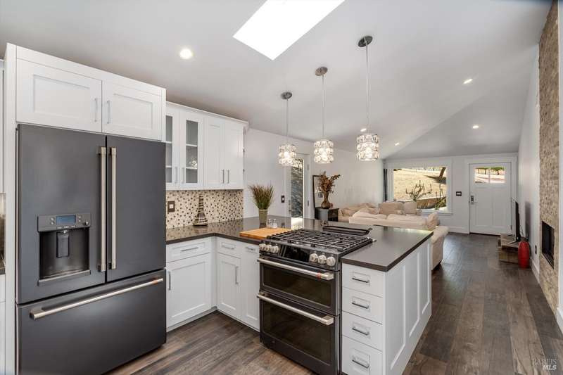 Luxurious Napa Valley estate, recently remodeled with top-tier materials. The main home features a spacious chef's kitchen opening to a balcony with breathtaking mountain views, and a primary suite overlooking the pool. Two additional en-suite bedrooms provide ample space for guests. A stunning guest house with upgraded appliances, elegant finishes, one bedroom, and built-in bunk beds offers a perfect retreat. Radiant flooring throughout ensures year-round comfort, while an advanced Sonos sound system and six outdoor speakers enhance indoor and poolside entertainment. The impressive wine cellar with seamless glass displays your collection in style. Located on a secure cul-de-sac with a gated private entrance, this meticulously designed home combines privacy with convenience, just minutes from downtown Napa. Enjoy the perfect blend of countryside charm and modern luxury in this exceptional Napa estate.